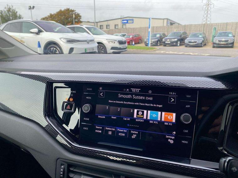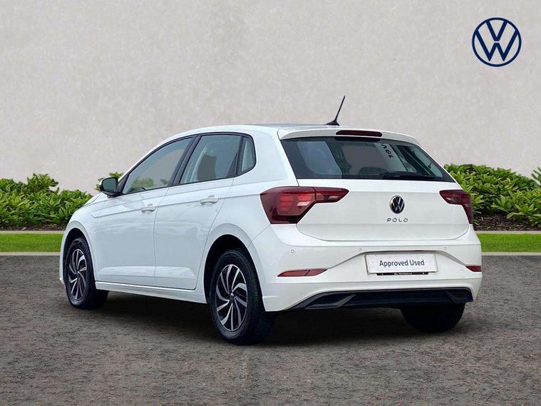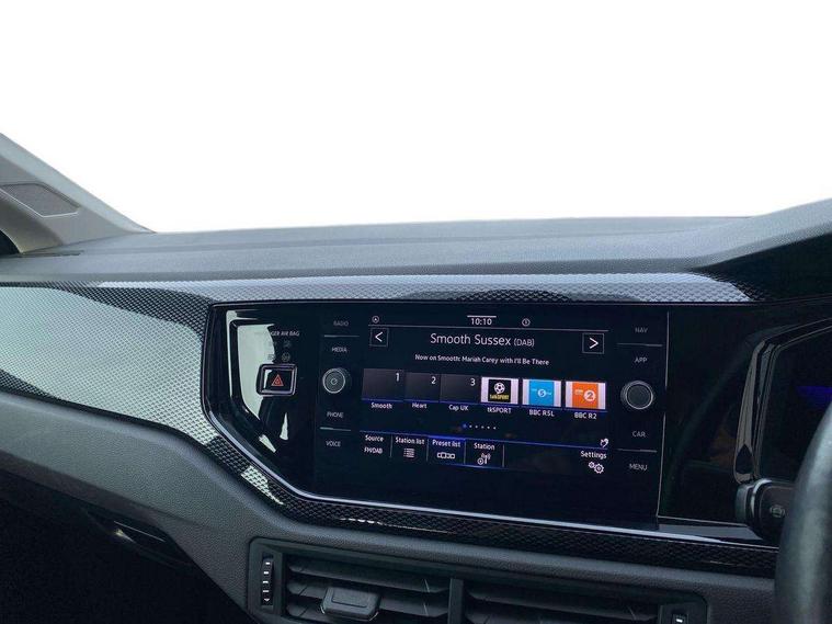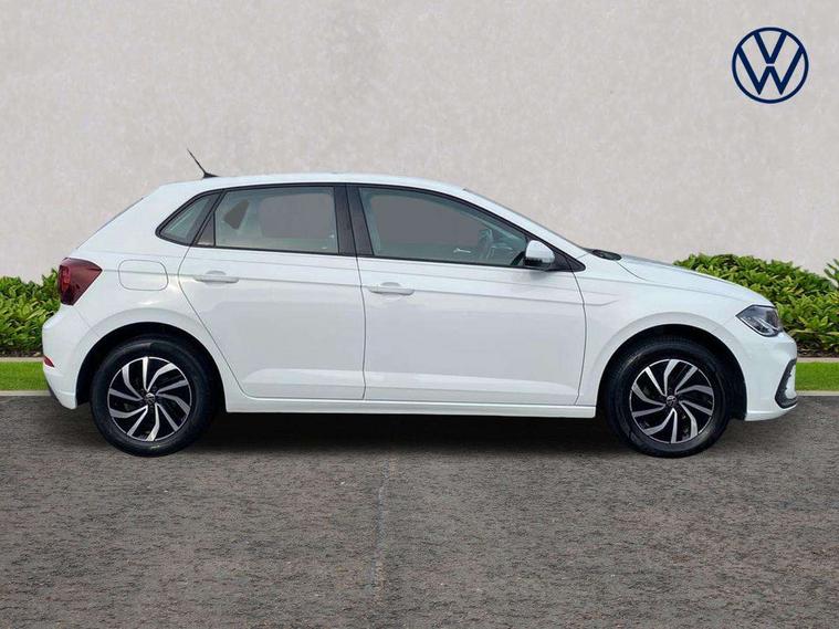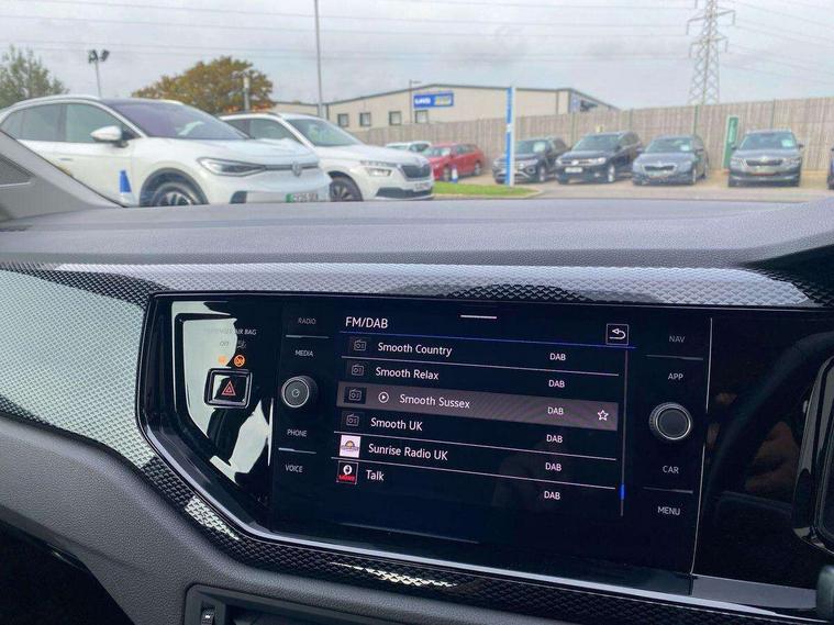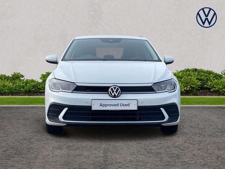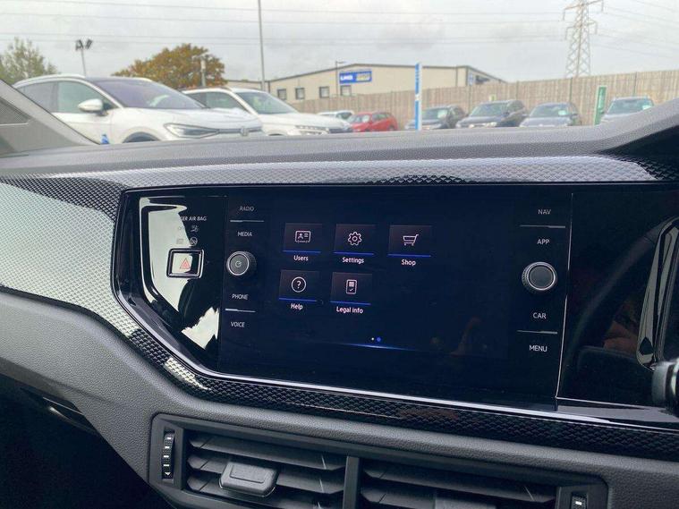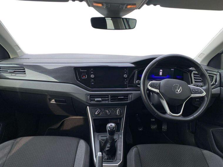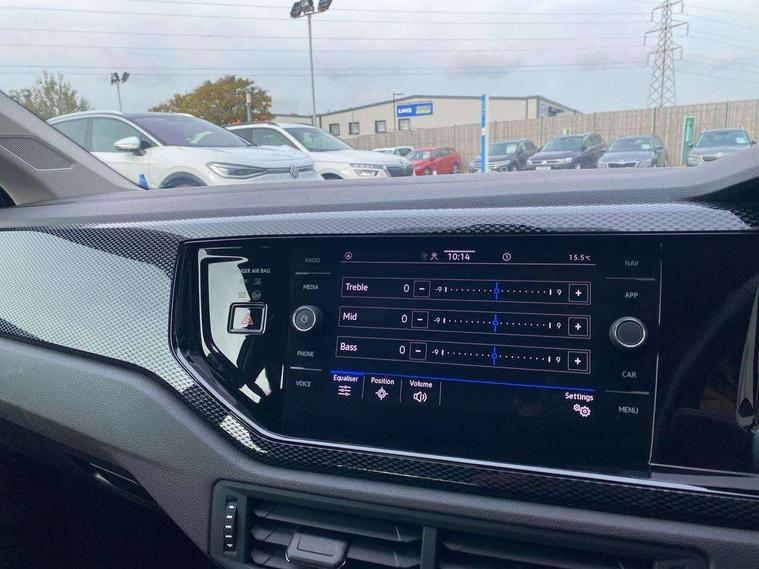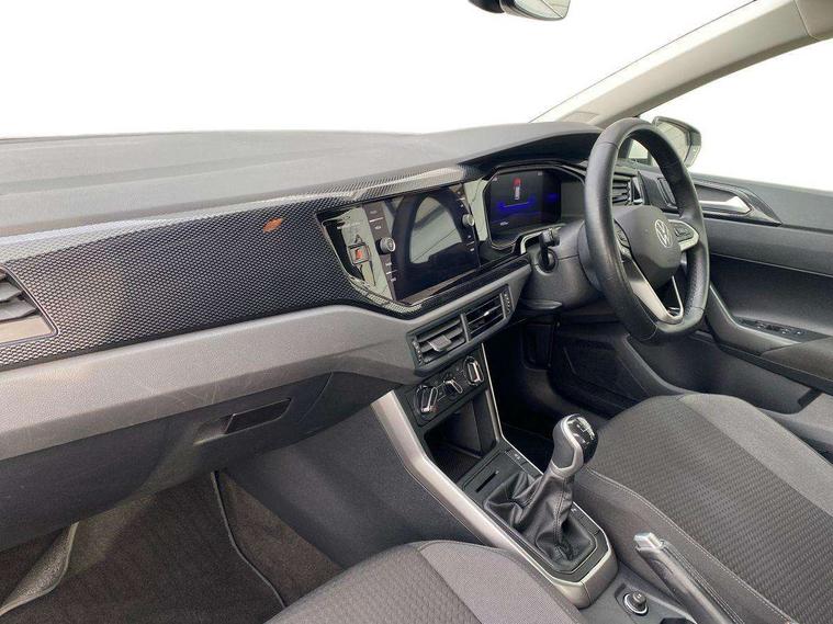 Adaptive cruise control without follow-to-stop and speed limiter, Bluetooth mobile phone interface, Driver alert system, Emergency call service, Front assist system, Power assisted speed sensitive steering, Preparation for We connect and We connect plus, Speedo and rev counter, electronic odometer, trip, service interval display and fuel gauge, Standard rear axle, Travel Assist - Lane keeping system and traffic jam assist, Travel assist including emergency assist, Trip computer, Warning signal and warning light for front and rear seatbelts not fastened, Washer fluid level indicator, Wireless app connect, Front wheel drive, Rear shock absorpion, Start-stop system with battery regeneration (recuperation - energy recovery during braking), DAB Digital radio, Diversity antenna for FM reception, Automatic dimming interior rear view mirror, Body colour bumpers, Body colour door handles, Body colour door mirrors, Electric front windows, Heat insulating darkened glass in side and rear windows, Heat insulating glass windscreen, Power folding adjustable/heated exterior mirrors and front passenger exterior mirror lowering function, Rain sensor, Rear electric windows, Rear fog light, Rear windscreen washer and wiper with interval delay, Third brake light, 12V power socket in centre console, 2 front and 2 rear reading lights, 2 USB-C ports in the front, 2 USB-C charging sockets on the center console in the rear, 3 rear head restraints, 60/40 split folding rear seat and rear seat bench not split, Ceramique headliner, Chrome plated radiator grille inserts, air vent surrounds and light switch surrounds, Door and side trim panel, Driver and front passenger seat height adjustment, Driver/passenger sunvisors with illuminated vanity mirrors, Front centre armrest, Front seat backrest storage pockets, Front standard seats, Handbrake lever handle in leather, Hartley/Thomas cloth upholstery, Isofix child seat preparation easy-fit (for two outer rear seats, and front passenger seat) compatible with I-size, Leather trimmed gear knob, Luggage compartment cover, Luggage compartment floor, Luggage compartment lighting, Multifunction steering wheel, Standard pedal cluster, Light and vision pack - Polo, 3 point height adj front seatbelts + pretensioners, 3x3 point rear seatbelts, ABS, Driver and front passenger airbag with front passenger airbag deactivation, Drivers and front passengers safety optimised head restraints, ESC (Electronic stability control) + EDL (Electronic Differntial lock) and ASR (Traction control), Extended and predictive pedestrian/ cyclist protection, Front curtain and side airbags with center airbag, Front disc brakes, Hill hold control, Rear drum brakes, Single tone horn, Tyre pressure loss indicator, Alarm with interior protection, Anti-theft alarm system with interior monitoring, backup horn, and towing protection, Anti-theft wheel bolts, Electronic engine immobiliser, Remote central locking with 2 remote folding keys, Lava stone black gloss/matt decorative inserts in dash and front door panels, Low rolling resistance tyres,