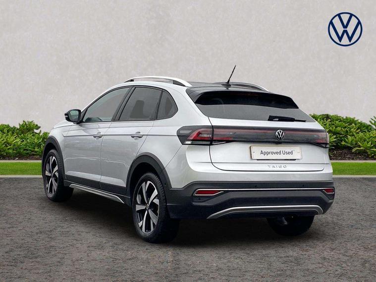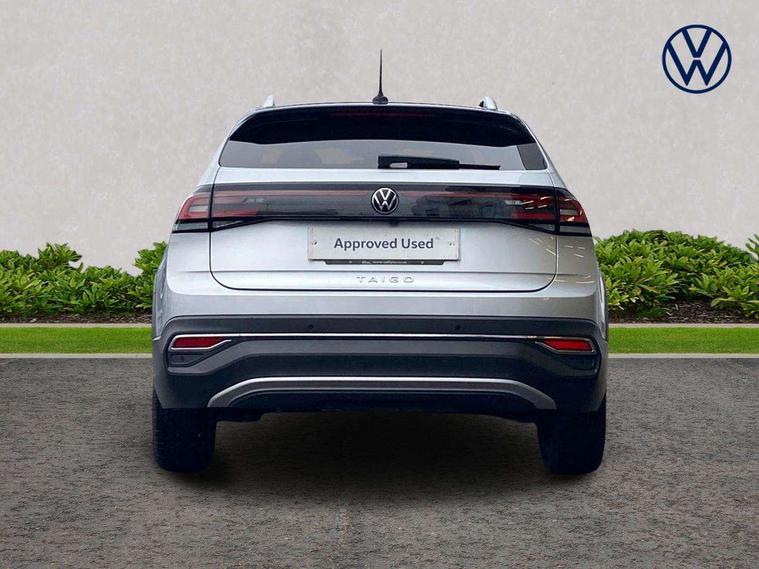 Adaptive cruise control, App-Connect including App-Connect Wireless, Digital cockpit pro - 10.25" high resolution TFT dash display screen with customizable menus and information, Driver alert system, e-Call (emergency call), Power Steering, Travel assist including emergency assist, Washer fluid level indicator, Wireless Charging including Bluetooth, Rear shock absorption, Start-stop system with battery regeneration (recuperation - energy recovery during braking), Digital radio reception (DAB+), Diversity antenna for FM reception, WeConnect plus, Advanced high beam control dynamic light assist for LED matrix headlamps, Ambient lighting with logo projection, Aspherical driver's exterior mirror, Body coloured bumpers and radiator grille with chrome trim and front fog lamps with chrome bezel, Body coloured exterior mirror housings and door handles, Dual chrome twin tailpipes on left and right, Dynamic headlight range control, Electric windows, Exterior ambient lighting in illuminated front grille, External USB type C socket and charging sockets, Front fog lamps with cornering function, LED matrix headlamps, LED rear combination lamp, LED third brake light, Left convex exterior mirror, Power folding adjustable/heated exterior mirrors and front passenger exterior mirror lowering function, Rear fog light on one side, reversing light on both sides, Rear side wing doors, Rear wash/wipe with intermittent wipe setting, 12V socket in centre console, 2 front reading lights, 3 rear head restraints, 3 seat bench in 2nd row, Air care climatronic air conditoning system with active combination filter and 2-zone temperature control, Black carpets, Child seat anchor for child seat system i-Size, 2x top tether and child seat anchor in front on front passenger side, Chrome bezel for instrument cluster, vents, door handles + gear shift, Driver and front passenger seat height adjustment, Front + rear carpet mats, Front centre armrest, Front footwell illumination, Front sports comfort seats, Height and reach adjustable steering wheel, Interior ambient lighting and surround lighting, Leather trimmed gear knob, Leather wrapped multifunction steering wheel, Luggage compartment floor, Luggage compartment light, Lumbar support for driver's and front passengers seat, Single front passenger seat, Split folding backrest with centre armrest and unsplit rear seat bench, Storage compartment under front seats, Sun visors with illuminated vanity mirrors, Chrome Package - Taigo, Drivers assistance pack - Taigo, Light and sight pack - Taigo, 2 x 3-point seatbelts/outer rear seats with ECE label, 3-point seat belts in front with pretensioner and height adjustment, 3-point seatbelt for centre rear seat, Driver and front passenger airbags with front passenger airbag de-activation, front side and curtain airbags, Driver and front passenger safety-optimised head restraints, Electronic stability control, Extended and predictive pedestrian/ cyclist protection, Front and rear disc brakes, Front curtain and side airbags with center airbag, Hill start assist, Manual rear child locks, Single tone horn, Tyre pressure loss indicator, Anti-theft alarm system with interior monitoring, backup horn, and towing protection, Anti-theft wheel bolts, Low rolling resistance tyres,