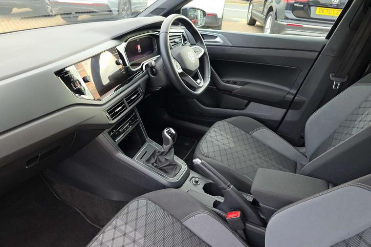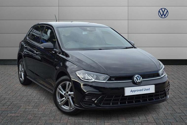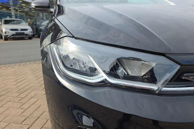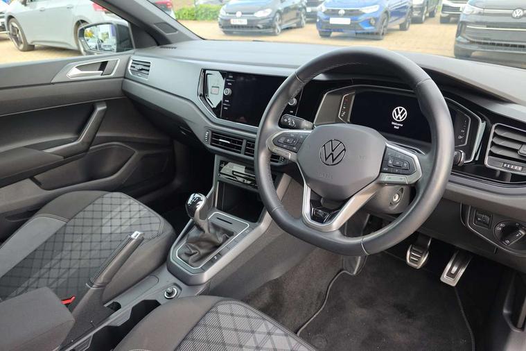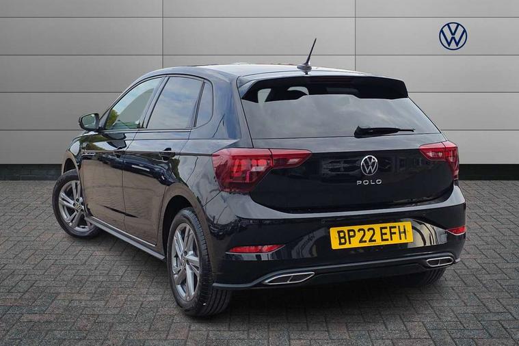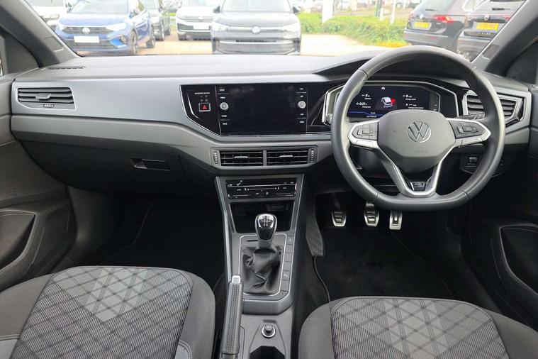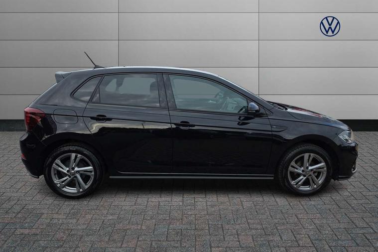 Adaptive cruise control without follow-to-stop and speed limiter, Bluetooth mobile phone interface, Digital Cockpit Pro with 10.25" Display, Driver alert system, Dynamic road sign display, Emergency call service, Power assisted speed sensitive steering, Preparation for We connect and We connect plus, Speedo and rev counter, electronic odometer, trip, service interval display and fuel gauge, Standard rear axle, Travel Assist - Lane keeping system and traffic jam assist, Travel assist including emergency assist, Trip computer, Warning signal and warning light for front and rear seatbelts not fastened, Washer fluid level indicator, Wireless app connect, Front wheel drive, Rear shock absorpion, Start-stop system with battery regeneration (recuperation - energy recovery during braking), DAB Digital radio, Diversity antenna for FM reception, Front and rear 6 speakers, Body colour bumpers, Body colour door handles, Body colour door mirrors, Electric front windows, Front scuff plates with R-Line logo, Heat insulating darkened glass in side and rear windows, Heat insulating glass windscreen, Power folding adjustable/heated exterior mirrors and front passenger exterior mirror lowering function, Rear electric windows, Rear fog light, Rear side wing doors, Rear tinted glass from B-pillar backwards approx 65% tinted, Rear windscreen washer and wiper with interval delay, Third brake light, 12V power socket in centre console, 2 USB-C ports in the front, 2 USB-C charging sockets on the center console in the rear, 3 rear head restraints, 60/40 split folding rear seat and rear seat bench not split, Air care climatronic air conditoning system with active combination filter and 2-zone temperature control, Black roof lining, Ceramique headliner, Chrome plated radiator grille inserts, air vent surrounds and light switch surrounds, Door and side trim panel, Driver and front passenger seat height adjustment, Driver/passenger sunvisors with illuminated vanity mirrors, Front + rear carpet mats, Front centre armrest, Front footwell illumination, Front seat backrest storage pockets, Front sports comfort seats, Handbrake lever handle in leather, Isofix child seat preparation easy-fit (for two outer rear seats, and front passenger seat) compatible with I-size, Karoso artvelours cloth upholstery, Leather trimmed gear knob, LED interior light with switch off delay and dimmer, 2 reading lights front and rear, Luggage compartment cover, Luggage compartment floor, Luggage compartment lighting, Lumbar adjustment for front seats, Multifunction steering wheel, Single front passenger seat, Stainless steel pedals, Standard pedal cluster, Light and sight pack - Polo R-Line/Black Edition, 3 point height adj front seatbelts + pretensioners, 3x3 point rear seatbelts, ABS, Driver and front passenger airbag with front passenger airbag deactivation, Drivers and front passengers safety optimised head restraints, ESC (Electronic stability control) + EDL (Electronic Differntial lock) and ASR (Traction control), Extended and predictive pedestrian/ cyclist protection, Front curtain and side airbags with center airbag, Hill hold control, Manual child lock in rear doors, Single tone horn, Tyre pressure loss indicator, Alarm with interior protection, Anti-theft alarm system with interior monitoring, backup horn, and towing protection, Anti-theft wheel bolts, Electronic engine immobiliser, Chrome applications on rotary light, mirror adjustment, window regulator switches, outlet with frame in black, Dark grey anodised matt decorative inserts in dash and front door panels, Low rolling resistance tyres,
