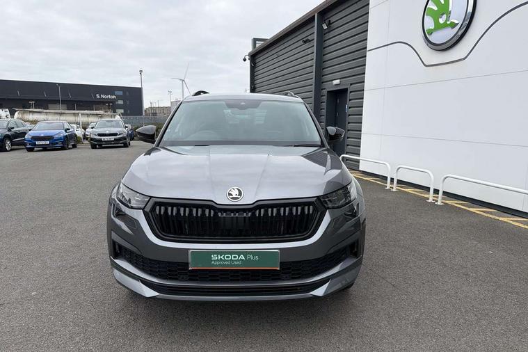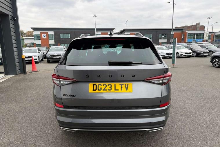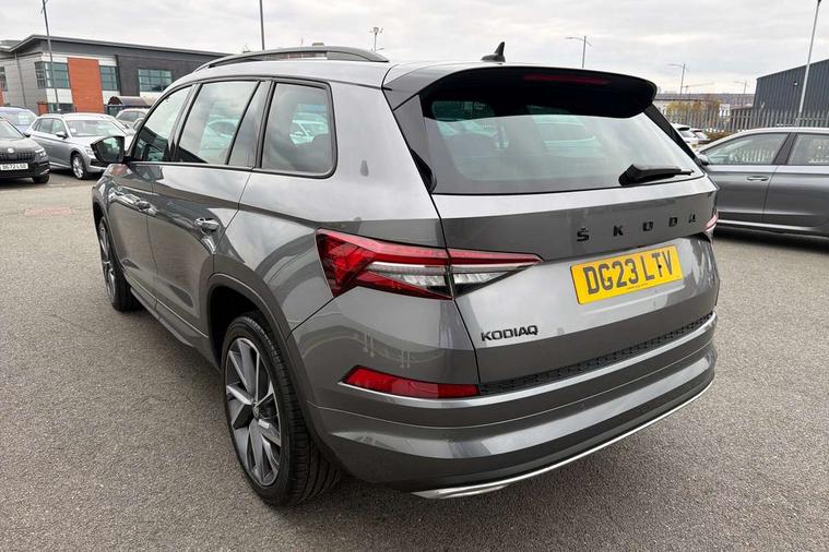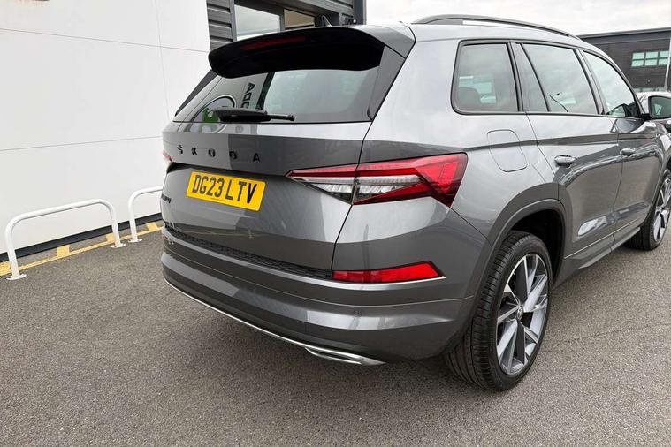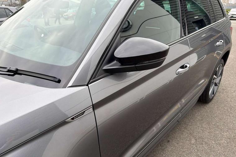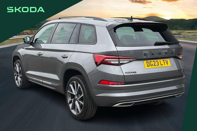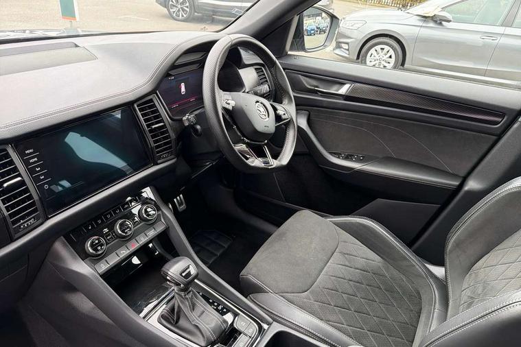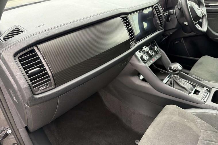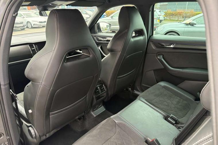 Bluetooth system, Columbus satellite navigation with 9.2" touchscreen, integrated Wi-Fi, web radio, Digital voice enhancement, e call+, ECO Stop/start function, Exterior temperature indicator, Progressive steering, Rear view camera, Smartlink wireless for apple carplay and wired for android auto, Speed limiter, Tailgate unlocking from outside, USB C Port x 2 in front centre console, Virtual Cockpit - 10.25" digital display with additional sports design, Wireless charging, 8 Speakers, DAB Digital radio, Aero front windscreen wipers with intermittent function, Aero rear window wiper, Auto dimming rear view mirror, Black roof rails, Black sports styling including front grille and window surrounds, Black wheel arch surrounds, Body colour bumpers, Body colour door handles, Electric adjustable/heated/folding door mirrors, driver side auto dimming with boarding sports and memory function, Electric front and rear windows, Extended rear spoiler with finlets in gloss black, Front fog lights, Full LED matrix headlights with AFS (adaptive front light system), cornering function and AWL (all weather lighting system), Gloss black door mirrors, Headlight washers, Heated rear window, Invisible tailpipe, LED daytime running lights, LED rear fog light, LED third brake light in rear spoiler, Light assistant (coming/leaving home/tunnel light), Off-road style lower front bumper element, Privacy glass, Rain and light sensors, Rear diffuser, Rear LED lights (high functionality) with welcome effect and dynamic indicators, Rear side wing doors, Safety reflectors on front and rear doors, Sportline badge on front fender, Sports front and rear bumpers including lower rear chrome strip, Tailgate lettering in Black, Window control switches with black trim, 12V socket in boot, 2 rails with 2 hooks, 2 seat bench in 3rd row, 3 seat bench in 2nd row, 4 foldable roof handles with rear coat hooks, 60:40 foldable rear seat with sliding adjustment and backrest angle adjustment, Aluminium pedals, Black roof headlining, Bottle holders in door panel in the 1.5 litre front and 1 litre rear, Cargo storage compartments, Chrome headlight control button, Chrome interior door handles, Coat hooks on B pillar, Covered storage compartment on driver side, Decorative door sill covers, Front and rear door armrest with black adductor trim, Front centre armrest with storage compartment, cup holder and 12V socket, Front courtesy lights, Gear shift lever with chrome frame and black gloss insert, Grey stitching in front and rear armrests and door armrests + door inserts, Height adjustable front headrests, Illuminated and cooled glovebox, Illuminated luggage compartment, Isofix child seat fittings in outer rear seats with top tether, Manually adjustable steering column, Microsuede door panels, Net programme in boot (1x horizontal Net, 2x vertical Nets), Overhead glasses storage compartment, Pollen filter, Rear centre armrest with cupholders, Single front passenger seat, Sliding trunk cover, Small Bags on the inner sides of the front backrests, Sports seats, Sunvisors with illuminated vanity mirrors, Three rear height adjustable headrests, Ticket holder on A Pillar, Umbrella in door panel, Variable boot floor, LED Interior light pack - Kodiaq, Auto door release and activation of warning lights in the event of an accident, Child locks on rear doors, Driver and front passenger airbag with knee airbag and front passenger airbag deactivation, Electronic parking brake with hill start assist, Emergency rear braking signal, ESC (incl. ABS+MSR+ASR+EDS+HBA+DSR+RBS+MKB), Front assist with autonomous emergency braking, Front side airbags with curtain airbags, Fuel cut off safety device, Height adjustable front 3 point seatbelts + pretensioners, Hill hold control, Rear disc brakes, Safety vest holder in door, Seat belt reminder for all seats, Three point rear seat belts, Two tone horn, Tyre pressure monitor, Alarm with interior monitoring and tilt sensor with safe function, Anti-theft wheel bolts, Immobiliser, Keyless entry and start system (KESSY), Remote central locking with 2 keys, Black air vent surround, Carbon finish dashboard and door inserts, Grey stitching in dashboard, 20" Vega Anthracite alloy wheels, Temporary spare wheel (space saver),