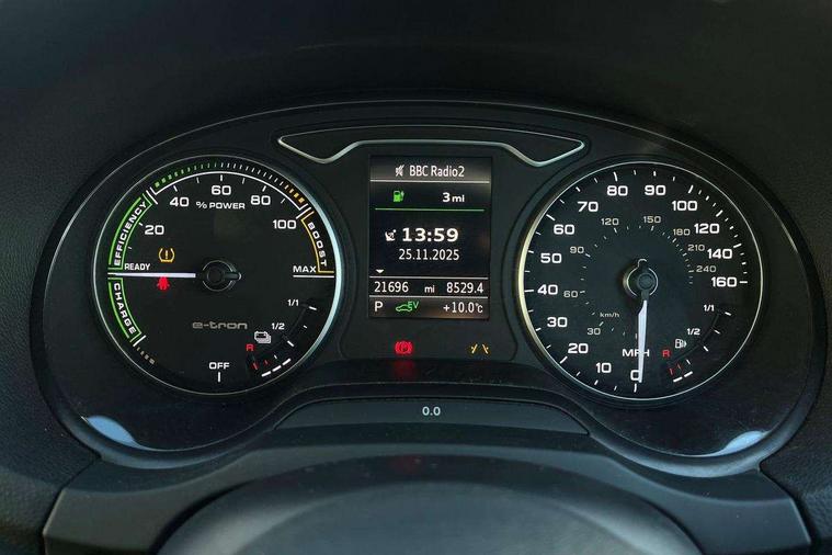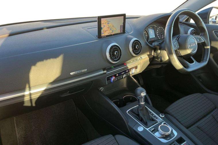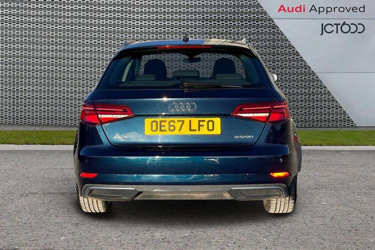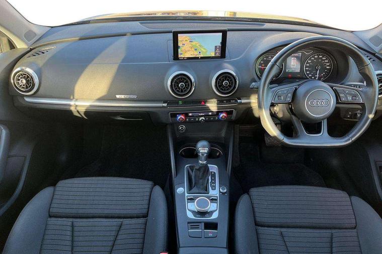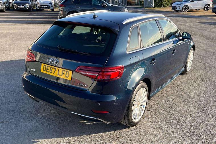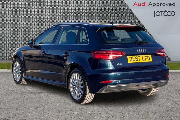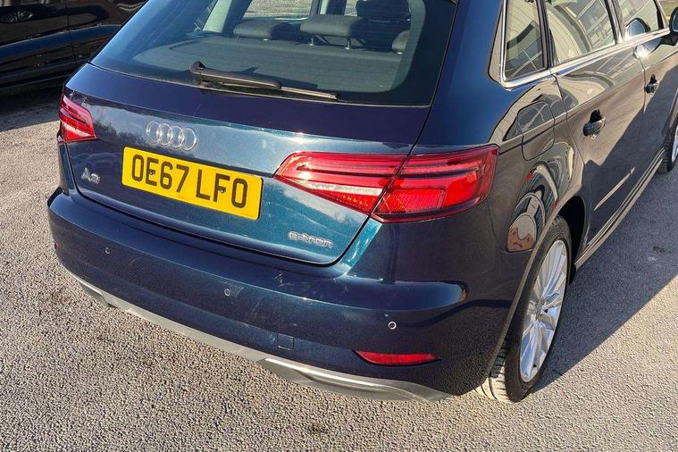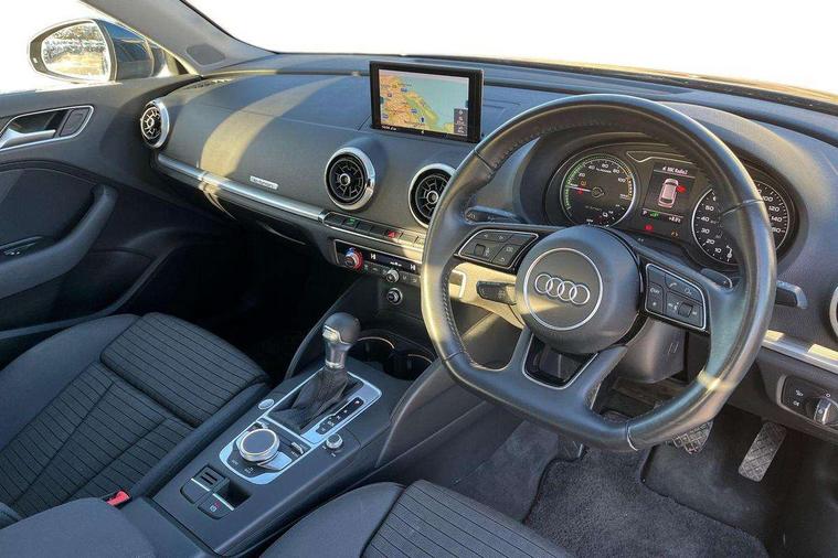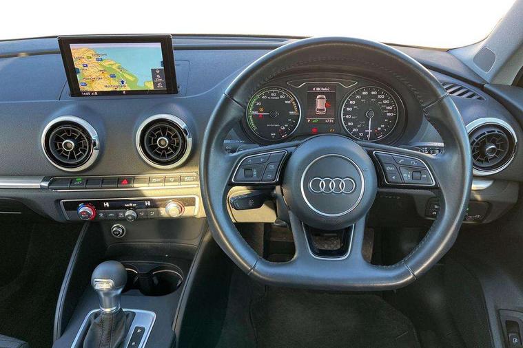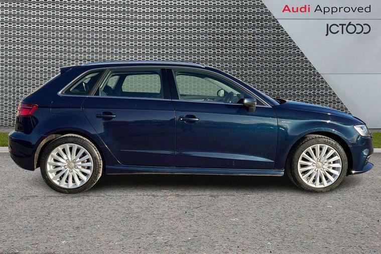 Audi active lane assist, Audi connect, Audi drive select, Audi smartphone interface, Colour driver's information system display, Electro-mechanical PAS, MMI navigation plus with MMI touch, Mobile telephone preparation - bluetooth interface, Service interval indicator, Speed limit display, Voice control system, Dynamic suspension, 2 USB ports, Audi music interface, Auxiliary input socket, DAB Digital radio, Aluminium door sill trims with e-tron logo, Aluminium window trim, Auto dimming rear view mirror with light and rain sensors, Body colour bumpers, Body colour door mirrors with integral indicators, Body colour roof spoiler, Electric front windows, Electric operated/heated door mirrors, Electric rear windows, Heated windscreen washer jets, High beam assistant, LED daytime running lights, Matt black radiator grille, Rear wiper, Single exhaust tailpipe, 12V Accessory socket in centre console, 3 adjustable rear headrests, 4 lashing points to secure luggage, Adjustable front armrest, Charging cable, Dual zone electronic climate control, Front and rear interior lights with delay, Front passenger seat isofix location point, Front sports seats, Front/rear floor mats, Height/depth adjustable steering column, Illuminated glovebox, ISOFIX child seat preparation+airbag deactivation, Jack and tool kit, Rock grey headlining, Steering wheel gearshift paddles, Storage compartment in centre console, Storage compartment under front seats, Storage compartments in doors, Non smoking pack - A3, 3 point seatbelts on all seats, ABS/EBD, Active bonnet, Active front headrests, ASR, Curtain airbags, Driver and passenger side airbags, Driver/Front Passenger airbags, Drivers knee airbag, EDL, Electromechanical parking brake, ESC - Electronic Stability Control + traction control, Front passenger airbag deactivation, Manual rear child locks, Multi-Collision braking, Pre sense front, Seatbelt warning, Tyre pressure warning, Warning triangle and first aid kit, Advanced key, Anti theft alarm, Anti-theft wheel bolts, Remote control central locking, Thatcham category 1 alarm + immobiliser, Aluminium air vent surrounds, Aluminium mistral silver inlay, Aluminium trim elements, Tyre repair kit,