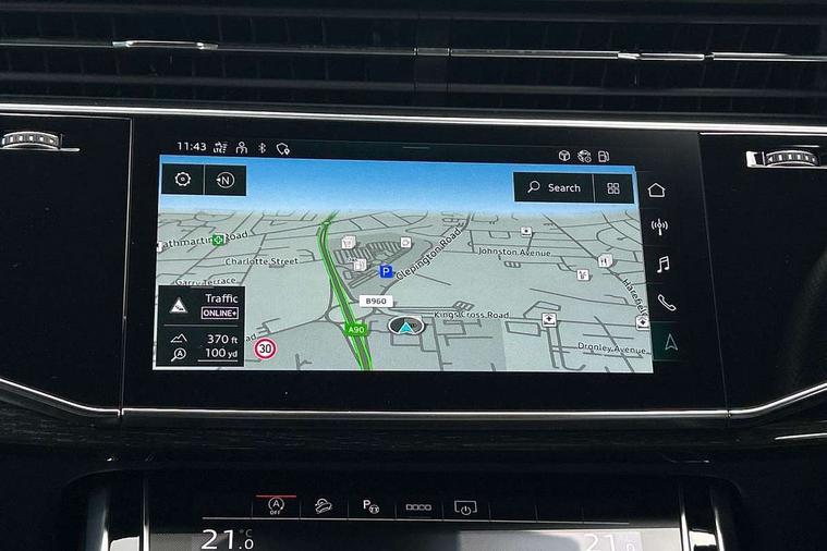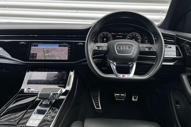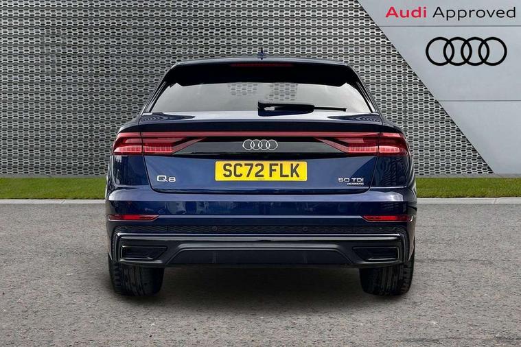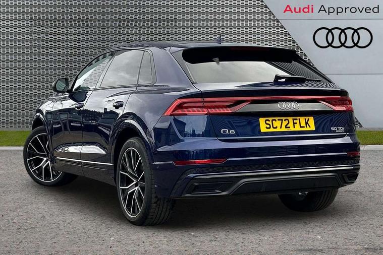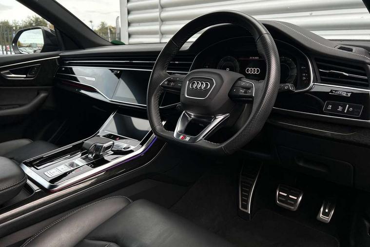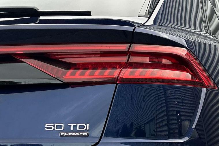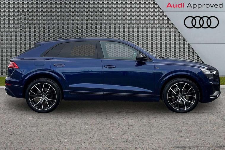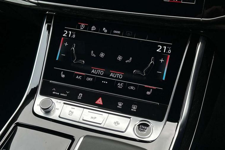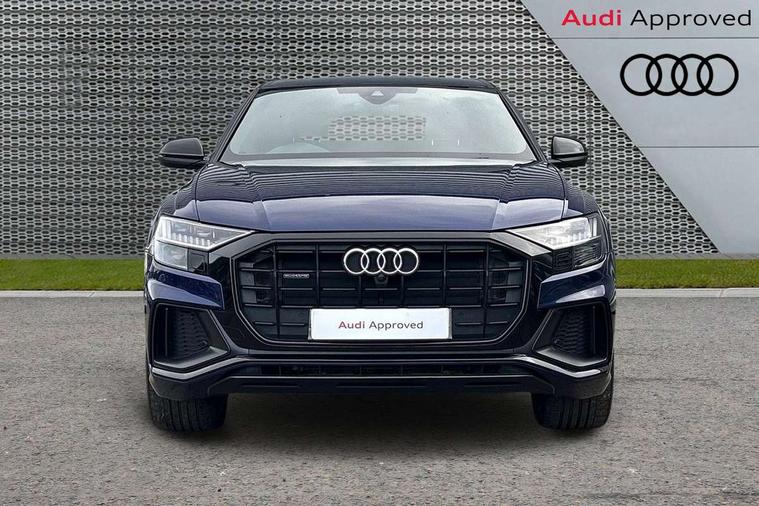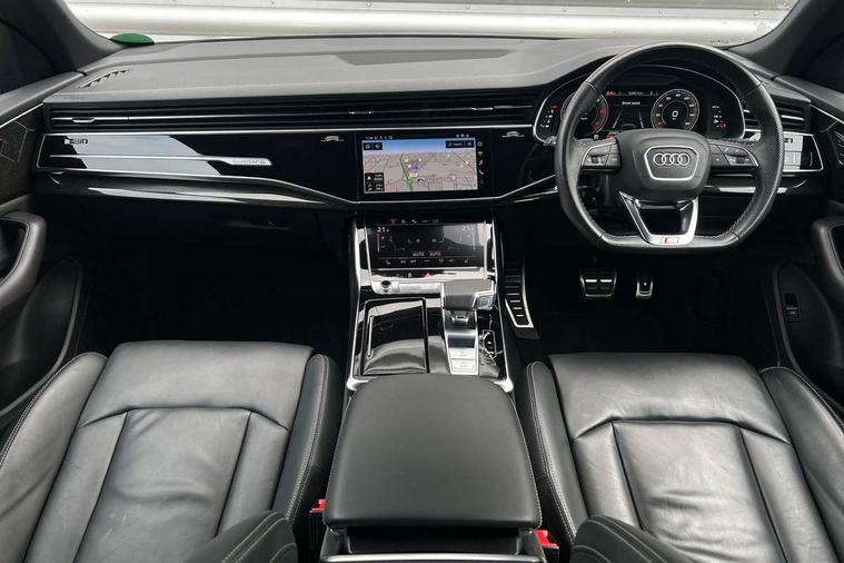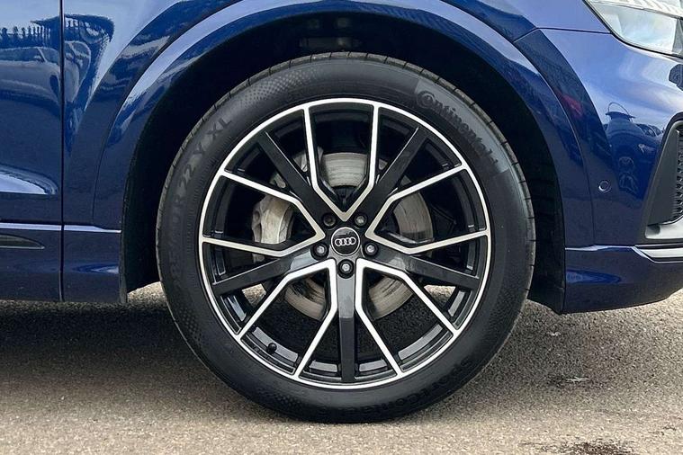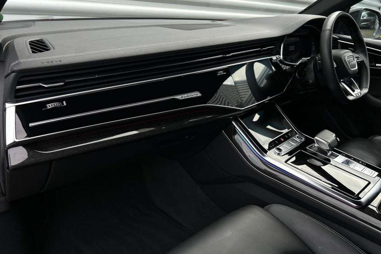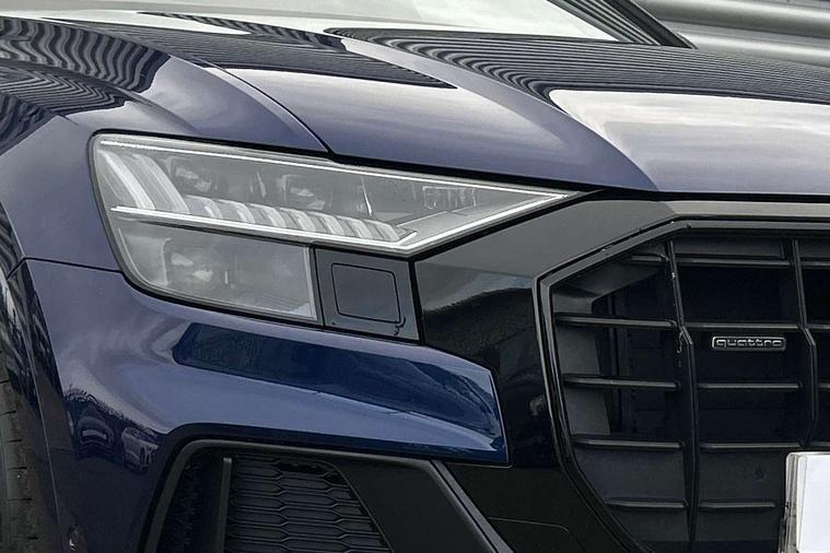 10.1" and 8.6" Dual colour touchscreens, Audi connect safety and service (e-call), Audi connect with Amazon Alexa Integration, Audi drive select, Audi parking system plus includes 360 degree display with front and rear sensors, Audi smartphone interface includes wireless Apple carplay/Android Auto, Audi virtual cockpit - 12.3" high resolution LCD display with fully customisable instrument cluster, Automatic start/stop system, Electro-mechanical PAS, Low washer fluid indicator, MMI - Multi Media Interface control system, MMI navigation plus with MMI touch, Natural voice recognition, On board computer, Operating buttons in black, glass look with haptic feedback, Power operated tailgate, Rear view camera, Service interval indicator, 48V Mild hybrid technology, Adaptive sport air suspension, Diesel particulate filter, Quattro all wheel drive with self locking centre differential, Audi music interface with 2 USB ports with charge and data functions, Audi sound system with 6 channel amplifier, 180 watt amplifying capacity and 10 loudspeakers including subwoofer, Aux-in socket, DAB Digital radio, 3rd brake light, Acoustic windscreen, Audi HD Matrix LED headlights with dynamic front and rear indicators, Auto dimming frameless rear view mirror, Coming/leaving home lighting function, Electric front+rear windows, Electrically folding auto dimming/adjustable/heated door mirrors with memory function, LED side indicators and kerb view function for passenger side, Headlight washers, Heat insulating glass in windshield, LED signature daytime running lights, Platinum grey front spoiler lip and diffuser insert, Privacy glass - dark tinted rear and rear side windows from B-pillar backwards, Rain and light sensors, Rear side wing doors, Rear wiper, 3 bench rear seats in 2nd row, 4 zone deluxe automatic climate control, 4-way lumbar support for front seats, 40:20:40 split folding rear bench seat, Black cloth headlining, Comfort front centre armrest, Driver seat memory function, Electrically adjustable front seats, Front head restraints, Front/rear floor mats, Heated front seats, ISOFIX child seat mounting for front passenger seat and 2 outer rear seats with top tether child seat mounting for all 3 rear seats, LED interior ambient lighting, Luggage compartment sill protection in stainless steel, Rear centre armrest with 2 cupholders, Rear headrests, Single front passenger seat, Stainless steel pedals, Sunvisors with illuminated vanity mirrors, Titanium Black Styling Pack - Q8, 3 point seatbelts on all seats, Audi pre sense front, Child locks on rear doors, Driver and front passenger, front side and curtain airbags, Electromechanical parking brake, Electronic Stability Control (ESC) including ABS, ASR and EDL, Front passenger airbag deactivation, Hill descent control, Hill hold assist, Predictive pedestrian protection, Seatbelt monitoring, Traction control, Tyre pressure loss indicator, Warning triangle and first aid kit, Anti theft alarm with tow away protection, Anti-theft wheel bolts and wheel loosening detection, Immobiliser, Keyless go with remote central locking, Polished oak trim with grey finish inlay, Tool kit, Tyre repair kit,