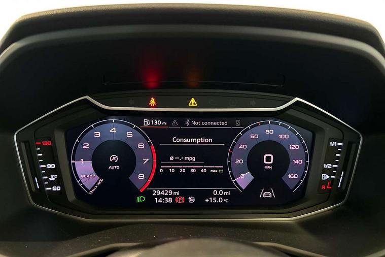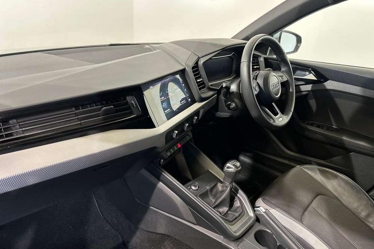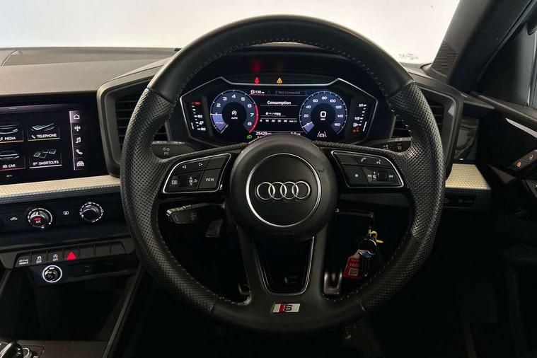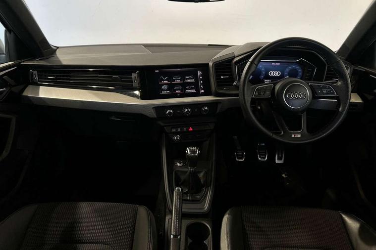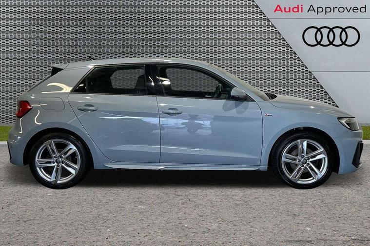 10.25" Digital instrument cluster display classis style instrument dials + speed, odometer, time, outside temperature, telephone menu + fuel level warning, Audi connect safety emergency and service including E-call, Audi drive select - power steering assistance + engine, Audi smartphone interface with connect compatible smartphone via USB directly MMI display + Nav, music, third party apps controlled via MMI controller, Automatic start/stop system, Bluetooth interface, Cruise control, Driver's information system, Electromechanical power steering, Lane departure warning system, Rear parking sensor, Service interval indicator, Speed limiter, Voice control system, Washer fluid level indicator, Sports suspension, 1 x SDXC card reader, 1 x USB type C and 1 USB type A charging points, DAB Digital radio, MMI radio plus with 8.8" colour MMI display screen and MMI touch, Auto dimming rear view mirror, Body coloured door mirrors, Door sills with aluminium inlays and S Line logo, Electric front and rear windows, Electrically adjustable, heated, folding door mirrors with integrated LED side indicator, Front side air inlets in grained matt black and C frame in titanium black, Heat insulating glass windscreen and side windows, Heated rear windscreen, LED headlights with LED rear lights + dynamic rear indicators + headlight adjustment and high beam, turning light + LED daytime running lights, Radiator grille and rear diffuser in matt titanium black, Radiator protective grille frame in matt aluminium silver, Rain and light sensors, Rear fog lights, Rear wiper, S line badges on front wings, Side front spoiler lips in grained matt black, 12V socket in centre console with two cup holders, 3 rear seats with headrests, 40:60 Split folding rear seat or folded fully, Black cloth headlining, Driver and passenger seat with manual height adjust with forward and backwards adjustment, Front and rear black floor mats with contrast stitching in fine silver, Front head restraints, Height and reach adjustable steering wheel, ISOFIX child seat mounting for front passenger and outer rear seats including top tether attachment point of outer rear seats, Leather gear knob with aluminium trim, Luggage compartment light with front and rear reading lights, Manually adjustable lumbar support in front seats, Stainless steel pedals, LED interior lighting pack - A1, Luggage compartment pack - A1, S line exterior styling pack - A1 Sportback, 3x3 point rear seatbelts, Audi pre-sense front with pedestrain and cyclist recognition, Brake assist function, Driver and front passenger airbag with front side and head airbags, Electronic Stability Control including ABS, EBD, ASR and EDL, Front and rear seatbelt reminder, Front passenger airbag deactivation switch, Hill hold assist, Seatbelt height adjustment for front seats, Seatbelt monitoring, Tyre pressure warning light, Warning triangle and first aid kit, Anti theft alarm, Anti theft wheel bolts and loose wheel warning, Immobiliser, Remote central locking with 2 foldaway keys, Aluminium trim for control switches, air vents and digital instrument cluster, Silver grey inlays polygon structure in diamond paint finish, Structured grey accent areas including air vents, door handle recesses and centre console in quartz paint finish,