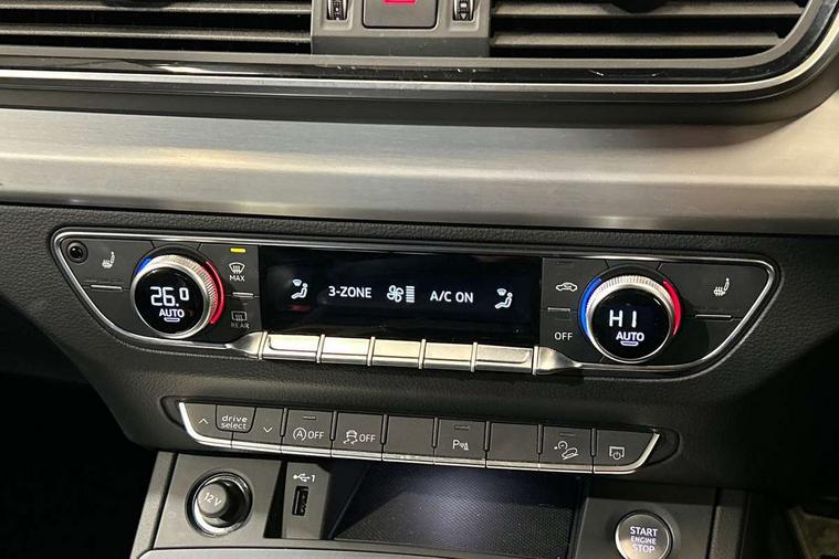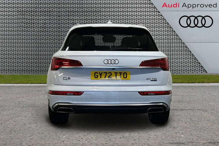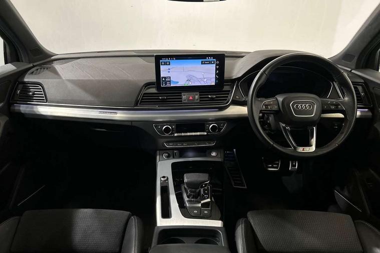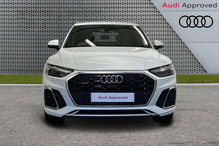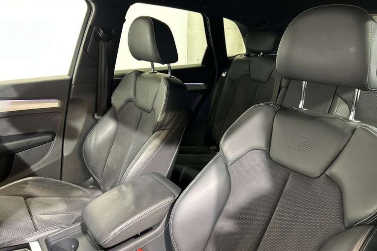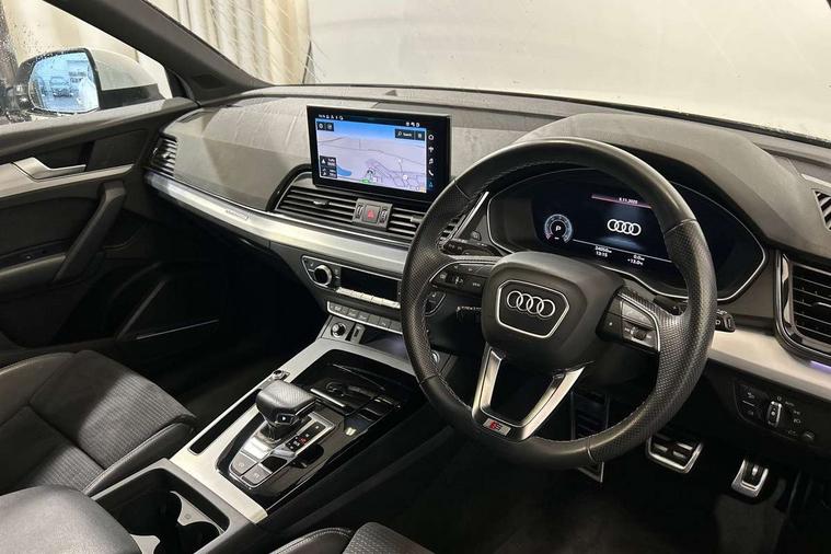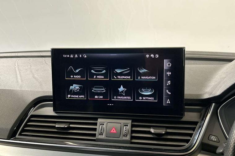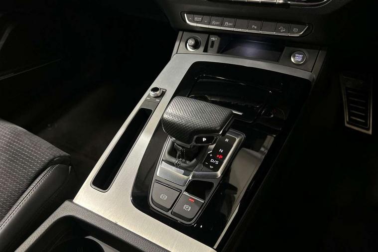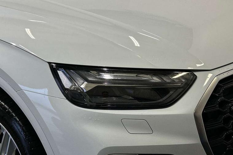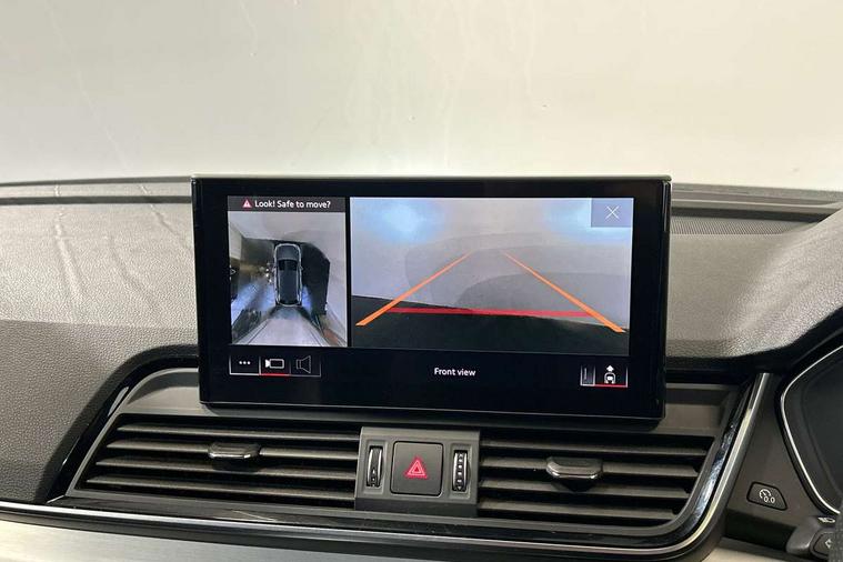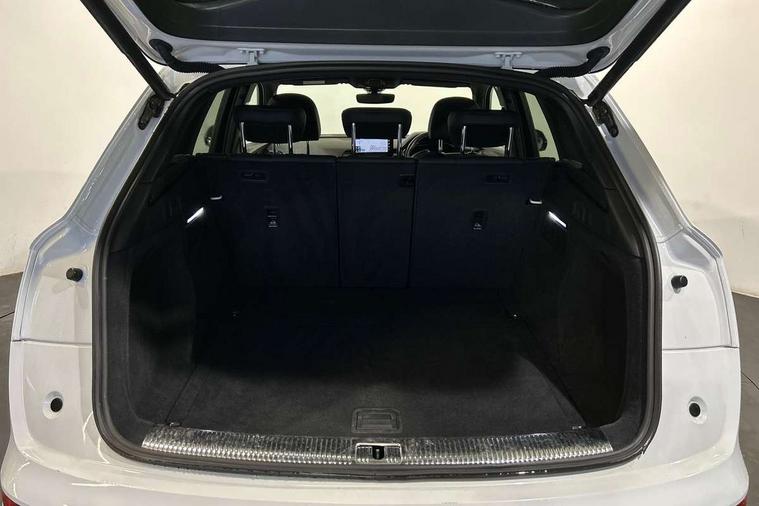 Audi connect safety and service (e-call), Audi connect with Amazon Alexa Integration, Audi drive select, Audi virtual cockpit plus with 12.3" screen and three different layout designs, Audi wireless smartphone interface, Automatic start-stop system with coasting functionality and efficiency programme, Bluetooth interface, Electro - mechanical power assisted steering, MMI navigation plus with 10.1" touch screen, Power tailgate, Reversing camera, Service interval indicator, Voice control system with Audi hotword activation "Hey Audi", Diesel particulate filter, Quattro on demand, S line sports suspension, DAB Digital radio, Acoustic windscreen, Aluminium roof rails, Audi matrix LED headlights with dynamic front and rear indicators, Auto dimming door mirrors, Auto dimming rear view mirror, Automatic headlight adjustment, Automatic headlights and windscreen wipers, Body colour bumpers, Body colour door mirrors, Body colour rear diffuser with matt aluminium silver surrounds, Body colour underbody protection, Chrome plated exhaust trims, Daytime running lights, Door sills in Selenite silver, Electric adjustable/heated/folding door mirrors, Front air inlet surrounds in aluminium, Front and rear electric windows, Front radiator grille in honeycomb design, Headlight washers, High level LED brake light, Lower bumpers painted in contrast Manhattan grey, Rear chrome trim strip below lights, Rear privacy glass and rear side windows, Rear side wing doors, Rear wiper, Roof bars, S Line badges on the front wings, S Line front and rear bumpers, S Line rear spoiler, S Line side skirts, 2 x USB charging port with aux input socket, 3 rear headrests, 40:20:40 split folding 3 rear bench seat in 2nd row with rear centre armrest, Black cloth headlining, Comfort front centre armrest, Contrast stitching on seats, steering wheel and gear lever gaiter, Deluxe 3 zone electronic climate control, Front/rear floor mats, Gear lever in black leather, Heated front seats, Height adjustable front head restraints, Height/reach adjustable steering column, Illuminated door sill trims with S logo, ISOFIX child seat mounting and top tether, Luggage compartment cover, Manual seat adjustment with 4-way electric lumbar support, Removable luggage compartment floor, Single front passenger seat, Stainless steel pedals, Sunvisors with vanity mirrors, High gloss pack - Q5, LED interior light pack - Q5, 3 point seatbelts on all seats, 6 airbags - Driver, front passenger, curtain and side airbags, Electrically operated child locks on rear doors, Electromechanical parking brake, Electronic stabilisation control including ABS, ASR and EDL, Front passenger airbag deactivation, Hill descent control, Hill hold assist, Multi collision brake assist, Pop-up bonnet for pedestrian protection, Pre sense city, Seat belt force limiter, Seatbelt monitoring, Tyre pressure warning, Warning triangle and first aid kit, Anti theft alarm, Anti-theft wheel bolts, Keyless Go access/ignition system, Remote central locking, Matt brushed aluminium inlays,