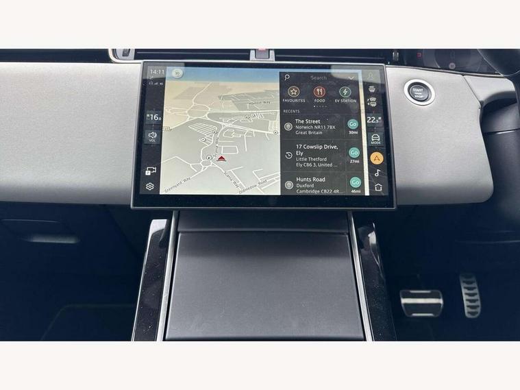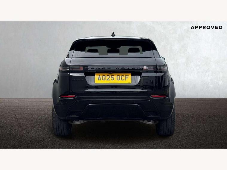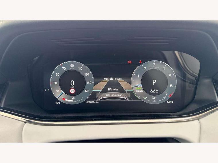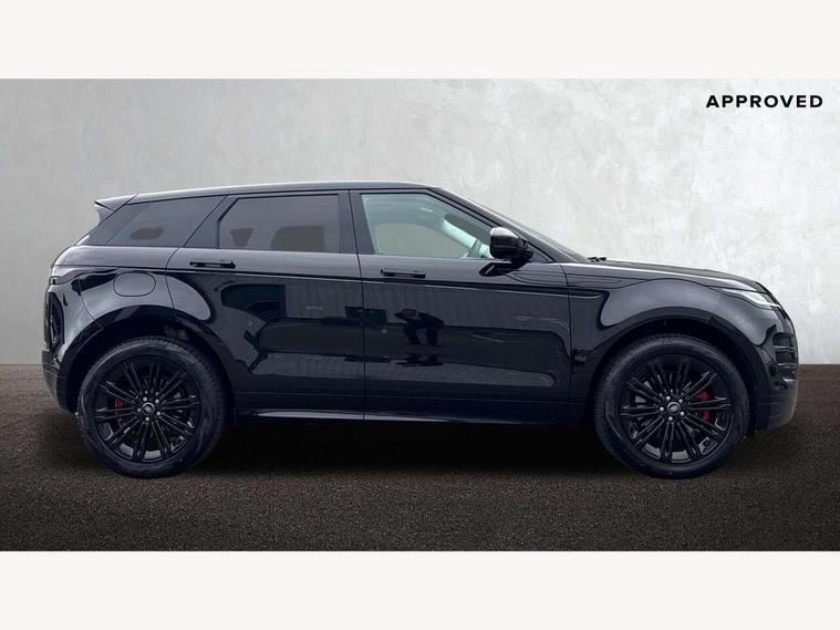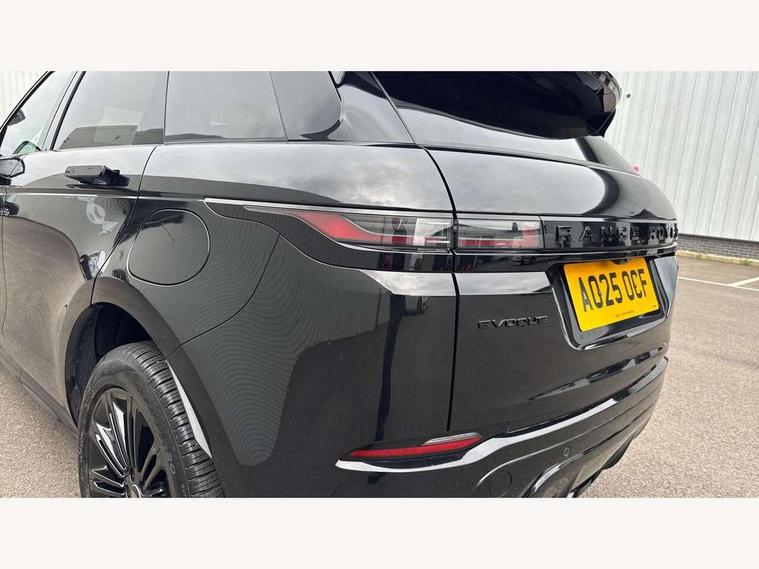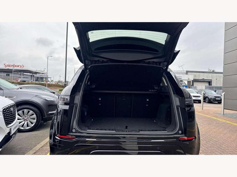 11.4" touch screen, Adaptive cruise control, Android Auto, Apple car play, Blind spot assist, Bluetooth connectivity, Brake pad wear indicator warning light, Driver condition monitor, eCall emergency system, Eco mode, Electronic power assisted steering (EPAS), Front and rear parking aid, InControl remote, Interactive driver display, Land Rover InControl apps, Lane keep assist, Pivi pro connected includes diamond pivi variant, smart settings, connected navigation pro, nuance speech licence, Powered tailgate/boot lid, Rear collision monitor, Rear traffic monitor, Traffic sign recognition with adaptive speed limiter, Voice control system, Wireless device charging, All terrain progress control, Electric rear axle drive, Home charging cable, Large fuel tank, Passive suspension, Public charging cable, Terrain Response 2, Digital Audio Broadcast radio-DAB, Steering wheel mounted controls, Acoustic laminated windscreen, Auto headlights, Auto high beam assist, Automatic headlight levelling, Electric windows with one touch open/close and anti trap, Flush deployable exterior door handles, Front and rear recovery eyes, Heated rear window with timer, Heated washer jets, Heated windscreen, LED headlights with signature DRL and LED tail Lights, Power fold, auto-dimming, heated door mirrors with approach lights and auto dimming driver side, Rain sensing windscreen wipers, Rear animated directional indicators, Rear fog lights, Rear side wing doors, Rear wiper, Side repeater indicators in mirror, Tailgate spoiler, Third brake light, Winter wiper park position, 12 way driver memory and 10 way passenger electric front seats with 2 way manual headrest + 4 way lumbar support, 40:20:40 split folding rear seats with centre headrest and armrest, Ambient interior lighting, Bright metal pedals, Carpet mats, Chrome tread plates with range rover branding Includes stainless steel loadspace scuff plate with etched graphic, Customer configurable single point entry, Front and rear cupholders, Heated front seats, Heated steering wheel, Isofix system on outer rear seats, Manually adjustable steering column, Overhead lighting console, Overhead stowage for sunglasses, Passive front head restraints, Rear air vents, Rear head restraints, Satin chrome gearshift paddles, SE Grained leather upholstery, Single passenger seat, Standard steering wheel with Moonlight Bezel, Sunvisors with illuminated vanity mirrors, Twin sliding front centre armrest, Online pack with data plan - Evoque, Power socket pack 2 - Evoque, 3 rear 3 point seatbelts, Anti-lock braking system (ABS), Brake hold function, Customer configurable autolock, DSC - Dynamic Stability Control, Electronic brake force distribution, Electronic parking brake, Electronic traction control, Emergency braking, Front and rear seatbelt reminder, Hill descent control, Hill launch assist, Low traction launch, Occupant protection assist, Passenger seat occupant detector, Power operated child locks, Roll stability control, Six airbags - Driver and passenger airbags/driver knee airbag/front side airbag and curtain airbags, Torque vectoring brake, Tyre pressure monitoring system, Alarm, Immobiliser, Intrusion sensor, Keyless entry, Locking wheel nuts,
