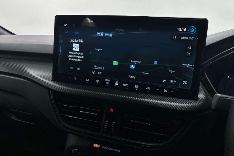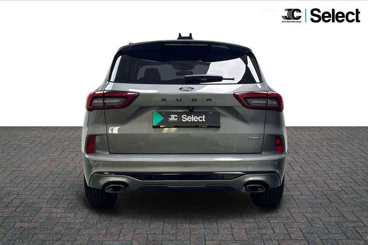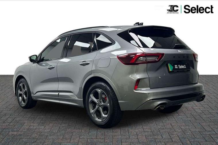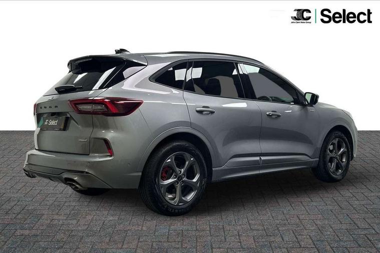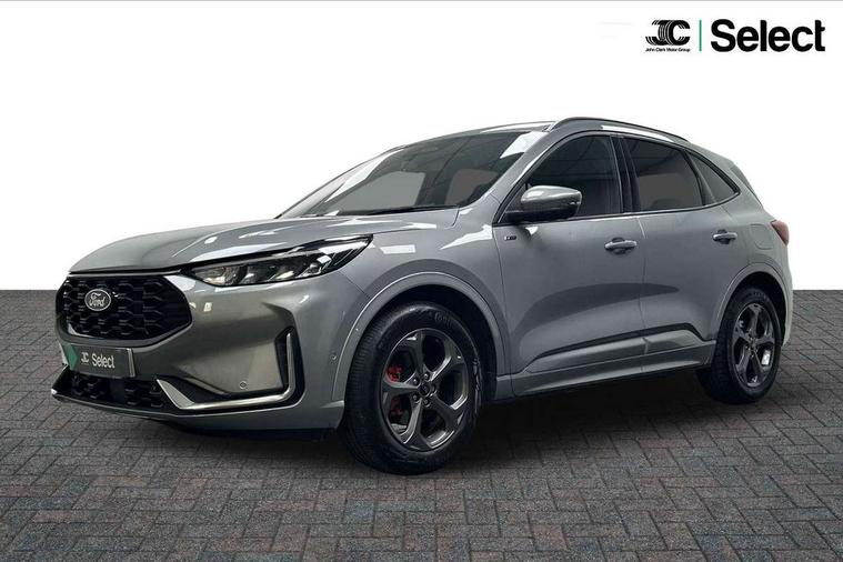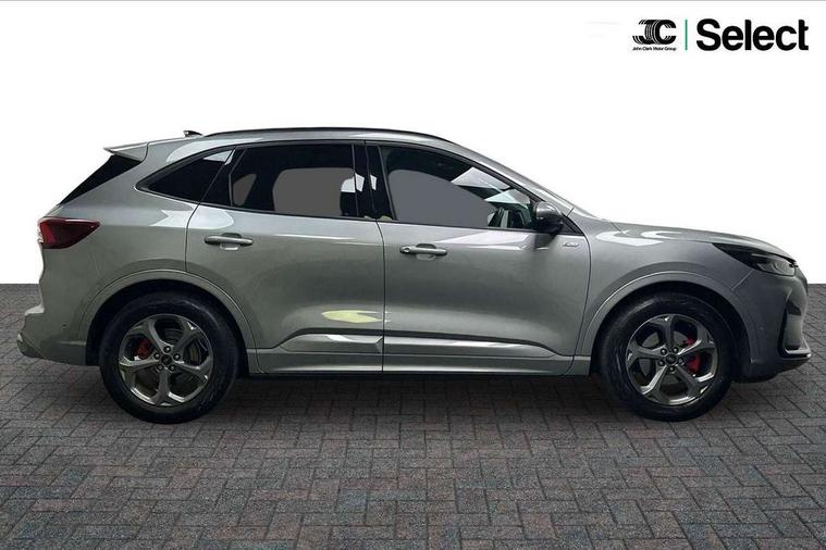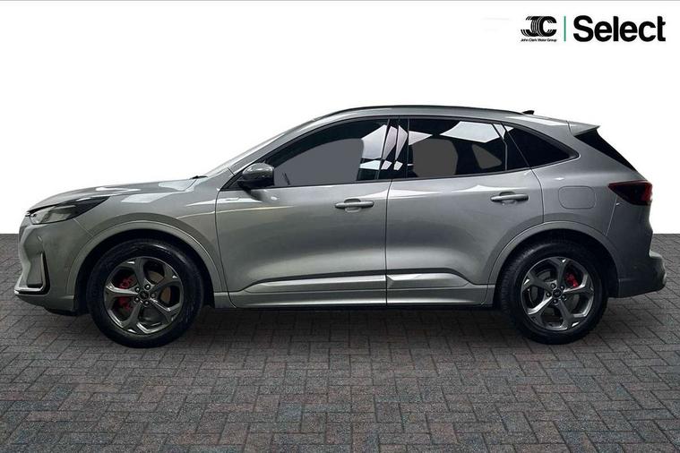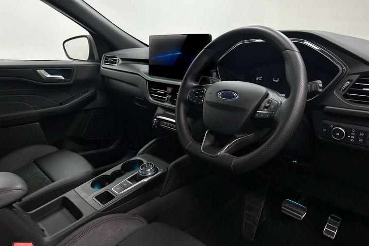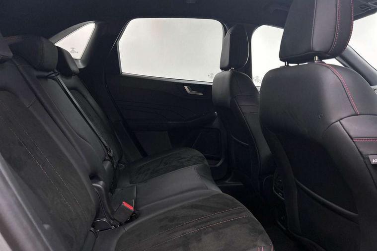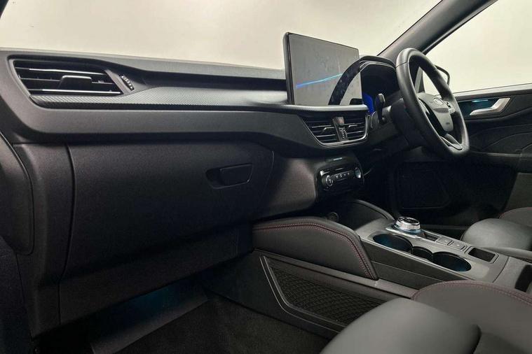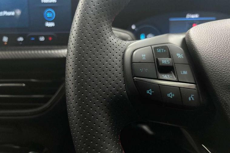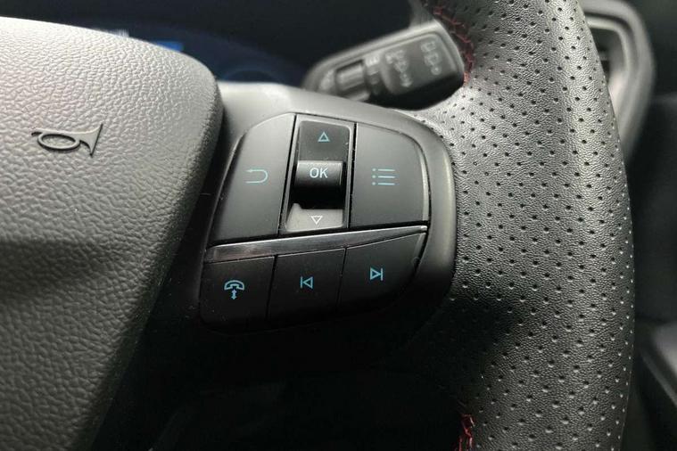 12.3" digital colour instrument cluster, 360 degree camera, e-Call (emergency call), Ford easy fuel, Ford SYNC 4 Navigation with 13" touchscreen, DAB radio, emergency assistance, Andriod Auto/Apple CarPlay, 5G modem & Ford Pass connect, Front and rear parking sensors, Hands free power tailgate, Lane centering assist, Lane keeping aid with lane departure warning, Power assist steering, Selectable drive modes, Service interval indicator, Sports suspension, Twist beam rear suspension, B&O premium audio system with 10 speakers, subwoofer and 2 USB ports, Auto headlamps with high and low beam, Black roof rails, Body colour bumpers, Front LED fog lamps, Large rear spoiler, LED daytime running lights, LED rear lights, Pop out door edge protectors, Power front/rear windows with global close, Power heated folding door mirrors with puddle lights, memory function and camera, Quickclear heated windscreen, Rain sensing wipers, Rear privacy glass, Rear side wing doors, Rear wiper, ST-Line body styling kit, Third brake light, 12 way ergonomic power adjust driver's seat with memory (AGR certified), 12 way ergonomic power adjust passenger seat (AGR certified), 2nd row sliding seats, Electronic automatic temperature control (EATC), Front and rear head restraints, Partial premium touch sensico upholstery, Rear centre head restraint, Single front passenger seat, Sports seats, Driver assistance pack with intelligent adaptive cruise control - Kuga FHEV/PHEV, 3x3 point rear seatbelts, Airbags - front driver/passenger, front and rear curtain, Drivers knee airbag, Dynamic brake support, Electronic stability control (ESC) and ABS, Evasive steering assist, Ford MyKey Gen 2 safety system, Manual child proof rear door locks, Pre collision assist with autonomous emergency braking, Rear seat Occupancy alert, Red brake calipers, Tyre pressure monitoring system, Engine immobiliser, Keyless entry and Ford power start button (Keyless start), Locking wheel nuts, Remote powered central double locking doors, Thatcham category 1 alarm,