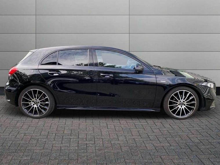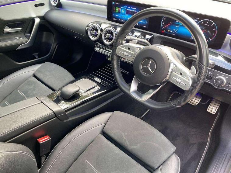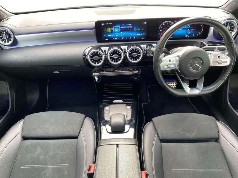 10.25" Digital instrument cluster display screen, 10.25" media display, 180 degree rear view camera with parking guidelines, Active parking assist with visual and audible warning of detected obstacles, Attention assist, Brake pad wear indicator warning light, Car wash mode, Cruise control + speed limiter, Direct steering, Dual bluetooth interfaces, DYNAMIC SELECT with a choice of driving modes (ECO, Comfort, Sport and Individual), ECO start/stop function, Fluid level warning indicator for fuel, oil, coolant and washer fluid, Hard-disk navigation, Hey Mercedes Voice activation, Lamp failure indicator, Mercedes me connect including emergency call system, accident recovery, breakdown and maintenance management, Mercedes me remote services, Outside temperature gauge, Owners manual in English, Pre-installation for private car sharing, Preinstallation for Mercedes Benz link, Service indicator (ASSYST), Smartphone integration with Apple CarPlay and Android auto, Speed limit assist, Speed sensitive power steering, Trip computer, Ultrasonic sensors positioned in the front and rear bumpers, Wireless charging, Lowered comfort suspension, Rear axle torsion beam, 2 USB ports (type C) in rear stowage compartment and one in front of center console, 6 speakers, MBUX multimedia system with DAB digital radio and touchpad including satellite navigation, Mercedes-Benz sound system - 100W, 4 Electric Front and Rear windows, Adaptive brake lights, Black chrome plated tailpipe trim, Body colour bumpers, Body colour door handles, Body colour side skirt, Diamond radiator grille with pins in black and black louvre, Edition badging on the front wings, Electric adjustable and heated door mirrors with integrated LED side indicators, Headlamp assist automatic headlamp activation, Heated glass rear windscreen + timer control, LED high performance headlamps with integrated LED daytime running lights, LED tail lamp, LED third brake light, Panoramic sliding sunroof, Privacy glass, Radio aerial, Rain sensing windscreen wipers with two sensitivity settings, Rear fog lights, Rear wiper, 3 Spoke flat bottom leather multi function steering wheel with perforated leather in grip area, 40:20:40 split folding rear seats, Artico man-made leather/ Dinamica microfiber upholstery, Auto Mercedes-Benz child seat recognition sensor, Black air vents with surround in silver chrome, Black roof lining, Brushed stainless steel sports pedals with rubber studs, Floor mats with black top stitching and embroidered edition logo and piping in light grey, Floor mats with stitched edging and AMG lettering, Front centre armrest with storage compartment, Front door sills with Mercedes Benz lettering, Front seat backs luggage nets, Front seat cushion length adjustment, Galvanished gear shift paddles on steering wheel, Heated front seats, Height/reach adjustable steering column, Interior lighting - 64 colour Ambient lighting, Interior mirror with reading lamps in black and frameless, Rear head restraints, Seat occupancy sensor for front passenger seat, Sports seats with integrated headrests, Stowage compartment in centre console with retractable cover, Sunvisors with illuminated vanity mirrors, Touchpad on center console, Twin front cupholders, Two zone thermotronic luxury automatic climate control, Light and sight pack - A Class, Mirror package - A Class, Night pack - A Class Exclusive Edition, Seat comfort pack - A Class, 3 rear 3 point seatbelts, ABS with Brake Assist, Active bonnet, Active brake assist includes forward collision warning system with autonomous braking, Adaptive brake assist with hold function and hill start assist, Black seatbelts, Bonnet with power domes, Childproof locks manually operated for rear doors and electrically operated for rear power windows, Crash responsive emergency lighting, Driver and passenger head and side airbags, Drivers knee airbag, Dual stage driver/passenger airbags, Electronic parking brake, ESP curve dynamic assist, ESP with ASR, Front and rear seatbelt reminder, ISOFIX and top tether child seat fixing points in two outer rear seats, Tyre pressure monitoring system, Warning triangle and first aid kit, Window airbags, Alarm system/interior protection/immobiliser, Keyless Go, Remote central locking and crash sensor with emergency opening function, Urban guard vehicle protection system with immobiliser and interior protection, Light longitudinal grain aluminium trim painted, 19" AMG multi spoke light alloy wheels painted in titanium grey with high sheen finish, Summer tyres, Tirefit sealant kit,
