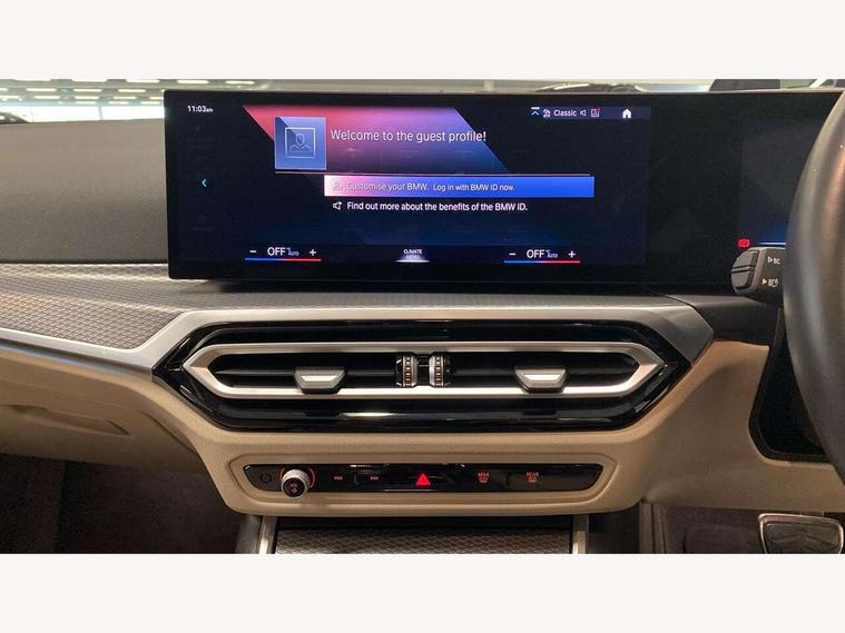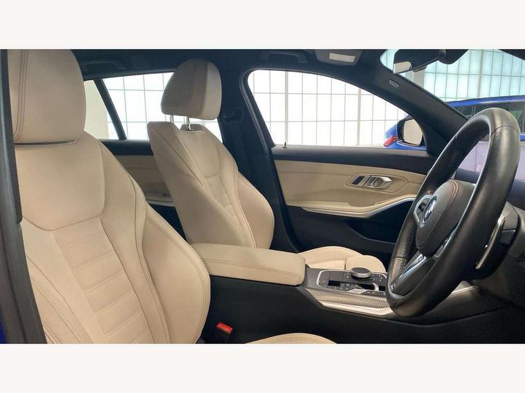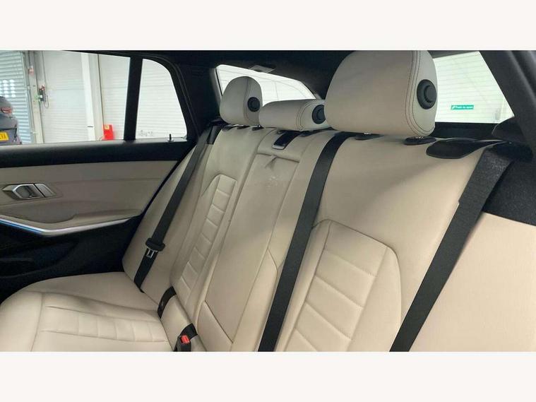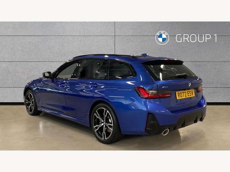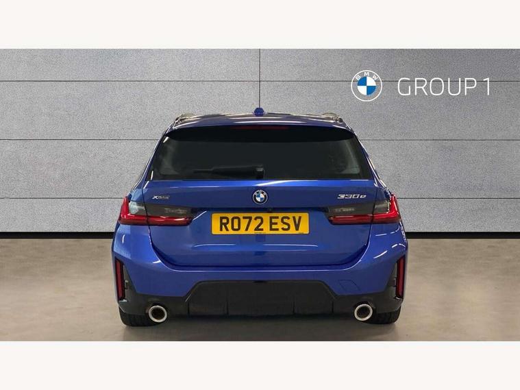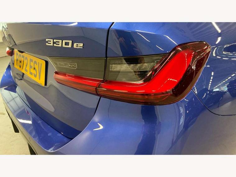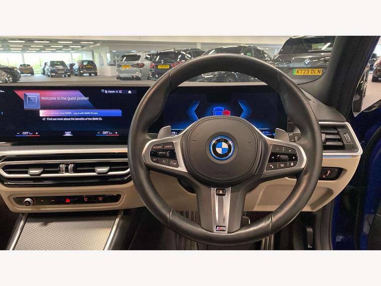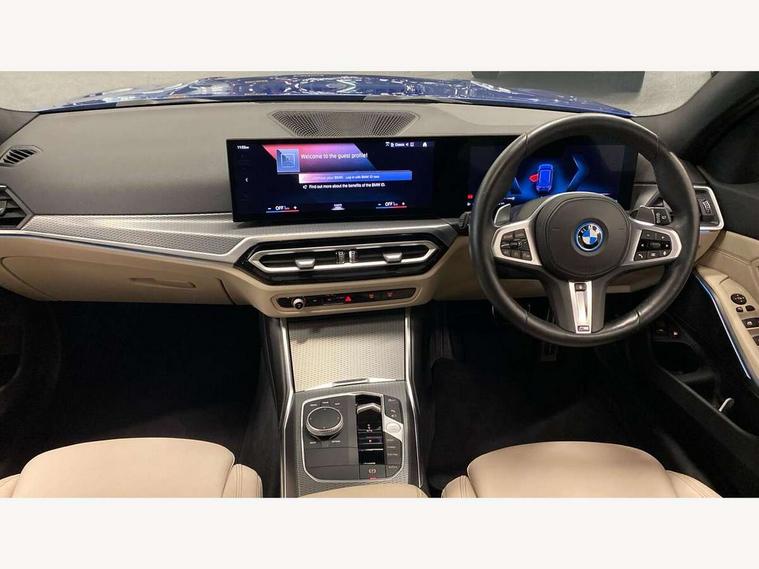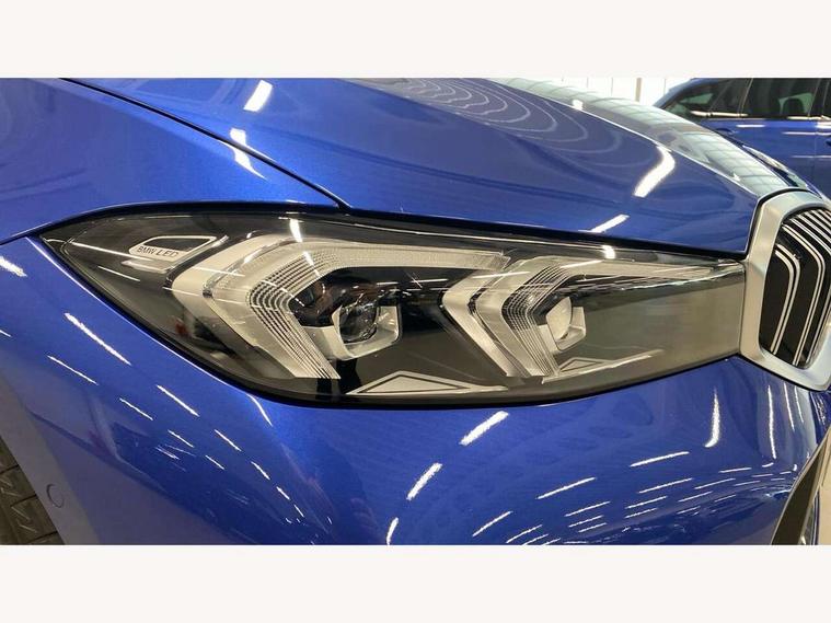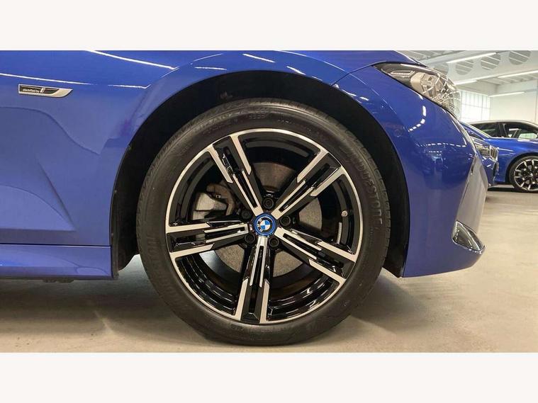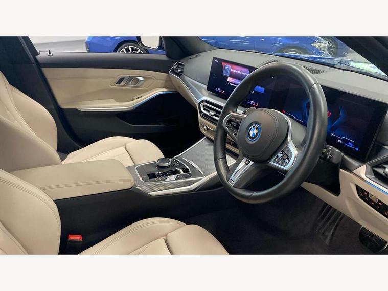 Active guard plus, Attentiveness assist, Automatic Start/stop button, BMW iDrive, BMW Teleservices, Condition based service, ConnectedDrive Services, Cruise control with brake function + speed limiter, Driving experience switch, Live cockpit plus with Navigation + 12.3" instrument display + 14.9" display, Intelligent voice assist, 2 USB, 4G LTE connect, Oil sensor for level and grade, PAS, Preparation for driver assistance, Shifting point display, Smartphone integration, Charging cable - Mode 2, Double joint spring strut front axle, Fuel tank breather system, Sport automatic transmission with steering-wheel mounted gearshift paddles and launch control, Standard suspension, DAB tuner, "Electrified by i" exterior badging on charging flap, 3rd brake light, Acoustic glazing, Automatic headlight beam throw control with load dependent regulating reaction, dynamic compensation of braking dive and acceleration squat, BMW emblem, engine compartment lid and tailgate, Body colour roof fin, Door sill strips, Electric windows - front and rear, with open/close fingertip control, anti-trap facility and comfort closing, Follow me home headlight function, Front and rear bumper system with replaceable deformation elements, Front apron plastic in body colour, Fuel filler flap - right rear in body colour, Heated washer jets, Illuminated bow type door handles in body colour drivers side with door lock, Interior rear view electrochromatic mirror with automatic anti dazzle function, LED headlights with LED daytime running lights and LED turn indicator, LED rear lights, Licence plate panel integrated into front bumper and tailgate, Matt black B-pillar finsher, Matt black window recess cover, Model designation on right side of tailgate, One piece front bumper cover including towing eye cover in body colour, Rain sensor with automatic headlight activation, Rear side wing doors, Rear wiper, Reversing lights, Side frame decorative moulding black matt, Visible exhaust tailpipe finisher, Welcome lights in interior and door handle area, 12V power socket in front storage compartment, 2 front cupholder in centre console with clamping elements and matt black inlay, 3 seat bench in 2nd row, 3 zone automatic air conditioning, 40:20:40 split folding rear seat with loading system, Anthracite headlining, Armrest integrated in front and rear door trim + front centre console armrest, Battery in luggage compartment, BMW ID, Driver backrest width adjustment, Folding rear centre armrest with 2 cupholders, Front and rear door exit lighting (left / right), Front and rear footwell lighting, Front and rear headrests, Front and rear reading lights, Front and rear velour floor mats, Front sport seats, Heated front seats, Height adjustable mechanically and infinitely variable steering column, Illuminated armrest storage compartment, Illuminated glove compartment, Illuminated luggage compartment, Lashing eyelets in luggage compartment, LED ambient lighting with welcome carpet light, M Sport multifunction leather steering wheel, Make-up mirror lights, Single front passenger seat, Standard seat for driver and passenger with manual adjustment, Sunvisors with vanity mirrors and ticket pocket, Toolkit located in luggage compartment, Connected pack professional - 3 Series Saloon/Touring, Interior and exterior mirror pack - 3 Series Touring/Saloon, M Aerodynamics package - 3 Series Saloon/Touring, M sport exterior styling pack - 3 Series Saloon/Touring, Parking assistant pack - 3 Series, Storage compartment pack - 3 Series Saloon/Touring, 3x3 point rear seatbelts, BMW emergency call, Child locks on rear doors, Crash sensor activating of airbags, Unlocking doors, hazard warning lights, fuel cut off, interior lighting+activation of safety battery terminal clamp, Driver and front passenger with seat occupancy detection for driver's and passenger side, Driver and passenger side airbags, body protection at side and airbags deploy from seat backrests, Dynamic brake control, Dynamic stability control + (DSC+) - Anti-lock Braking System (ABS) with brake assist and cornering brake control + Automatic Stability Control (ASC), Dynamic Traction Control - DTC, Electric parking brake including automatic hold function and automatic release of the parking brake when driving off, Electronic differential lock control (EDLC), Head airbags in 1st and 2nd row, head protection at side, curtain airbags open from headliner above 1st and 2nd row, Plastic fuel tank, Side impact protection, Tyre pressure monitoring with three level warning strategy, Ventilated front and rear disc brakes, Warning triangle and first aid kit, Alarm system, Centre lock switch, Closing system with central locking, Electronic vehicle immobiliser,