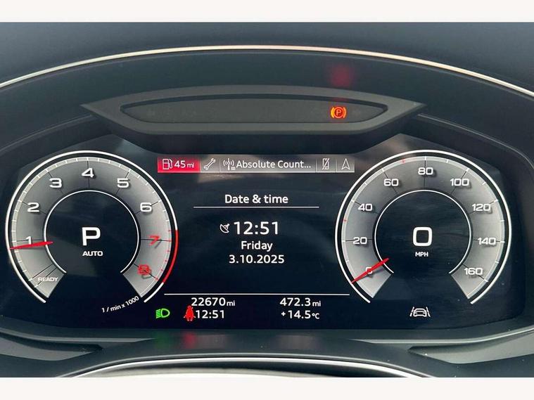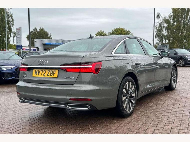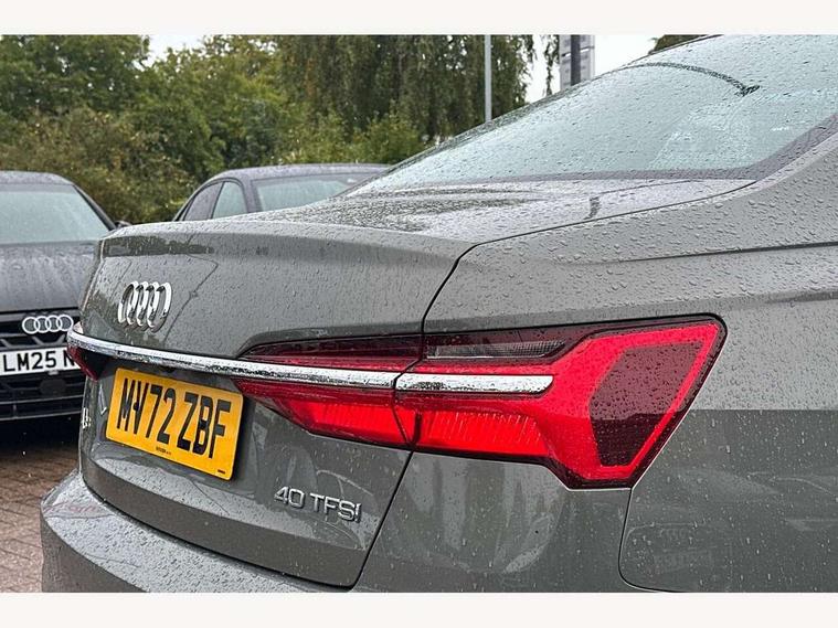 7" high resolution colour driver information display system, Audi connect safety and service (e-call), Audi connect with Amazon Alexa Integration, Audi drive select, Audi parking system plus - acoustic and visual park assist system for front and rear, Automatic start/stop system with coasting functionality, Bluetooth interface, Cruise control + speed limiter, Electric boot lid release, Lane departure warning system, Progressive steering, Rear view camera, Service interval indicator, Smartphone interface includes wireless Apple carplay/Android Auto, Voice control system, Standard suspension, Audi front music interface, Audi sound system, Auxiliary input socket, DAB Digital radio, USB connection, All weather LED headlights, Body colour bumpers, Body coloured door mirrors, Daytime running lights, Electric front/rear windows, Frameless auto dimming interior rear view mirror, Front intermittent wipers, Heat insulating darkened glass in side and rear windows, Heat insulating glass in windshield, LED rear lights, LED third brake light, Matt black rear diffuser with diffuser strip and tailpipes in chrome, Matt black side air intake grille with inlay in matt aluminium, Radiator grille in titanium black matt, single frame in chrome and horizontal struts in matt aluminium silver, Rain and light sensors, Rear boot, Rear side wing doors, 2 zone deluxe electronic climate control, 3 spoke high multi-function leather steering wheel with shift paddles, 4 way electric lumbar support for driver and front passenger, 40/20/40 split folding 3 rear seat bench in 3 parts with rear centre armrest, Black steering wheel insert, Centre armrest matches seat colour, Door sill trims with aluminium inlay, Front centre armrest, Front head restraints, Heated front seats, Height/reach adjust steering wheel, Illuminated sun visors with vanity mirrors, ISOFIX child seat mounting and Top Tether with front passenger airbag deactivation, Leather gear knob, Lunar silver cloth headlining, Rear headrests, Single front passenger seat, LED Interior Ambient Lighting Pack - A6, Non smoking pack - A6, Technology pack - A6, 3 point seatbelts on all seats, Airbags - Front side, front and rear including head, Audi pre-sense front, EBD - Electronic brakeforce distribution, Electromechanical parking brake, Electronic Stability Control (ESC) including ABS, ASR and EDL, Extended pedestrian protection measures, Manual child proof rear door locks, Seatbelt monitoring, Tyre pressure warning light, Warning triangle and first aid kit, Anti theft alarm with tow away protection, Anti-theft wheel bolts and wheel loosening detection, Immobiliser, Keyless Go, Remote central locking, Aluminium fragment inlay,