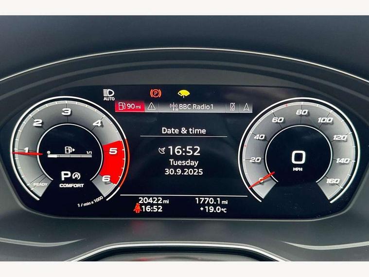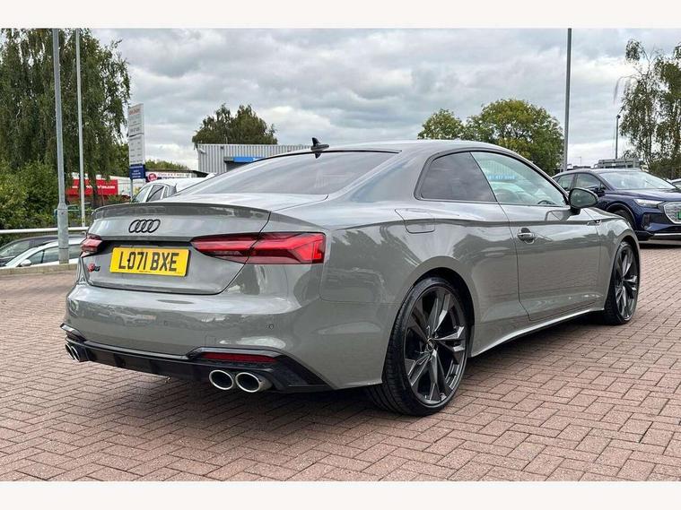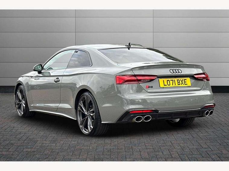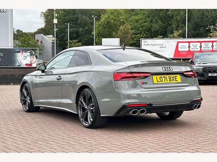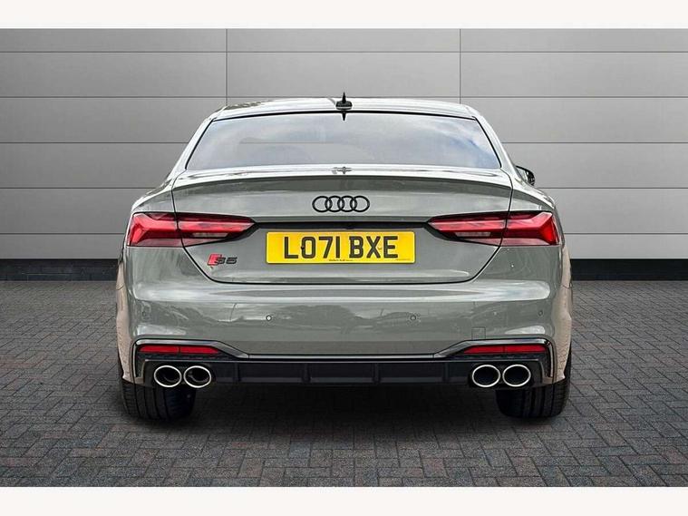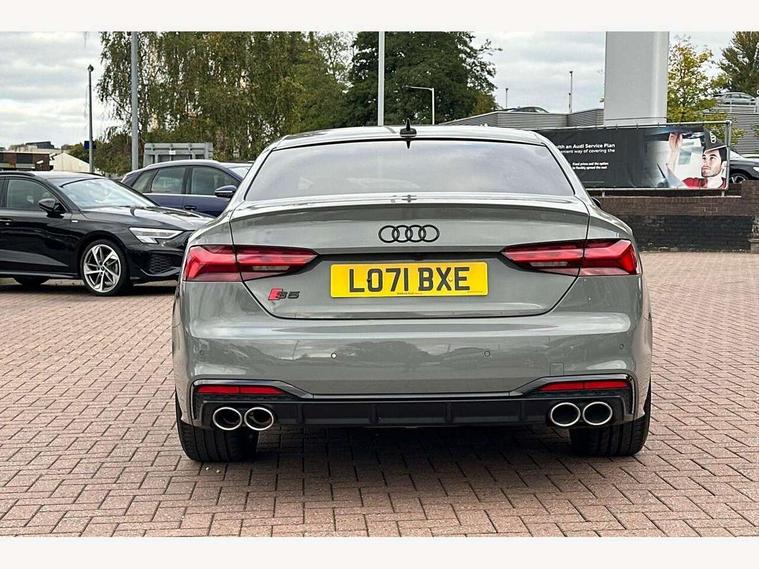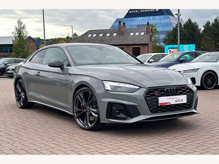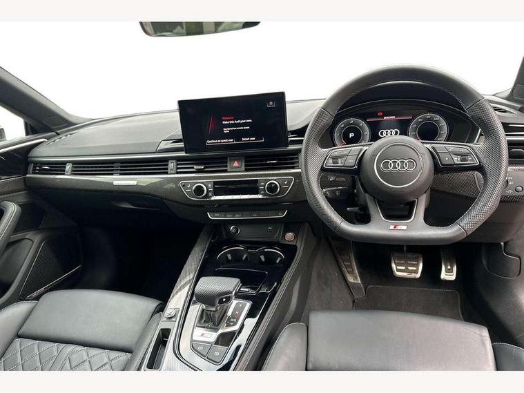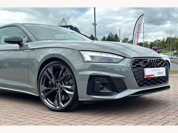 Audi connect safety and service (e-call), Audi connect with Amazon Alexa Integration, Audi drive select (Auto, Comfort, Dynamic, Efficiency and Individual), Audi parking system plus with front and rear sensors, Audi smartphone interface, Audi virtual cockpit - 12.3" full colour digital instrument cluster, vehicle/engine speed, Radio/media information+Driver assistance systems, Automatic start-stop system with coasting functionality and efficiency programme, Bluetooth interface, Electric boot lid release, Electro-mechanical power steering, Email, calendar and text messages displayed via MMI, MMI nav+ with MMI touch - 10.1" high resolution MMI display, touch sensitive, 3D map, route/country info, dynamic route guide, personal route assist, Rear view camera, S instrument dials, Service interval indicator, Voice control system, Diesel particulate filter, S sports suspension, Audi sound system with 10 loudspeakers, CD player, DAB digital radio reception, Two additional USB ports for rear passenger in rear centre console, Two SDXC card slots, Audi Beam uses LEDs to project the Audi logo, Audi matrix LED headlights with LED rear lights + dynamic front and rear indicators, Auto dimming rear view mirror, Black door mirror housings, Body colour door handles, Body colour front spoiler lip, Body colour side sill trim, Electric adjustable heated door mirrors, Electric folding door mirrors, Electric front windows, Front fog lights, LED daytime running lights, LED third brake light, Privacy glass, Rain and light sensors, Rear side wing doors, S line front and rear bumpers with side skirts, S model rear spoiler in black, S radiator grille in twilight grey matt with dual struts in aluminium and S5 logo, S rear diffuser in twilight grey matt and honeycomb grille in black, S specific dual branch chrome tailpipes with twin oval pipes on left and right, S specific side air inlets in titan black with chrome inlays in unique S design, Variable front intermittent wipers, Windscreen with acoustic glazing, 40/20/40 split folding 2 seater rear seat bench with rear centre armrest, Adjustable steering column, Black cloth headlining, Black leather gear lever knob, Contrast stitching on seats, steering wheel and gear lever gaiter, Deluxe 3 zone electronic climate control, Electrically adjustable front seats, Fine nappa leather upholstery with S embossed logo + super sports seats, Front centre armrest, Front head restraints, Front/rear floor mats, Gear lever with diamond S badge, Heated front seats, Illuminated door sill trim with S logo, ISOFIX child seat mounting and top tether, Key with S5 logo, Luggage compartment mat, Pneumatically adjustable lumbar support with massage function, Rear headrests, Single front passenger seat, Stainless steel pedals, Sunvisors with vanity mirrors, Black styling pack - A5 Coupe/Sportback, Extended leather pack - A5, LED interior light pack - A5/RS5, 2 x 3-point rear seatbelts, 6 airbags - Driver, front passenger, curtain and side airbags, Electromechanical parking brake, Electronic Stabilisation Control (ESC) including ABS, ASR and EDL, Front brake calipers painted in black with S5 logo, Front passenger airbag deactivation, Height adjustable front seatbelts, Hill hold assist, Multi collision brake assist, Pop-up bonnet for pedestrian protection, Pre sense city, S model enhanced braking system, Seatbelt monitoring, Tyre pressure warning, Variable restraint system, Warning triangle and first aid kit, Anti theft alarm system, Anti theft wheel bolts, Immobiliser, Keyless Go, Remote central locking, 20" 5 twin spoke polygon design alloy wheels in gloss anthracite black and gloss turned finish, Tool kit, Tyre repair kit,