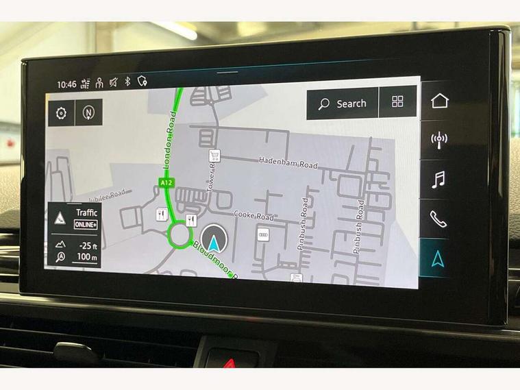 Audi connect safety and service (e-call), Audi connect with Amazon Alexa Integration, Audi drive select, Audi smartphone interface, Audi virtual cockpit, Automatic start-stop system with coasting functionality and efficiency programme, Bluetooth interface, Electromechanical power steering, Email, calendar and text messages displayed via MMI, MMI Navigation plus with MMI touch includes 10.1" high resolution colour MMI display, 3D map, Power operated tailgate, Voice control system, 54 litre fuel tank, Sports suspension lowered by 23mm, 2 USB charging ports, 8 passive loudspeakers, DAB digital radio reception, Aluminium roof rails, Auto dimming rear view mirror, Body colour door handles, Body colour front spoiler lip, Body colour side sill trim, Body coloured door mirrors, Electrically folding auto dimming/adjustable/heated door mirrors with LED side indicators and kerb view function for passenger side, Grained matt black side air inlets with matt aluminium silver inlay, High beam assistant, Honeycomb structure radiator grille in grained matt black, LED headlights with LED rear lights + dynamic rear indicators + headlight adjustment and high beam, turning light + LED daytime running lights, LED third brake light, Matt aluminium silver tailpipe trim, Privacy glass, Rain and light sensors, Rear side wing doors, Rear wiper, S Line badges on the front wings, S line front and rear bumpers with side skirts, S Line rear diffuser in matt anthracite black with trim strip in matt aluminium silver, S Line roof edge spoiler, Variable intermittent front wash/wipe, Windscreen with acoustic glazing, 3 spoke high multi-function sports leather steering wheel grips in perforated leather with S badging including paddle shift, 4 way electric lumbar support for driver and front passenger, 40/20/40 split folding 3 rear seat bench in 3 parts with rear centre armrest, Black cloth headlining, Black perforated leather gearknob, Contrast stitching on seats, steering wheel and gear lever gaiter, Deluxe 3 zone electronic climate control, Door sill trims with aluminium inlay, Electric load area cover, Front and rear head restraints, Front centre armrest, Heated front seats, Illuminated door sill trims with S logo, ISOFIX child seat mounting and top tether, Manual seat adjustment, Single front passenger seat, Stainless steel pedals and foot rest, High gloss package - A4, LED Interior light pack - A4/S4, 3 rear seatbelts, 6 airbags - Driver, front passenger, curtain and side windows, Electronic Stabilisation Control (ESC) including ABS, ASR and EDL, Hill hold assist, Multi collision brake assist, Pop-up bonnet for pedestrian protection, Pre sense city, Rear door child safety locks, Seatbelt monitoring, Warning triangle and first aid kit, Anti theft alarm, Anti theft wheel bolts, Central locking, Keyless Go, Matt brushed aluminium inlays, Tool kit, Tyre repair kit,