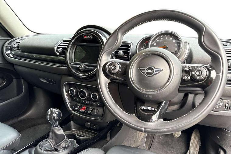 Active Guard incl speed limiting and lane departure functions with auto steering, and front collision warning with brake intervention, Automatic start/stop function with brake energy recuperation, Compatible mobile phone bluetooth with audio streaming, Digital cockpit, Electro-mechanical speed dependant steering assistance, Instrument cluster, Mini E-call, MINI TeleServices, On board computer, 6 Speed manual transmission including gear change indicator display, Double Vanos system, Fully variable valve control, High precision injection, FM tuner and DAB digital radio, Body colour fuel filler cap, Chrome line exterior, Chrome lower front grille grating, Chrome radiator grille bars, Door sill strips, Dynamic brake lights, Electric windows, Heated rear window, Heated windscreen washer jets, LED headlights with closed ring as daytime driving lights, LED rear light with union jack design, Left exhaust tailpipe with chrome finisher, Model logo, Model logo on rear doors, Rain sensor with auto headlights, Rear fog lights, Rear window wiper, Side scuttle panel with integrated indicator, Split rear doors, Sun/heat protection glass, White indicator lenses, 12V Accessory socket in centre console, 360L luggage compartment capacity, 4 lashing eyes in luggage compartment, 60/40 split folding rear seat, Chrome air vents, gear lever base and door handles, Chrome interior highlights, Cupholders, English handbook, Front and rear head restraints, Glove compartment, Height and length steering column adjustment, Interior lighting with 12 basic colours selectable via toggle switch in roof, Isofix rear child seat preparation, Leather gearshift lever and handbrake gaiters, LED reading lights, vanity mirror lights, front foot well light and spotlight on front seats, Manual air conditioning, MINI Yours fine walk nappa leather steering wheel with contrast stitching in silver and MINI Yours badge, Multifunction steering wheel, Storage compartments in doors, Sunvisors with vanity mirrors, Toolkit, Excitement pack - Clubman, Navigation pack - Clubman, 2 tone horn, 3 point seatbelts on all seats, 6 Airbags - front, side, head and seat belt tensioners, Anti-lock braking system (ABS), DSC - Dynamic Stability Control, Electronic handbrake, Front and rear disc brakes, Tyre pressure monitoring system, Alarm system with tilt sensor, monitoring doors, bonnet interior and tailgate, Auto drive away locking, Deadlocking function, Electronic vehicle immobiliser, Locking wheel bolts, Start/stop toggle with keyless go, Chrome line interior,