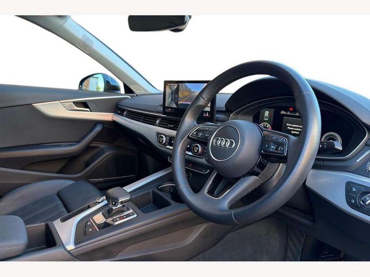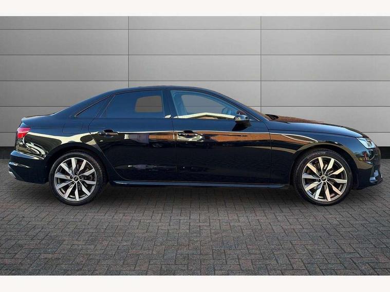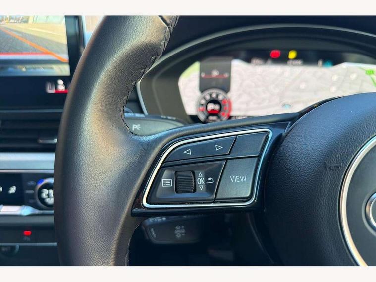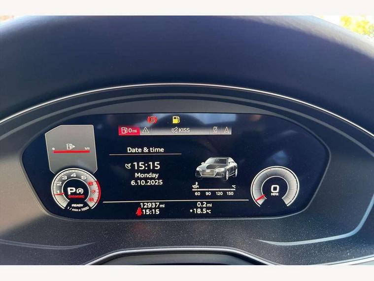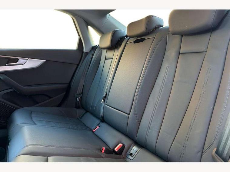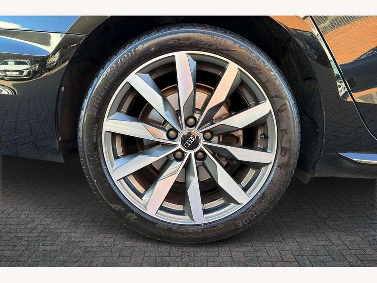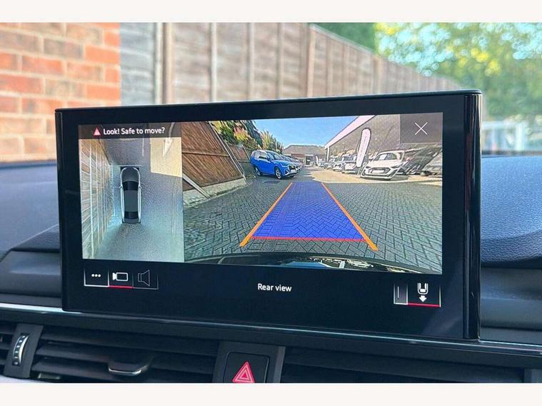 Audi connect safety and service (e-call), Audi connect with Amazon Alexa Integration, Audi drive select, Audi smartphone interface, Audi virtual cockpit, Automatic start-stop system with coasting functionality and efficiency programme, Bluetooth interface, Cruise control system with speed limiter, Electric boot lid release, Electromechanical power steering, Email, calendar and text messages displayed via MMI, MMI Navigation plus with MMI touch includes 10.1" high resolution colour MMI display, 3D map, Voice control system, 54 litre fuel tank, Comfort dynamic suspension, 2 USB charging ports, 8 passive loudspeakers, DAB digital radio reception, Auto dimming rear view mirror, Body colour door handles, Body colour side sill trim, Electrically folding auto dimming/adjustable/heated door mirrors with LED side indicators and kerb view function for passenger side, LED headlights and rear lights with LED daytime running lights, LED third brake light, Matt aluminium silver tailpipe trim, Privacy glass, Rain and light sensors, Rear boot, Rear diffuser in matt titanium black with trim strip in matt aluminium silver, Rear side wing doors, Sport front and rear bumpers with side skirts, Variable intermittent front wash/wipe, Windscreen with acoustic glazing, 3 spoke high multi-function leather sport steering wheel with paddle shift and height and reach adjustable, 4 way electric lumbar support for driver and front passenger, 40/20/40 split folding 3 rear seat bench in 3 parts with rear centre armrest, Deluxe 3 zone electronic climate control, Door sill trims with aluminium inlay, Front and rear head restraints, Front centre armrest, Heated front seats, ISOFIX child seat mounting and top tether, Manual seat adjustment, Single front passenger seat, Twin leather upholstery + front sports seats, Black styling pack - A4 Saloon Sport Edition/S4 Black edition/S4 Vorsprung, High gloss package - A4, LED Interior light pack - A4/S4, 3 rear seatbelts, 6 airbags - Driver, front passenger, curtain and side windows, Electronic Stabilisation Control (ESC) including ABS, ASR and EDL, Hill hold assist, Multi collision brake assist, Pop-up bonnet for pedestrian protection, Pre sense city, Rear door child safety locks, Seatbelt monitoring, Warning triangle and first aid kit, Anti theft alarm, Anti theft wheel bolts, Central locking, Keyless Go, Aluminium ellipse silver inlays, 18" 10 spoke dynamic design alloy wheels, Tool kit, Tyre repair kit,