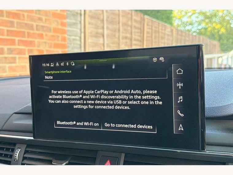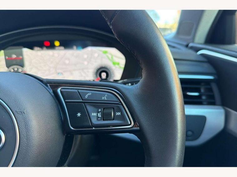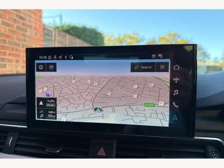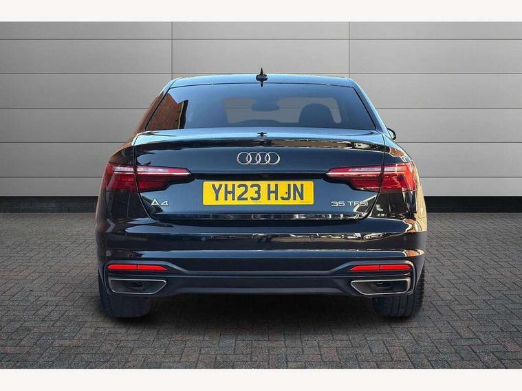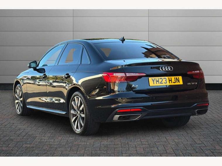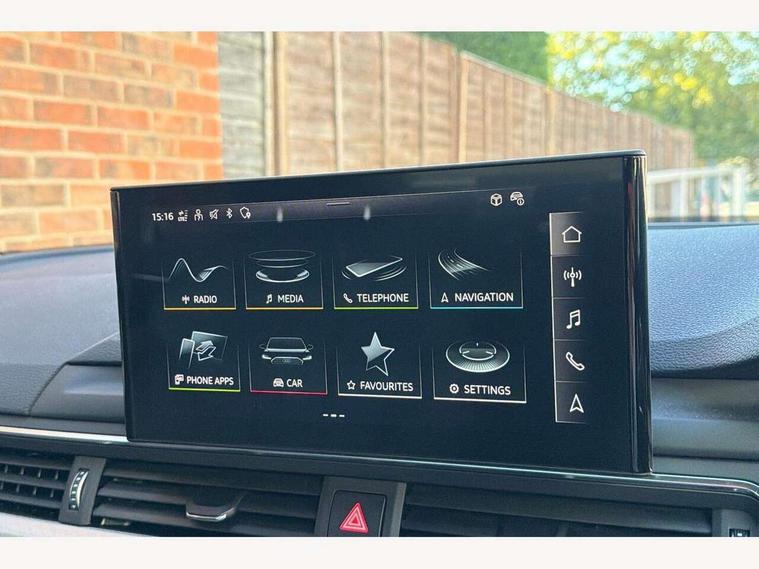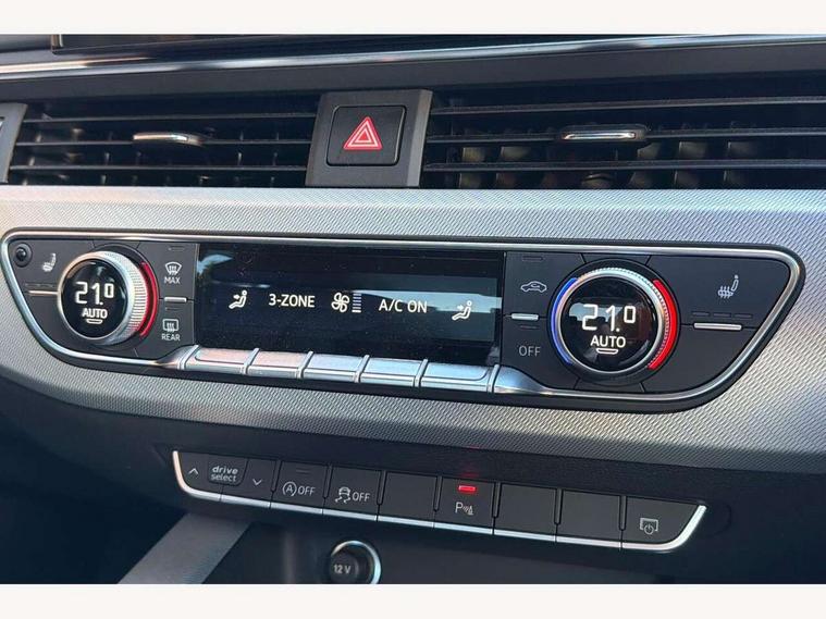 Audi connect safety and service (e-call), Audi connect with Amazon Alexa Integration, Audi drive select, Audi smartphone interface, Audi virtual cockpit, Automatic start-stop system with coasting functionality and efficiency programme, Bluetooth interface, Cruise control system with speed limiter, Electric boot lid release, Electromechanical power steering, Email, calendar and text messages displayed via MMI, MMI Navigation plus with MMI touch includes 10.1" high resolution colour MMI display, 3D map, Voice control system, 54 litre fuel tank, Comfort dynamic suspension, 2 USB charging ports, 8 passive loudspeakers, DAB digital radio reception, Auto dimming rear view mirror, Body colour door handles, Body colour side sill trim, Electrically folding auto dimming/adjustable/heated door mirrors with LED side indicators and kerb view function for passenger side, LED headlights and rear lights with LED daytime running lights, LED third brake light, Matt aluminium silver tailpipe trim, Privacy glass, Rain and light sensors, Rear boot, Rear diffuser in matt titanium black with trim strip in matt aluminium silver, Rear side wing doors, Sport front and rear bumpers with side skirts, Variable intermittent front wash/wipe, Windscreen with acoustic glazing, 3 spoke high multi-function leather sport steering wheel with paddle shift and height and reach adjustable, 4 way electric lumbar support for driver and front passenger, 40/20/40 split folding 3 rear seat bench in 3 parts with rear centre armrest, Deluxe 3 zone electronic climate control, Door sill trims with aluminium inlay, Front and rear head restraints, Front centre armrest, Heated front seats, ISOFIX child seat mounting and top tether, Manual seat adjustment, Single front passenger seat, Twin leather upholstery + front sports seats, Black styling pack - A4 Saloon Sport Edition/S4 Black edition/S4 Vorsprung, High gloss package - A4, LED Interior light pack - A4/S4, 3 rear seatbelts, 6 airbags - Driver, front passenger, curtain and side windows, Electronic Stabilisation Control (ESC) including ABS, ASR and EDL, Hill hold assist, Multi collision brake assist, Pop-up bonnet for pedestrian protection, Pre sense city, Rear door child safety locks, Seatbelt monitoring, Warning triangle and first aid kit, Anti theft alarm, Anti theft wheel bolts, Central locking, Keyless Go, Aluminium ellipse silver inlays, 18" 10 spoke dynamic design alloy wheels, Tool kit, Tyre repair kit,