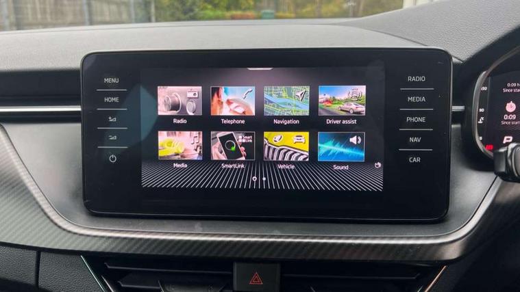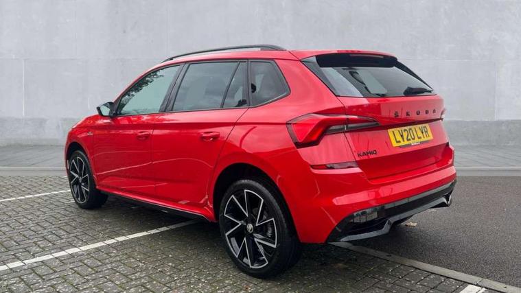 Amundsen satellite navigation with 9.2" touchscreen display, voice control, virtual cockpit and web radio, Bluetooth system, E-call, Front assist system, Lane assist, PAS, Service indicator, Speed limiter, Trip computer, Virtual cockpit, Wireless SmartLink for Apple Car Play, 2 USB - C ports with 1x adaptor cable, Auxiliary input socket, DAB Digital radio, Auto dimming rear view mirror, Black door mirrors, Black radiator grille, Black rear diffuser, Black roof rails, Body colour bumpers, Body colour roof spoiler, Boot lettering in black, Chrome grille surround, Electric folding door mirrors, Electrically adjustable and heated door mirrors, Front and rear electric windows, Front sport bumper, Full LED headlights with adaptive front light system, dynamic indicators, cornering function and fog lights, Headlight range control, Heated rear window, High functionality rear led lights with dynamic indicators, KAMIQ Door sills, Light and rain sensors, Monte carlo plaque, Panoramic glass sunroof, Privacy glass, Rear fog lights, Rear wiper, 12V Accessory socket in centre console, Aluminium pedals, Black ceiling for black/beige interior, Chrome inner door handles, Cloth upholstery, Front gesture control, Front head restraints, Glove compartment with illumination, Height adjustable passenger seat, Ice scraper, Isofix child seat fittings on outer rear seats, ISOFIX on front passenger seat, Leather gear lever, Manual lumbar support for front seats, Rake/reach adjustable steering wheel, Reading lights for driver and front passenger, Removable LED light in boot, Sports seats, Sun visor with make up mirror for front passenger, Textile floor mats, Third rear headrest, Top tether for front passenger seat, Umbrella in driver's door, 3x3 point rear seatbelts, Airbags - driver and front passenger, ESP, Front passenger airbag deactivation switch, Front side airbags with curtain airbags, Hill hold control, Manual parking brake, Rear disc brakes, Seatbelt reminder for driver an co-driver, Traction control, Two tone horn, Tyre pressure monitor, Alarm with interior monitoring, back up horn and tilt sensor with safe function and towing protection, Anti-theft wheel bolts, Immobiliser, Remote central locking with SAFE system, Chrome air vent surrounds, 18" Vega alloy wheels in black,