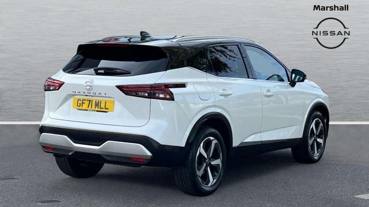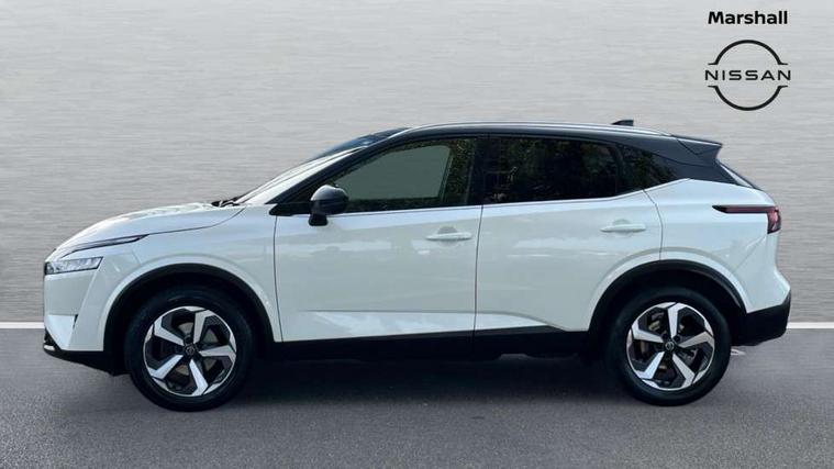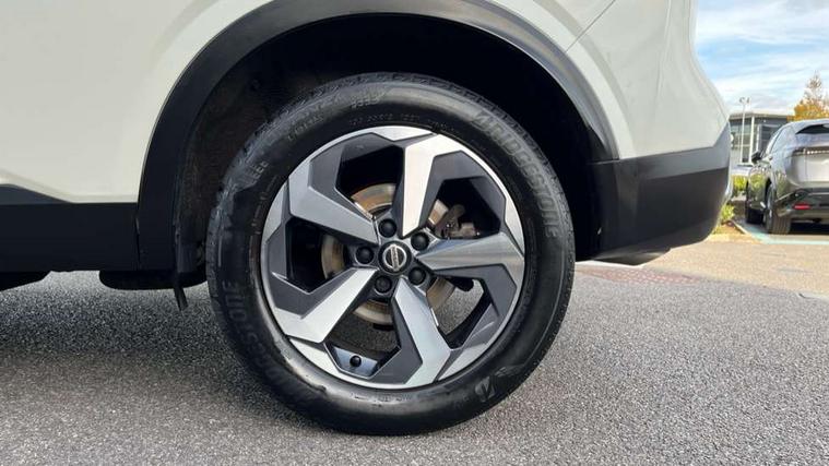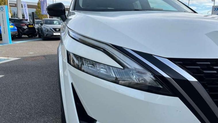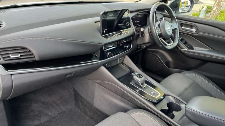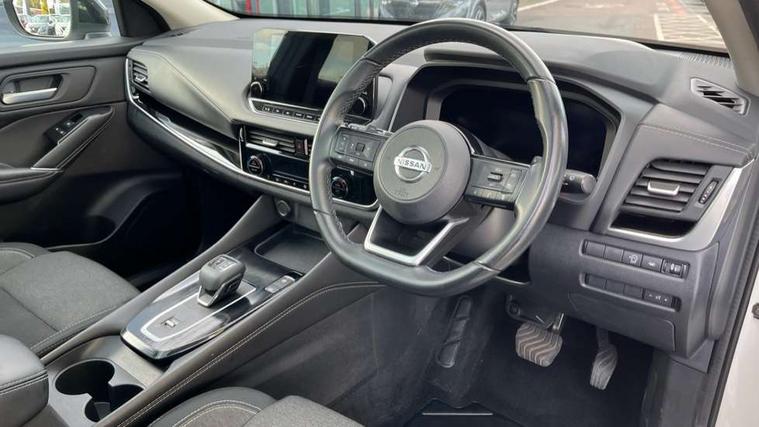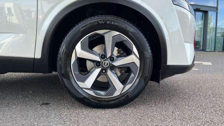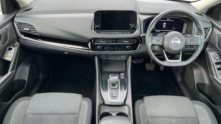 7" High definition full colour TFT screen combimeter, Blind spot warning, Drive modes (sport, normal, eco), Electric speed sensitive power steering, Emergency and breakdown call, Front and rear parking sensors, Idle stop/start system, Intelligent Cruise control (ICC), Intelligent driver alert system, Intelligent forward collision warning, Intelligent lane intervention, Lane departure prevention, Lane departure warning system, Maximum speed limiter, Moving object detection, Push button starter, Rear cross traffic alert, Traffic sign recognition with legal speed adjustment, Trip computer, 6 speakers, AM/FM audio system with DAB, Bluetooth audio streaming, Front USB connections (Type-A and Type-C), Rear USB charging only ports (Type-A and Type-C), Auto dimming rear view mirror, Auto rear wiper when reversing, Body colour mirror caps, Body coloured door handles, Bodyside mouldings, Chrome side window finisher, Electric auto folding door mirrors, Electrically adjustable and heated door mirrors with LED turn indicator, Follow me home headlights, High beam assist, Intelligent auto headlights, LED daytime running lights, LED Headlights, LED rear lights, One touch front and rear electric windows with remote opening and closing, Partially body coloured bumpers, Privacy glass, Rear reversing light (bulb lighting), Rear roof spoiler, Rear styling plate, Shark fin antenna, Splash free rain sensing wipers, Super UV and infrared cut glass, Three blink turn signal, 12v power socket in dashboard and luggage, 2 way electrical driver lumbar adjustment, 2x Rear coat hooks, 3 rear headrests, 4 grab handles, 6 Luggage hooks - 4 on floor, 2 on side, 60/40 split folding rear seat, Ambient lighting around centre console, Centre console storage tray, Chrome interior door handles, Cloth monoform upholstery, Driver and front passenger sunvisors with illuminated vanity mirrors, Driver seat back pocket, Dual zone automatic climate control with pollen filter, Front centre console and armrest, Front cupholder, Front door with bottle holders, Glovebox with light, Hard trunk cover, Height adjustable driver's seat, Height adjustable front headrests, Leather steering wheel, Luggage board system, Luggage space lighting, Manually adjustable passenger (slide recline + lifter), Multifunction steering wheel, Passenger seat back pocket, Rear armrest with 2 cupholders, Rear door bottle holders, Soft PVC kneepad, Steering wheel gearshift paddles, Steering wheel switches, Sunglasses holder, Tilt/telescopic adjustable steering wheel, Two rear isofix child seat anchorage points with top tether, Welcome light and console tray ambient lighting, Connectivity Pack - Qashqai, 3x3 point rear seatbelt pretensioners + load limiters, ABS, ESP, EBD and brake assist, Active brake limited slip, Auto hold function, Child locks on rear doors, Curtain and front side, far side airbags, Driver and passenger airbags, Driver, passenger and 2nd row rear seat belt reminder, Electronic parking brake, Front seatbelt pretensioners + load limiters, Height adjustable front seatbelts, Hill start assist, Intelligent blind spot intervention, Intelligent front emergency braking with pedestrian, cyclist recognition and junction assist, Intelligent rear automatic braking, Tyre pressure monitoring system, Vehicle dynamic control, Capless fuel filler, Engine immobiliser, Nissan i-key, Remote central door locking with deadlocking, Thatcham Cat.1 alarm, 18" Diamond cut alloy wheels,