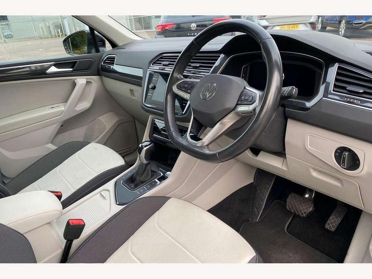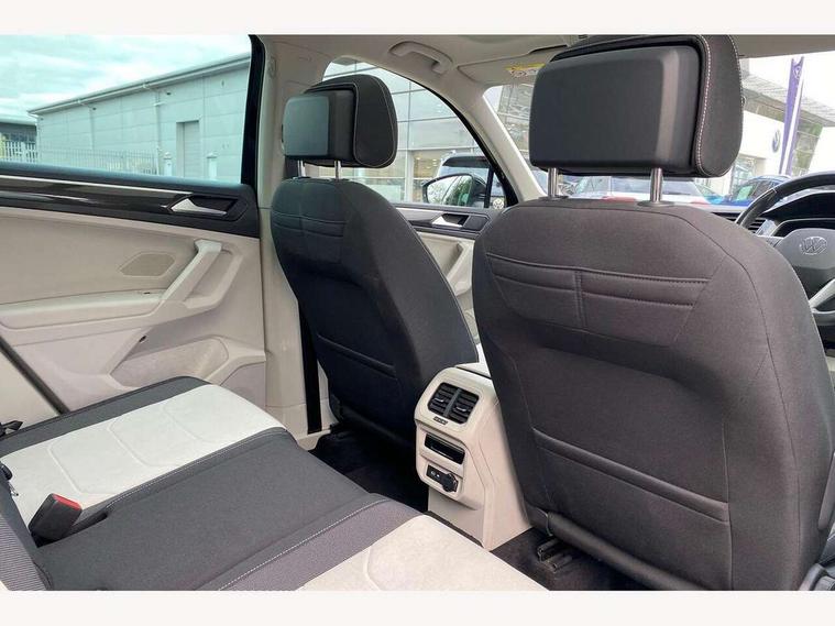 Adaptive cruise control ACC stop and go including speed limiter, App-Connect incl. App-Connect Wireless for Apple CarPlay and Android Auto, Bluetooth phone integration system, Distance control assist, Driver alert system, Driver profile selection, Dynamic road sign display, eCall emergency call system, Electromechanical speed sensitive power steering, Engine start/stop button, Lane keeping system Lane Assist, Lights on warning, Motorised electric tailgate operated via key fob, drivers door and foot movement under tailgate, Multifunction front facing camera, Outside temperature display, Premium multifunction display with multi colour display, Remote control boot opening, Rev counter, Revision / skills operating concept travel assistant, Service interval indicator, Speed limit display, Start/stop system with regenerative braking, Tailgate/trunk lid unlocking from outside, Trip computer, Warning sound and light for doors and tailgate open, Battery regeneration during braking, Diesel particulate filter, Misfuel prevention device for diesel engine, Selective Catalytic Reduction, XDS electronic differential lock for improved traction and handling, 4 X 20 watt output, 8 Speakers, Diversity antenna for FM reception, Radio, SD card slot, Simultaneous pairing of 2 compatible mobile devices, SMS functionality - read, compose and send SMS messages using touch-screen display, Title and cover art display, Aluminium door sill protectors, Auto dimming interior rear view mirror, Automatic headlight control system, Body colour door handles, Body coloured bumpers, Body coloured door mirrors with integrated indicators, Coming/leaving home lighting function, Dynamic headlight range control, Front and rear electric windows, Heated rear window, High level 3rd brake light, IQ light-Adv high beam, Dynamic light assist for LED matrix headlamp+LED separate DRL+DCL, dark red rear LED tech, Poor weather light+ cornering light, Laminated safety glass windshield, heat and sound insulating, LED rear number plate lights, Poor weather light and cornering light, Privacy glass for rear side windows and rear window, Rain sensor windscreen wipers, Rear exhaust tailpipe, Rear fog lamp, Rear side wing doors, Rear windscreen washer and wiper with interval delay, Side and rear windows in heat insulating glass, Tilting and sliding panoramic sunroof with rear panoramic sunroof, Trailer Stability Programme, Windscreen wipers/ intermittent wipe + 4 position delay, 12V outlet in center console rear and in luggage compartment, 12V outlet in front and tray, 2 cup holders in front, 2 LED front reading lights, 2 LED rear reading lights, 3 bench rear seats in 2nd row, 3 rear headrests, 4 load lashing points, 40:20:40 split folding rear seats, Air Care Climatronic 3 zone automatic climate control with enhanced air filter and controls in the rear, Backrest release for left front seat, Climate control unit rear with touch function, Door and side trim panel in foam film and woven fabric, Front centre armrest, Front footwell illumination, Front seats head restraints (x-adjustment), Height adjustable front seats, Height/reach adjust steering wheel, Instrument lighting white adjustable panel illumination, Interior light with delay, Isofix Preparation 2 Rear child seats, Leather gear knob, Lockable cooled glovebox, Luggage compartment lighting, Luggage net, Rear bench seat asymetrically split folding, longitudinally movable and folding with load-through hatch and center armrest, Remote unlocking for rear seat backrest, Removable luggage cover, Removable rear headrests, Safety optimised front head restraints, Single front passenger seat, Sliding/reclining rear seats, Standard rear seat release, Storage compartment in driver's door, Storage compartment in passenger's door, Storage compartment in rear doors, Storage compartments in luggage area left and right, Storage tray on dashboard, Sun visors with illuminated vanity mirrors, Top front comfort seats, Variable boot floor, height adjustable and removable, Easy open and close pack with safelock - Tiguan, 3 point seat belt for centre rear seats, 3 point seat belts with seat belt pretensioners for the outer rear seats, Active bonnet, Curtain airbags for front and rear passengers, Driver/Front Passenger airbags, Drivers knee airbag, Electronic parking brake with auto hold, Electronic Stability Control with driver steering recommendation, ABS, ASR, EDL, EDTC and trailer stabilization, Front assist with autonomous emergency braking (for Adaptive Cruise Control ACC up to 130 mph), Front disc brakes, Front passenger airbag deactivation, Front side airbags, Height adjustable front 3 point seatbelts + pretensioners, Hill hold control, Manual child proof rear door locks, Pedestrian monitoring system, Power assisted brakes, Proactive passenger protection system in combination with front assist, Rear disc brakes, Rigid safety cell with front and rear crumple zones, Two tone horn, Warning sound and light for front seat belts if unfastened, Anti theft alarm system with interior monitoring, backup horn and towing protection, Anti theft wheel bolts, Central locking system with safelock radio remote control and 2 remote control folding keys, Electronic engine immobiliser, Tool kit,