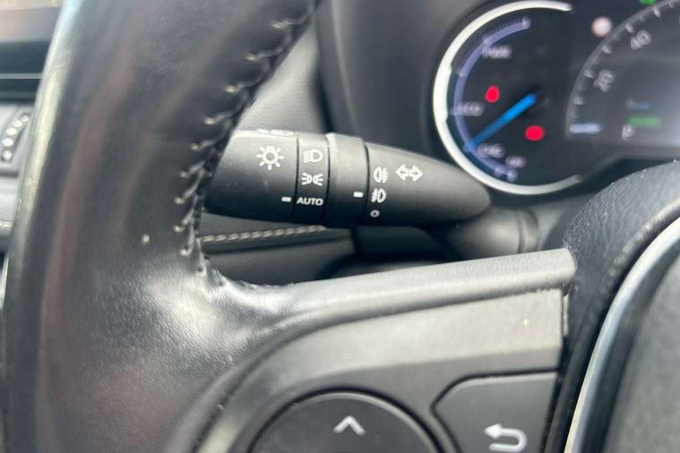 7" TFT multi information display, Analog tachometer, Apple car play and Android auto, Blind spot monitoring with rear cross traffic alert, Bluetooth system, Cyclist Detection, Drive mode selector, eCall emergency call system, ECO-driving indicator, Electric power steering, EV audible alert, Front parking sensors, Full range intelligent adaptive cruise control, Hybrid system indicator, Lane departure warning system, Lane trace assist, Lights on warning, Low screen washer fluid warning, Memory on adjustable speed limiter, My T Connected services, Night Time Pedestrian Detection, Power boot opening and closing, Push button start, Rear parking camera, Rear parking sensors, Remote boot door release in cabin, Remote boot door release in key, Road sign assist - RSA, Touch 2 Go navigation system including 3D maps and voice control, Traffic sign recognition, Trip computer, Voice control system, Vehicle Stability Control (VSC), 6 speakers, 8" Multimedia display touch screen, Auxiliary socket for external MP3 player, DAB audio, Toyota touch media system, USB connection, Adaptive automatic high beam, Automatic headlamp levelling, Automatic headlights, Automatic wipers, Automatically retractable door mirrors, Black roof rails, Body colour door handles, Body colour door mirrors, Body colour rear spoiler, Body colour roof, Body coloured bumpers, Body coloured Shark-fin antenna, Door mirror puddle lights, Dual exhaust pipes, Electric adjustable door mirrors, Electrochromatic rear view mirror, Emergency brake-light signal (EBS), Follow me home headlights, Front fog lights, Front wiper de-icer, Headlight cleaners, Heated door mirrors, LED daytime running lights, LED High mounted stop lamp, LED rear combination lights, Meshed upper front grille, Power front windows, Power rear windows, Privacy glass, Projector LED headlights, Rear screen wiper - intermittent, Rear windscreen defogger, Silver front under-run, Silver rear under-run, Trailer sway control, Turning signal integrated indicators in door mirrors, 3 rear headrests, 60/40 split fold rear seat back, Boot light, Clean air filter, Driver and front passenger personal light, Driver and front passenger Whiplash Injury Lessening seats, Driver and passenger sunvisors with illuminated vanity mirrors, Driver seat memory function, Dual sided deck board in boot, Dual zone automatic air conditioning, Floor mats, Folding rear centre armrest, Front and rear bottle holders, Front centre armrest, Front footwell lights, Front headrests, Front seat and rear pockets, Front/rear roof mounted assist grips, Grey roof lining, Heated driver and front passenger seats, Heated steering wheel, Illuminated entry system, Isofix child seat preparation, Leather gear shift with chrome surround, Leather upholstery, Light blue ambient lighting on front cupholders and open tray, Manual telescopic and tilt 3-spoke leather steering wheel with Chrome insert, Manually reclining and sliding front passenger seat, Multimedia switches on steering wheel, Pollen filter, Power height-adjustable sliding reclining and lumbar support for driver seat, Rear coat hooks, Rear door armrests, Rear passenger air vents, Rear view display in display audio screen with dynamic guide lines, Reclining rear seats, Satin chrome interior door handles, Sunglasses holder, Telephone and voice recognition switches on steering wheel, 3x3 point rear seatbelts, ABS/EBD, Acoustic vehicle alerting system, Adjustable front driver and passenger seat belt extender, Brake assist function, Brake hold function, Child proof door locks, Collision mitigation braking system, Driver/Front Passenger airbags, Driver/front passenger side airbags, Drivers knee airbag, Electronic parking brake, Electronic Stability Programme (ESP), Front and rear curtain airbags, Front and rear seatbelt reminder, Front passenger airbag detector, Hill start assist, Passenger airbag cut-off device, Pedestrian detection, Pre collision system, Seatbelt pretensioners with load limiters, Toyota safety sense, Traction control, Tyre pressure warning, Glass-breaking alarm sensors, Immobiliser, Intrusion alarm, Light - on and Key in reminder, Motion sensor alarm, Remote central locking, Smart entry + Smart start, Speed sensitive auto door locking, Tilt detection sensors, Piano black centre console with silver insert, Soft-touch black lower dashboard, Soft-touch black upper dashboard with silver insert, 19" 5 spoke silver alloy wheels, Tyre repair kit,