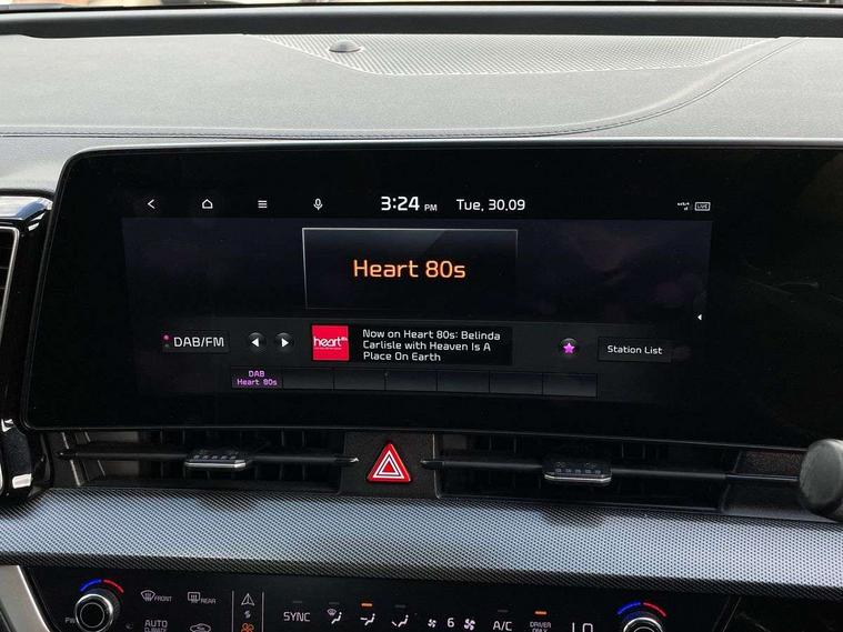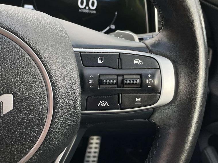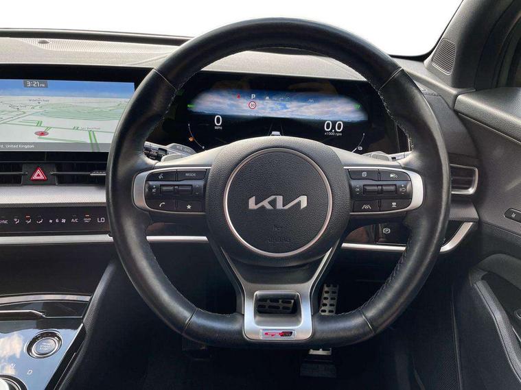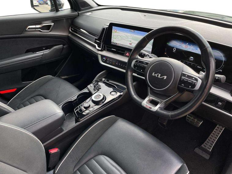 12.3" Display with navigation, 12.3" supervision colour cluster display, 360 degree around view monitor, Apple car play/Android Auto with voice control, Blind spot collision avoidance assist, Blind spot view monitor, Drive mode selector, E-call, Forward collision avoidance assist (FCA) - city/pedestrian/cyclist/junction covering, Front and rear parking sensors, Highway Driving Assist (HDA), Intelligent speed limit assist, Kia Connect (UVO), Lane Following Assist (LFA), Lane keep assist, Low washer fluid warning, Parking collision avoidance assist (PCA), Remote smart parking assist, Reversing camera system integrated into centre fascia screen, Smart cruise control with stop and go functionality, Smart power tailgate, Speed sensitive power steering, Trip computer, Windscreen washer level indicator, Wireless Smartphone charger, Intelligent Stop and Go, Bluetooth audio streaming, DAB Radio with MP3, Harman Kardon premium sound system, Rear USB port, Steering wheel mounted audio controls, USB C type charging ports on centre console, USB C type charging ports on side of front seats, USB port for connection of a media device, All round electric windows with drivers and front passenger auto up/down function, Automatic headlight control system, Automatic window defogger, Backlite glass heated with timer, Body colour and black bumper with silver accents, Body colour exterior door handles, Body colour radiator upper garnish and door garnish, Dual LED adaptive headlamps, Electric panoramic glass sunroof (Electric one touch with safety function), Electrically adjustable/heated/folding door mirrors with LED indicators, Front and rear chrome skid plates, Gloss black door mirrors, Gloss black radiator grille, Gloss black side sill and wheel arch body mouldings, Glossy black roof rack, High beam assist, Interior electrochromic mirror, LED daytime running lights, LED front fog lamps, LED High mounted stop light, LED rear combination lamp, Rain sensing wipers with aero blades, Rear fog lamp, Rear privacy glass, Rear side wing doors, Rear spoiler, Rear wiper, Satin finished beltline, Trailer stability assist, 10 way driver/8 way passenger electrically power adjustable seats, 12V power socket in front centre fascia and luggage compartment, 3 seat bench in 2nd row, 3 x passenger assist grips, 40/20/40 split folding rear seat, All-round height adjustable headrests, Ambient lighting, Black headlining, Centre console storage box, Cupholders in rear armrest, D-Shaped sports leather steering wheel and perforated inserts with GT-Line logo, Door courtesy lamps, Drink holder at centre armrest, Driver and front passenger side sunvisors with illuminated vanity mirrors, Driver seat memory function, Drivers seat power lumbar support, Front and rear door storage, Front seat and rear pockets, Front/rear centre armrests, Gear shift indicator, Glovebox illumination, Heated front and outer rear seats, Heated steering wheel, Interior door lock/unlock function, ISOFIX Child seat top tethers and anchor fixings outer rear seats, LED interior personal lamp, LED lighting in overhead console, Luggage area LED light, Luggage area load cover, Luggage net with hooks, Metal paint interior door handles, Paddle shift controls, Rear coat hooks, Single front passenger seat, Sports pedals, Suede leather upholstery, Three zone climate control, Tilt/telescopic adjustable steering wheel, Ventilated front seats, Ventilation ducts to rear compartment, Active front headrests, All round 3-point seatbelts, Anti-lock braking system (ABS), Dual front side airbags, Dual horn, Electronic parking brake, Electronic stability control with downhill brake control, Front passenger airbag cut-off switch, Front seatbelt pretensioners + load limiters, Height adjustable front seatbelts, Hill start assist control (HAC), Impact sensing auto door unlocking, Multi collision brake assist, Rear door child safety locks, Rear seat alert system, Traction control, Twin curtain airbags, Twin front airbags, Tyre pressure monitoring system, Advanced anti-theft system including immobiliser and alarm, Door deadlocks, Engine Start/Stop Button with Smart Entry System, Locking wheel nuts, Speed sensitive auto door locking, Visible vehicle identification number, Aluminium pattern finish centre fascia and door garnish, 18" Alloy wheels, Michelin tyres, Tyre mobility kit,
