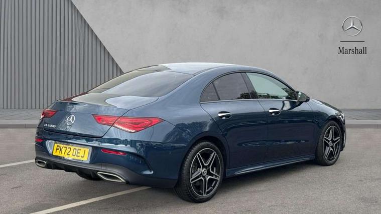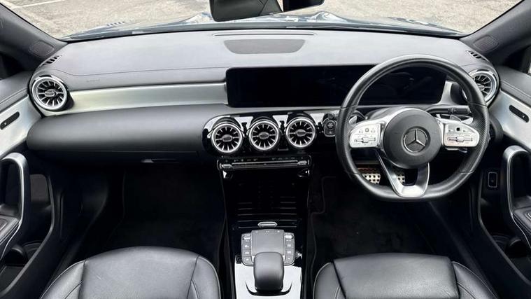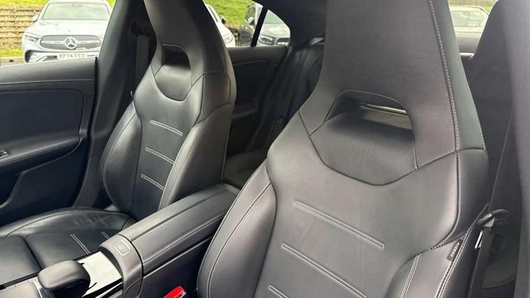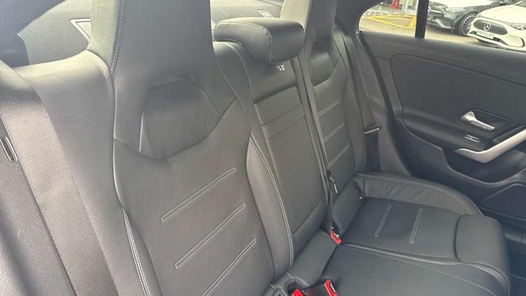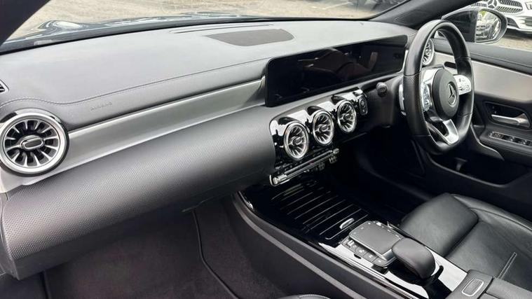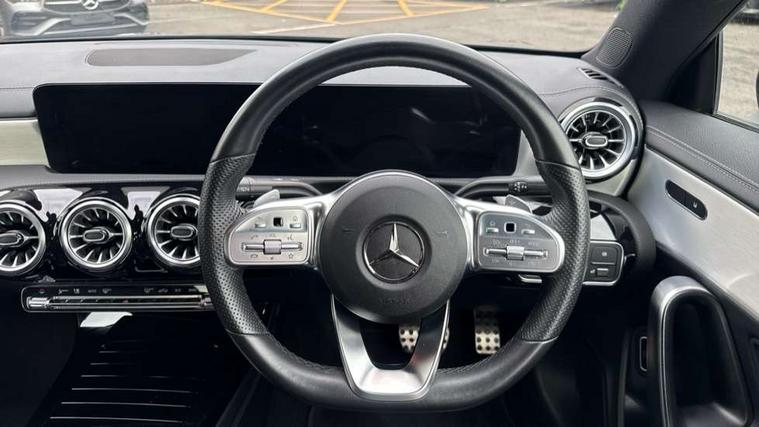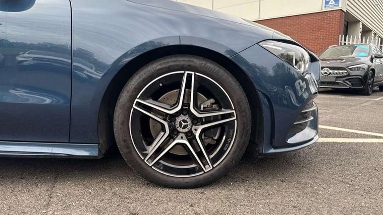 10.25 inch Instrument display with digital cockpit, 10.25 inch touchscreen central media display, Active lane keeping assist, Attention assist - Monitors steering behaviour and long journey fatigue, Bluetooth connection, Car wash mode, Cruise control with limiter, Direct steer system with speed sensitive power steering, DYNAMIC SELECT with a choice of driving modes (ECO, Comfort, Sport and Individual), ECO start/stop function, Fluid level warning indicator for fuel, oil, coolant and washer fluid, Hard-disk navigation, Hey Mercedes Voice activation, Lamp failure indicator, Mercedes me connect including emergency call system, accident recovery, breakdown and maintenance management, Mercedes me remote services, Outside temperature gauge, Owners manual and service booklet in English, Pre-installation of private car share, Preinstallation for Mercedes Benz link, Radio aerial integrated into front and rear windshields, Service indicator (ASSYST), Smartphone integration with Apple CarPlay and Android auto, Speed limit assist, Trip computer in multifunction display with current consumption indicator, Lowered comfort suspension, Rear axle multi-link, DAB digital radio tuner, MBUX multimedia system, Mid-range sound system, USB (type C) ports (2) in stowage compartment and 1 in front of centre console, Adaptive brake lights, AMG body styling with AMG front apron and rear apron and visible exhaust tailpipe in chrome trim elements, AMG bodystyling side skirts, Body colour bumpers, Body colour door handles, Chrome beltline strips, Diamond radiator grille pins in chrome, Electric windows, Electrically adjustable and heated door mirrors with integrated LED indicators, Exhaust system with 2 Visible tailpipe trim elements and rear apron with trim in chrome, Headlamp assist automatic headlamp activation, Heated glass rear windscreen + timer control, High level LED third brake light, Interior mirror with black reading lamps and frameless, LED high performance headlamps with integrated LED daytime running lights, LED tail lamp, Privacy glass with dark tinting on rear side windows and rear window, Rain sensing windscreen wipers with two sensitivity settings, Rear boot, Rear fog lamp, Rear side wing doors, Variable front intermittent wipers, Window line trim strip in chrome, 3 seat bench in 2nd row, 3 spoke flattened bottom nappa leather multifunction steering wheel with perforated leather in grip area, 40:20:40 split folding rear seat backrests, Air conditioning - Two zone thermotronic luxury automatic climate control with display, Air vents with surround in silver chrome, Artico man-made leather upholstery, Automatic child seat recognition sensor, Black roof lining, Brushed stainless steel sports pedals with rubber studs, Floor mats with stitched AMG lettering, Front centre armrest with stowage, Galvanished gear shift paddles on steering wheel, Heated front seats, Illuminated front door sills with changeable cover, Illuminated glove compartment stowage, Interior lighting - 64 colour Ambient lighting, Luggage net on driver/front passenger seat backrest, Manually adjustable front seats, Manually height and reach adjustable steering column, Rear armrest with two integral cup holders for drinks, Rear head restraints, Single front passenger seat, Sport seats with fixed head restraints, Stowage compartment in centre console with retractable cover, Sunvisors with illuminated vanity mirrors, Touchpad on center console, Twin front cupholders, Two outer rear seat isofix and top tether child seat fixing points, Keyless go comfort pack - CLA, Light and sight pack - CLA, Mirror pack - CLA, Night package - CLA, Parking package - CLA, Seat comfort pack - CLA, Active bonnet pedestrain safety measure which detects an impact and raises bonnet by 65mm, Active brake assist includes forward collision warning system with autonomous braking, Adaptive brake assist with hold function and hill start assist, Anti lock braking system (ABS) with brake assist, Black seat belts, Bonnet with power domes, Brake pad wear warning indicator, Childproof locks manually operated for rear doors and electrically operated for rear power windows, Crash responsive emergency lighting, Driver and front passenger head and sidebags, Driver and front passenger windowbags, Drivers knee airbag, Dual stage driver and front passenger airbags, Electric parking brake, Electronic stability programme with acceleration skid control, ESP curve dynamic assist, Front and rear seatbelt reminder, Front passenger seat occupancy sensor, Three point rear seat belts, Tyre pressure monitoring system, Warning triangle and first aid kit, Guard 360 degree guard vehicle protection system with immobiliser and interior protection, Remote central locking and crash sensor with emergency opening function, Light aluminium with longitudinal grain interior trim, 18" AMG 5 twin spoke light alloy wheels painted in black with high sheen finish, Summer tyres, Tirefit tyre sealant kit,