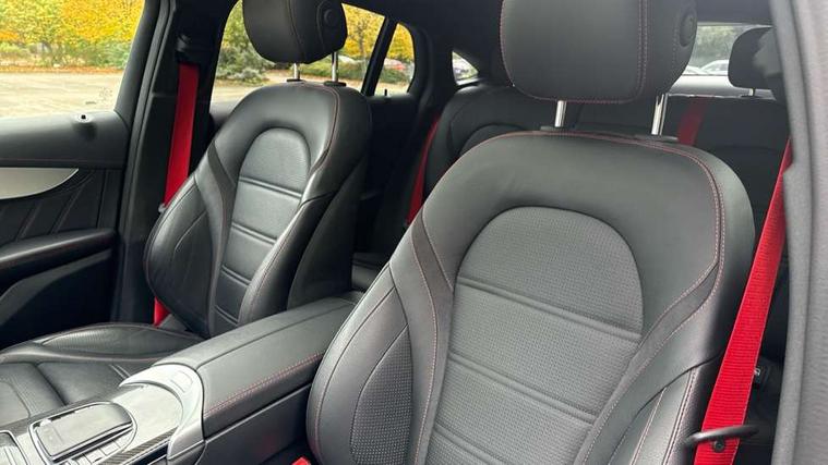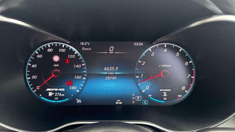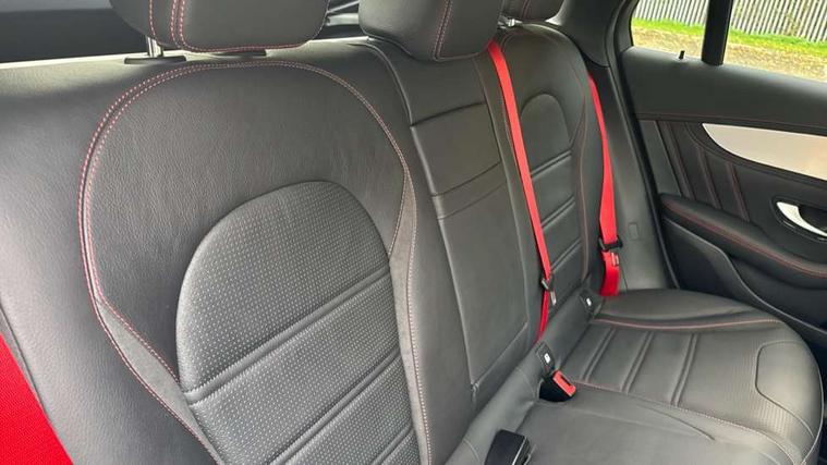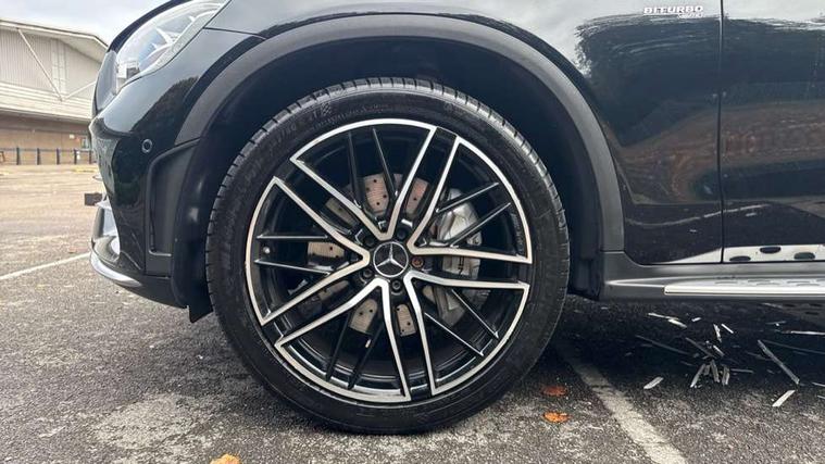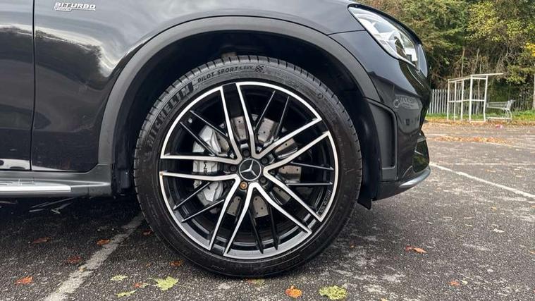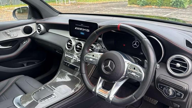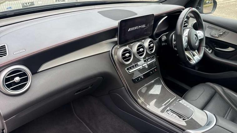 360 degree camera, Active parking assist with parktronic system, Attention assist, Bluetooth interface for hands free telephone, Collision prevention assist plus, Cruise control with speedtronic variable speed limiter, Direct steer speed sensitive steering, DYNAMIC SELECT with a choice of driving modes (ECO, Comfort, Sport, Sport+ and Individual), Easy pack automatic powered tailgate, eCall emergency call system, ECO start/stop function, Hard disk navigation, Hey Mercedes Voice activation, Instrument cluster with12.3-inch digital instrument cluster display. High resolution instrument cluster screen with choice of three display styles, MBUX Interior assistant, Mercedes connect me with remote online services, Multi function trip computer, Outside temperature display, rear seatbelt status indicator, Remote boot release, Service indicator (ASSYST), Smartphone integration with Apple CarPlay and Android auto, Traffic sign assist, 66 litre fuel tank, AMG electronic rear axle limited slip differential lock, AMG performance 4MATIC+, AMG ride control air suspension for front and rear axles with continuously adjustable damping, AMG SPEEDSHIFT TCT 9G 9-speed automatic transmission with steering column gear selector, DIRECT SELECT steering wheel gearshift paddles, Petrol Particulate Filter (PPF), Advanced sound system, MBUX multimedia system with DAB digital radio and touchpad, Media display 10.25-inch touchscreen display, Pre installation for Mercedes Benz Link, USB ports x 2 in centre console, Adaptive brake lights, Adaptive high beam assist, AMG bodystyling front apron in jet wing design with silver chrome front splitter, AMG bodystyling with 2 black louvres in outer air intakes, AMG bodystyling with rear apron and diffuser fins, AMG bodystyling with side sill panels, AMG Performance exhaust, AMG radiator grille with black vertical louvres and trim strip in high gloss chrome, AMG spoiler lip, Body colour door mirrors, Body coloured bumpers, Electric sliding glass sunroof, Electric windows one touch open/close, Electrically adjustable and heated door mirrors, Front, side and rear exterior chrome trim, Headlamp assist automatic headlamp activation, High level LED brake light, LED high performance headlamps with integrated LED daytime running lights, LED tail lamp, Motor way mode function and locator lighting, Privacy glass with dark glass from B pillar backwards, Rain sensor windscreen wipers, Range adjustable headlights, Rear side wing doors, Rear wiper, Roof spoiler, Running boards, Tinted glass all round with single layer safety glass, Tinted rear windows, Two chrome plated tailpipe trim elements, Variable front intermittent wipers, 2 way rear head restraints, 3 seat bench in 2nd row, 40:20:40 split folding rear seats, Ambient lighting, AMG floor mats with edging and embroidered AMG lettering, AMG illuminated door sills, AMG sports seats, Artico man-made leather upper dashboard with contrast topstitching, Automatic child seat recognition sensor, Black roof lining, Dividing net - rear, Double cup holder in centre console, Easy-pack removable load compartment cover, Electric height/reach adjustable steering column, Flat bottomed multifunction sports steering wheel in black nappa leather, embossed in central grip, with silver chrome steering with red topstitching, Front armrest with storage box, Front door sills with Mercedes Benz lettering, Front head restraints, Front passenger seat, Heated front seats, Heated steering wheel, Illuminated and lockable glove compartment, Leather upholstery, Rear top tether child seat ISOFIX attachment, Sports pedals with stainless steel surfaces and rubber studs, Steering wheel with touch control buttons, THERMOTRONIC 3 zone automatic climate control, Interior lighting pack - GLC, Memory pack - GLC, Mirror pack - GLC, Storage pack - GLC, 3 rear 3 point seatbelts, Active bonnet, Adaptive brake system with HOLD function and brake drying in the wet, ASR, Brake calipers with Mercedes-Benz lettering + perforated brake discs, Child proof door locks, Dual-stage airbags - driver and front passenger, driver knee bag and window bags for driver, front passenger and rear passengers, Electronic parking brake, Electronic stability programme (ESP) with curve dynamic assist and cross wind assist, Front and rear seatbelt reminder, Front passenger seat occupancy sensor, Hill hold function, MANUFAKTUR seat belts in red, Tyre pressure monitoring system, Warning triangle and first aid kit, Alarm system/interior protection/immobiliser, Automatic door locking, Keyless Go entry and starting function, Remote central locking, AMG carbon-fibre with light longitudinal grain aluminium trim, 21" AMG 5 twin spoke design alloy wheels painted in black with high sheen finish, Summer tyres, Tirefit tyre sealant kit,