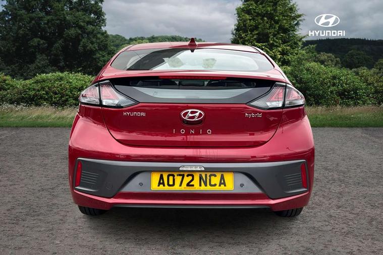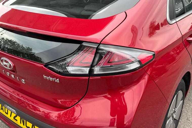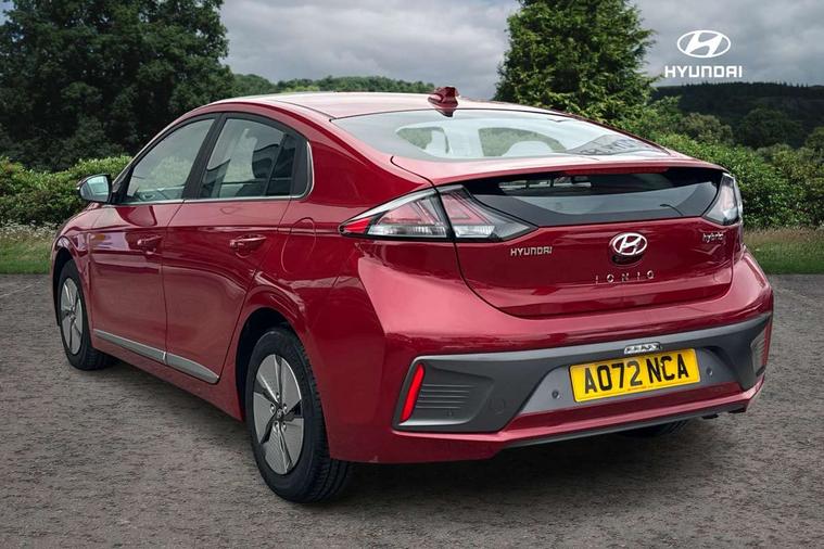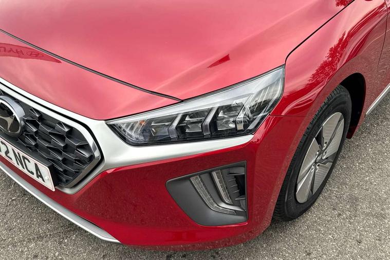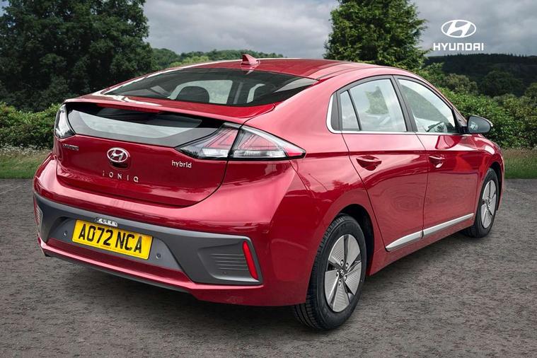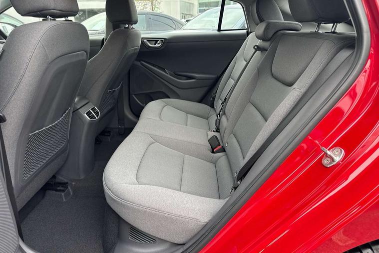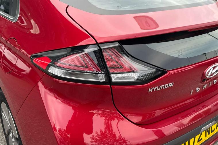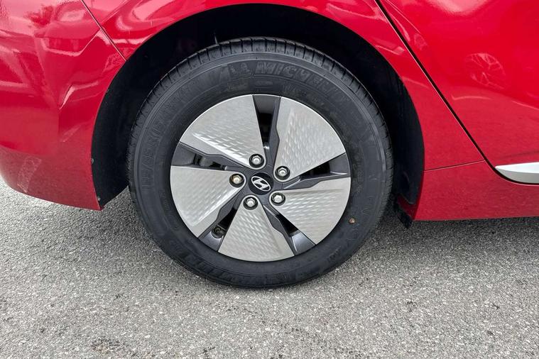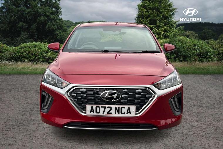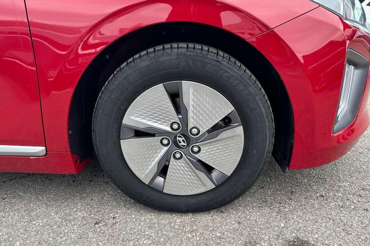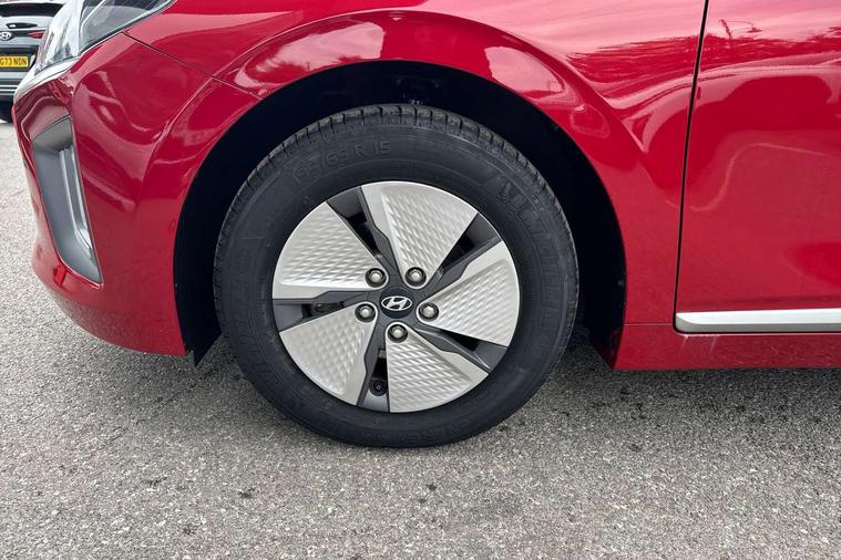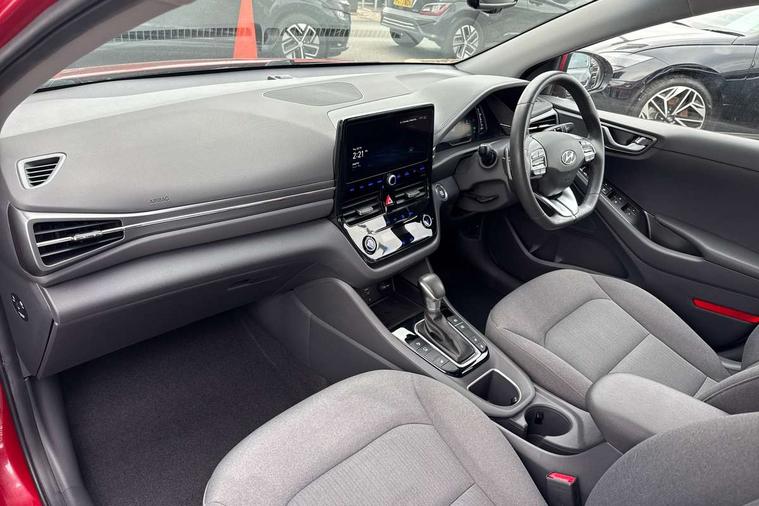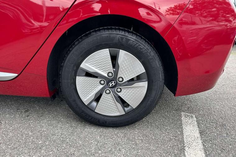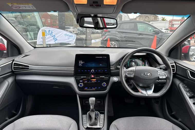 10.25" touchscreen satellite navigation includes traffic messaging channel, mapcare, live services and bluelink, Apple car play/Android Auto, Bluetooth system, Cruise control, Driver attention alert system, E-call, Eco driving assistant system (ECO DAS), Electric power steering with variable drive modes, Gear lever drive mode selector, Lane departure warning system with lane keep assist - LKAS, Parking Brake - Foot Brake, Parking system with rear camera and guidance system, Rear parking sensor, Rear view monitor, Roadside assistance, Supervision cluster with 7" high resolution TFT LCD, Voice recognition, Windscreen washer fluid sensor and warning indicator, Wireless phone charging pad, DAB Digital radio, Infinity sound system includes 1 centre, 2 tweeters, 2 front, 2 rear and 1 ext amp, Radio data system, Steering wheel audio, phone and cruise controls, USB and aux connection in front, Active air flap radiator grille, Auto dimming rear view mirror, Automatic headlights with dusk sensor, Body colour bumpers, Body colour door handles with chrome inserts, Body colour door mirrors, Bodyside mouldings, Chrome door scuff with ioniq logo, Chrome finish window surround, Chrome radiator grille, Door mirror puddle lights, Electric adjustable door mirrors, Electric front windows - anti trap + one touch, Electric heated door mirrors, Heated rear windscreen, High beam assist, LED daytime running lights, LED Headlights, LED indicators in door mirrors, LED rear fog light, Positioning Lights - LED, Power folding door mirrors, Rain sensor, Rear electric windows, Rear LED lights, Rear roof spoiler with integrated LED brake light, Rear side wing doors, Rear wiper, Solar glass with windscreen shade band, Tinted windows, Two tone rear bumper, Variable front intermittent wipers, 12V power outlets, 3 rear seats, 60/40 split folding rear seat, Centre console storage, Centre interior light, Chrome interior door handles, Cloth upholstery, Driver seat height adjust, Driver's electric adjustable lumbar support, Driver/passenger sunvisors with illuminated vanity mirrors, Dual zone climate control, Front centre armrest with storage compartment, Front cupholder, Front head restraints with vertical and horizontal adjustment, Front seat and rear pockets, Heated front seats, Heated steering wheel, Illuminated luggage compartment, Interior mood lighting, Leather wrapped steering wheel, Luggage net, Manual height adjustable front passenger seat, Map and reading lights, Paddle shifter, Rear centre console with air vents, Single front passenger seat, Sunglasses holder, USB - driver arm rest (charging only), Vertical adjustment rear head restraints, 3x3 point rear seatbelts, Airbags - front, front side, curtain and drivers knee airbags, Anti-lock brake system (ABS), Autonomous emergency braking, Electronic stability control, Front passenger airbag deactivation switch, Hill start assist control (HAC), Manual child lock in rear doors, Regenerative braking system, Traction control, Tyre pressure monitoring system with individual tyre pressure display, Deadlocks, Immobiliser, Keyless smart entry with push button start, Remote central locking, 15" Design B alloy wheels, Tyre repair kit,