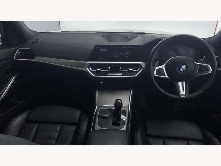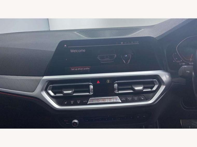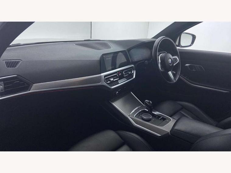 Active guard plus, Attentiveness assist, Auto start-stop, BMW ConnectedDrive online services, BMW iDrive controller on centre console, BMW Live Cockpit Professional sat nav system including 10.25" high resolution display and Intelligent Voice Assistant, BMW service history, BMW Teleservices, Brake pad wear indicator in front and rear, Check Control warning system for monitoring of lights and door/luggage compartment open warning, Condition based service, Electric power steering with Servotronic steering optimised at all speed ranges, Instrument cluster with speedometer with mph readout, tachometer, fuel gauge and oil temperature gauge, Integrated owners handbook, Oil sensor for level and grade, warning by check control system, On board computer - average speed+fuel consumption, service interval, clock/date, odometer/trip meter, outside temperature display and ice warning, Optimum shift indicator, Personal Profile - automatic lock when driving away selectable, Variable sport steering, Balanced 50/50 weight distribution, Battery cut-out switch, Drive performance control - ECO PRO, comfort and sport modes, Larger capacity fuel tank, M sport suspension, Petrol Particulate Filter, Sport automatic transmission with steering-wheel mounted gearshift paddles and launch control, Stroke dependent dampers, DAB tuner, Electronic service booklet, Acoustic glazing, Active airstream chrome frame kidney grille with 8 high gloss black vertical slats, Automatic headlight beam throw control with load dependent regulating reaction, dynamic compensation of braking dive and acceleration squat, Black roof mouldings, Body colour - fuel filler flap, front and rear bumpers, door handles and mirror caps with integrated turn indicator + bottom segment in matt black, Dynamic brake lights, Electric windows - front and rear, with open/close fingertip control, anti-trap facility and comfort closing, Exhaust tailpipe - split left and right, Extended LED headlights, Exterior mirrors - electrically folding with anti-dazzle, Fading support, Front and rear bumper system with replaceable deformation elements, Front black door sill finishers with BMW designation, Green tinted heat protection glazing, High gloss shadow line exterior trim, Interior rear view electrochromatic mirror with automatic anti dazzle function, LED front fog lights, Lightweight engineering, M designation on front side panels, left and right, Matt black exterior B pillar, Model designation on right side of tailgate, Rain sensor with automatic headlight activation, Rear wiper, Shark fin antenna, Two part LED tailights in L-shape with components in smoked glass, brake light, LED turn indicator and rear fog light, Visible VIN plate, Welcome lights in interior and door handle area, Windscreen wipers with integrated washing jets, 12V power socket in front storage compartment, 2 front cupholder in centre console with clamping elements and matt black inlay, 3 rear seats with non folding headrests with 3 point seat belts, 3 zone automatic air conditioning, 4 pieces lashing eyelets in luggage compartment, 40:20:40 split folding rear seat with loading system, Ambient lighting with welcome carpet light, Anthracite headlining, Armrest integrated in front and rear door trim + front centre console armrest, Centred top Luggage compartment lights, Four grab handles integrated in roof lining, Front and rear door exit lighting (left / right), Front and rear door pockets, Front and rear reading lights, Front and rear velour floor mats, Front head restraints, Front sport seats, Heated driver and front passenger seats, Height adjustable mechanically and infinitely variable steering column, Illuminated armrest storage compartment, Illuminated glove compartment with separate small compartment, Interior lighting - front centre over interior mirror with soft light, rear centre and front and rear footwell lighting, M Sport multifunction leather steering wheel, Make-up mirror lights, Rear centre armrest with 2 cupholders, Rear centre console with storage compartment and ventilation grille, Sunvisors with vanity mirrors and ticket pocket, Toolkit located in luggage compartment, Connected pack professional - 3 Series Saloon/Touring, M Aerodynamics pack - 3 Series Saloon/Touring, 2 tone horn, BMW emergency call, Brake energy regeneration, Braking pre-tensioning, Child proof locking system in rear door, Child seat ISOFIX attachment rear outer seats, Coasting in idle in ECO PRO mode, Crash sensor activating of airbags, Unlocking doors, hazard warning lights, fuel cut off, interior lighting+activation of safety battery terminal clamp, Driver and front passenger side airbags, integrated in the door side seat backrest bolsters for all seat variants, Driver/Front Passenger airbags, Dry braking, Dynamic brake control, Dynamic stability control + (DSC+) - Anti-lock Braking System (ABS) with brake assist and cornering brake control + Automatic Stability Control (ASC), Dynamic Traction Control - DTC, Electric parking brake including automatic hold function and automatic release of the parking brake when driving off, Electronic differential lock control (EDLC), Front passenger manual airbag deactivation, Head airbags for all 4 outer seats, Hill start assist, Seat belt security check for driver and front passenger, Side impact protection, Three 3 point seat belts on all seats including front belt stopper, pyrotechnic belt tensioners and belt force limiters, Tyre pressure monitoring with three level warning strategy, Ventilated front and rear disc brakes, Warning triangle and first aid kit, Alarm system (Thatcham 1) with remote control and electronic engine immobiliser, Central locking switch for all doors, fuel filler cap and luggage compartment, Remote control with integrated key one button open/close vehicle and windows, sole opening of the luggage compartment lid and panic mode, Start/stop button with Comfort Go keyless engine start and auto Start/stop deactivation button, Vehicle key with M sp