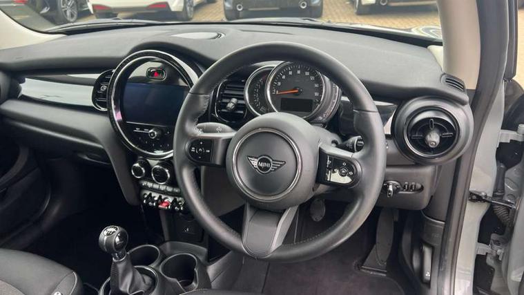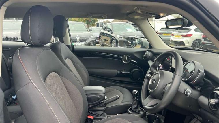 Automatic start/stop function with brake energy recuperation, Compatible mobile phone bluetooth with audio streaming, Cruise control with brake assist, Electro-mechanical speed dependant steering assistance, Flexible car sharing preparation, Instrument cluster, Mini E-call, MINI TeleServices, On board computer, Service interval indicator, 6 Speed manual transmission including gear change indicator display, Double Vanos system, Fully variable valve control, High precision injection, Performance Control, 4 speakers in front door trims and underneath front seats, 8.8" touchscreen with LED ring, FM tuner and DAB digital radio, Automatic headlight activation switch, Body colour fuel filler cap, Body colour roof and mirror caps, Chrome border high gloss black slats radiator grille, Dynamic brake lights, Electric front windows, Exhaust tailpipe, Heated rear window, Heated windscreen washer jets, LED headlight with closed ring and daytime driving lights, Metal door sill strips with MINI imprint, Rain sensor window wipers, Rear fog lights, Rear LED lights with union jack design, Rear window wiper, Side scuttle panel with integrated indicator, Sun/heat protection glass, White indicator lenses, 12V Accessory socket in centre console, 4 lashing eyes in luggage compartment, 60/40 split folding rear seat, Ambient lighting, Carbon black colour line - Knee roll and door armrest, Chrome interior highlights, Cupholders, Front and rear head restraints, Front and rear isofix with front passenger airbag deactivation, Glove compartment, Height and length steering column adjustment, Interior lighting with 12 different colours across the dashboard, underneath door bezel with illuminated laser-engraved design on central display, Leatherette gearshift lever and handbrake gaiters, LED reading lights, vanity mirror lights, front foot well light and spotlight on front seats, Manual air conditioning, Mechanical seat adjustment - forward/back & backrest for front seats and driver seat height adjust, Multifunction steering wheel, Passenger seat height adjuster, Satellite grey headlining including grab handles and clothes hooks, Sport leather steering wheel with speed limiter and audio/communication controls, Storage compartments in doors, Sunvisors with vanity mirrors, Velour floor mats, 3 point seatbelts on all four seats, 6 Airbags - front, side, head and seat belt tensioners, Anti-lock braking system (ABS), DSC - Dynamic Stability Control, Front and rear disc brakes, Single tone fanfare horn, Tyre pressure monitoring system, Alarm system with tilt sensor, monitoring doors, bonnet interior and tailgate, Electronic vehicle immobiliser, Start/stop toggle with keyless go, Piano black interior trim, Tool kit, Tyre repair kit,