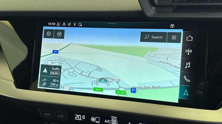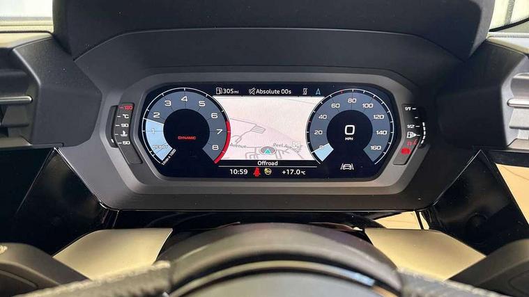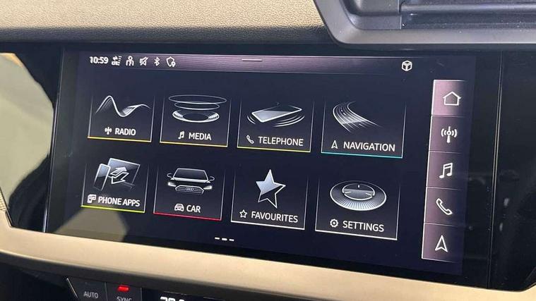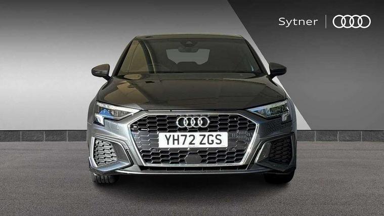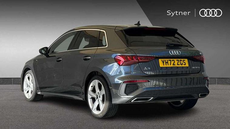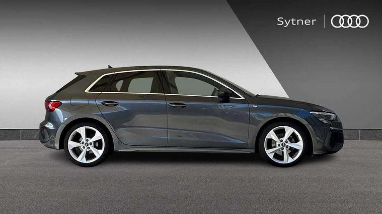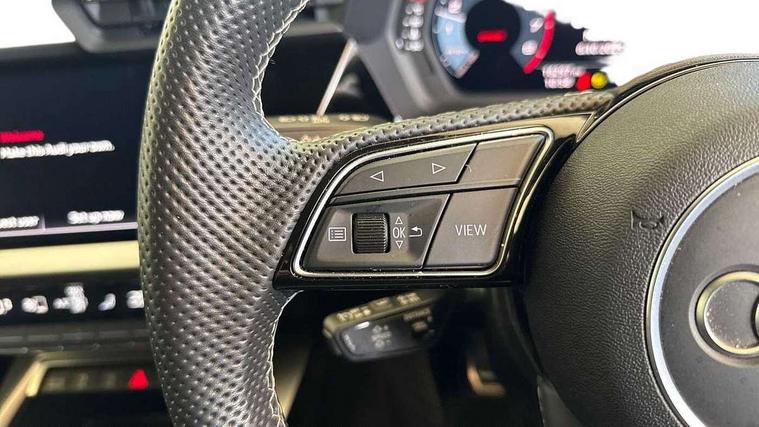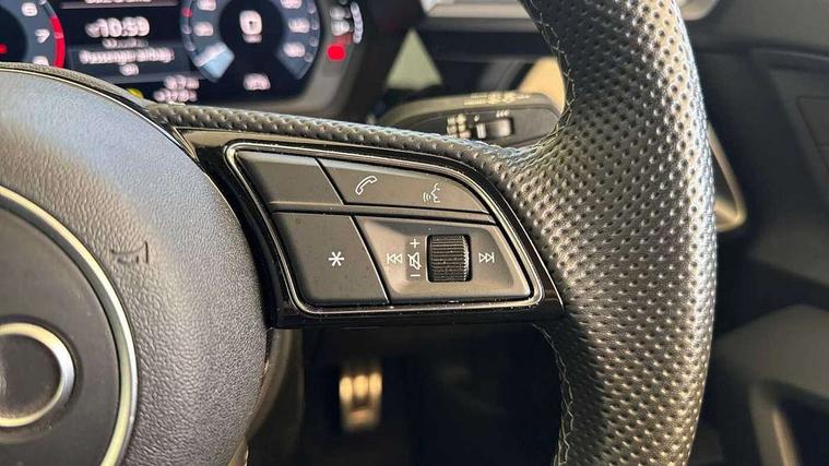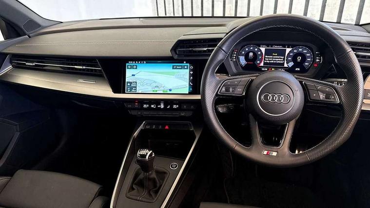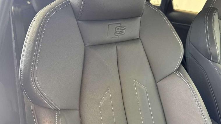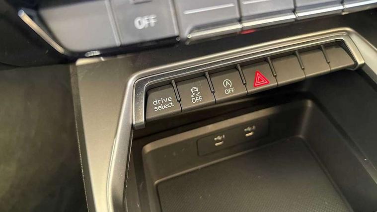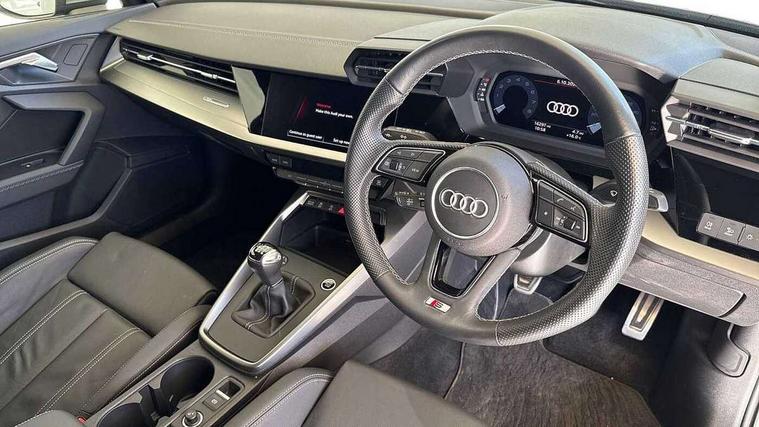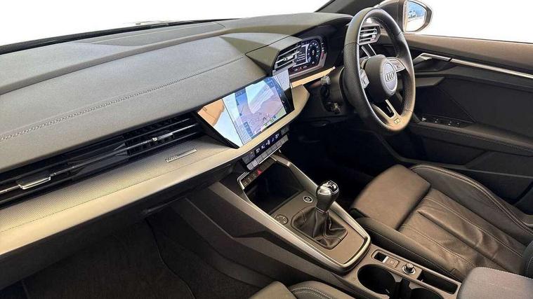 Audi drive select (Auto, Comfort, Dynamic and Individual), Audi smartphone interface, Audi Virtual Cockpit - 10.25" digital and colour instrument cluster, Automatic start/stop system with recuperation, Bluetooth interface, Collision avoidance assistant, Cruise control, e-Call (emergency call), Electromechanical power speed sensitive steering, Lane departure warning system, MMI Navigation Plus with high resolution 10.1" colour touch screen display, Rear parking sensors, Service indicator, Trip computer, Voice control system with natural language interaction, 2xUSB-C connection with data and charging functions, 6 passive loudspeakers, DAB Digital radio, 3rd brake light, Acoustic glass windscreen, Aluminium window trim, Auto dimming frameless rear view mirror, Electrically adjustable/heated/folding/auto dimming door mirrors with integrated LED indications + kerb view function for passenger side, Front electric windows, Illuminated aluminium inserts front door sills with S logo, LED daytime running lights, LED headlights with LED rear lights and dynamic rear indicators, Light and rain sensors, Privacy glass - dark tinted rear window, rear door and side windows, Rear electric windows, Rear side air outlets in grained matt black, Rear side wing doors, Rear wiper, S line bumpers, S roof spoiler, 12V socket and storage compartment in front centre console, 3 seat bench in 2nd row, 40/20/40 split folding rear seat bench with cupholder, Black cloth headlining, Dual zone electronic climate control, Front and rear centre armrest in leather, Front and rear headrests, Front/rear floor mats, Height and reach adjustable steering wheel, Illuminated vanity mirror, Interior lighting - glove compartment light and right hand side, Luggage compartment floor covering, Manual boot compartment lid, Manually adjustable front seats, Seat side bolsters, Single front passenger seat, Stainless steel pedals and front footrest in black, Twin leather upholstery with front sports seats S embossed logo, Aluminium interior elements pack - A3 Sportback, LED interior lighting pack - A3 Sportback, S line styling pack - A3 Sportback, 3x3 point rear seat belts, Audi pre sense front, Driver and front passenger airbag with passenger airbag deactivation, Electronic Stabilisation Control (ESC) including ABS, ASR and EDL, First aid kit with warning triangle and 2 safety vests, Front side airbags with head airbags and interaction airbag, Pre-sense front with pedestrian and cyclist detection, Seatbelt monitoring, Tyre pressure loss indicator, Anti theft alarm, Anti-theft wheel bolts, Electronically operated child lock, Immobiliser, Remote control central locking, Accent surfaces in the dashboard and centre console in platinum grey silk effect paint finish, Dark spectrum aluminium inlays,