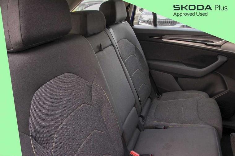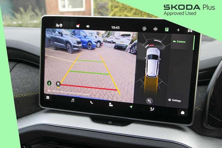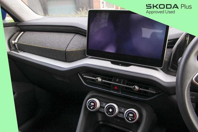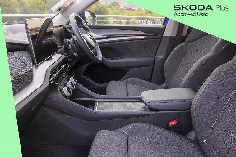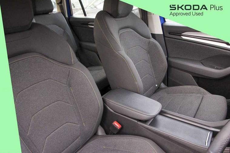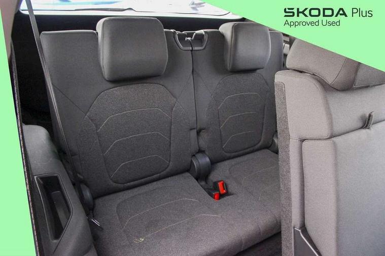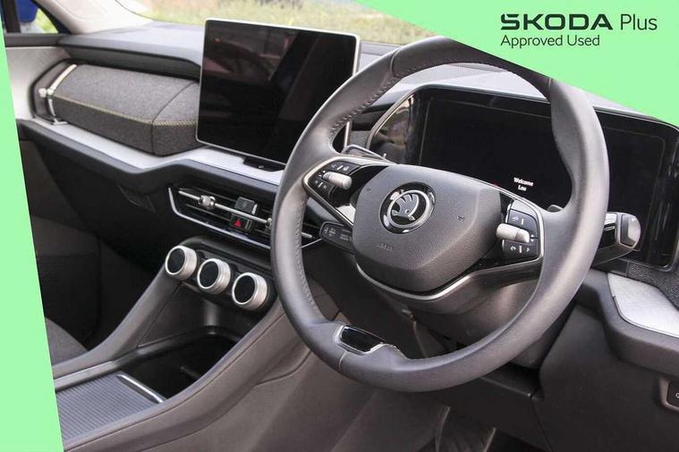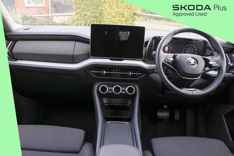 13" satellite navigation touchscreen display, Blind spot detection with door exit warning, Bluetooth system, ChatGPT functionality, Drive mode selector, Driver alert with fatigue sensor, Driver drowsiness alert system, Dry display cleaner, e call+, Front and rear parking sensors, Front cross traffic assist, Lane assist, PAS, Rear traffic assist, Rear view camera, Tailgate unlocking from outside, Traffic sign recognition, USB C Port x 2 in front centre console, Virtual Cockpit - 10.25" digital display, Voice control system, Wireless charging for two smartphones (15W) with cooling function, Wireless SmartLink for Apple CarPlay and Android Auto, Stop/start function, 2x USB-C in the rear, 8 Speakers, DAB Digital radio, Aero front windscreen wipers with intermittent function, All weather light, Auto dimming rear view mirror, Black wheel arch surrounds, Body colour bumpers, Body colour door mirrors and handles, Cornering light and poor weather light, Electric folding /adjustable/separted heated/folding door mirrors, auto dimming with boarding sports and memory function, Electric front and rear windows, Exterior black decorative trims, Heat insulating glass in windshield, Heated rear window, Ice scraper in fuel tank cap, Invisible tailpipe, LED daytime running lights, LED front fog lamps, LED Headlights, LED rear fog light, LED rear lights, LED third brake light in rear spoiler, Light assistant with automatic headlight control and coming home feature, Logo projection in door mirrors, Rear side wing doors, Rear spoiler, Rear window wiper, Safety reflectors on front and rear doors, Unique dark chrome design logo on alloy wheels, Window control switches with black trim, Windscreen wipers with rain sensor, Without engine designation, 1.5l bottle holder points in all door, 12V socket in boot, 1x centre rear reading light, 2 seat bench in 3rd row, 3 configurable smart dials with 32mm coloured display, 3 seat bench in 2nd row, 4 foldable roof handles with rear coat hooks, Ambient interior lighting - Dashboard, front-door stowage compartments, front and rear door panels and footwell lighting, Automatic gear selector on steering wheel, Chrome interior door handles, Driver/front passenger reading lights, Fabric headlining, Fixed bench 40:60:40 split folding backrests, Front and rear floor mats, Front centre armrest with jumbo box storage compartment, cup holder and 12V socket, Front courtesy lights, Height adjustable front headrests, Isofix child seat fittings in outer middle row rear seats and front passenger with top tether, Manual height adjustment for front passenger seats and thigh support extender, Manual lumbar support for front passenger seat, Manually adjustable steering column, Pollen filter, Rear centre armrest with cupholders, Rear seat boot backrest release, Retractable luggage compartment cover, Single front passenger seat, Skoda lettering on steering wheel, Sliding trunk cover, Small Bags on the inner sides of the front backrests, Storage pocket including mobile phone pockets on the backs of the front seats, Sunvisors with illuminated vanity mirrors, Three rear height adjustable headrests, Ticket holder on A Pillar, Tri zone climate control, Umbrella in door panel x1 made from sustainable materials, Upper and lower glovebox with card holder and coin compartment, USB C port by rear view mirror for charging only (15W), Variable boot floor, Auto door release and activation of warning lights in the event of an accident, Driver and front passenger airbag with knee airbag and front passenger airbag deactivation, Electric child locks, Electronic parking brake, ESC (incl. ABS+EMD+MSR+ASR+EDL+HBA+DSR+RBS+ESBS+MCB+TSA+XDS), Front assist with braking reaction to vehicles, pedestrians and cyclists, Front disc brakes, Fuel cut off safety device, Height adjustable front 3 point seatbelts + pretensioners, Hill hold control, Junction assist with automatic emergency braking, Rear disc brakes, Safety vest holder in door, Seat belt reminder for all seats, Three point rear seat belts, Two tone horn, Tyre pressure monitor, Alarm with interior monitoring and tilt sensor with safe function, Anti-theft wheel bolts, Immobiliser, Remote central locking with 2 keys, Breakdown kit,