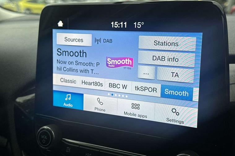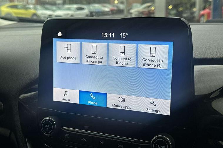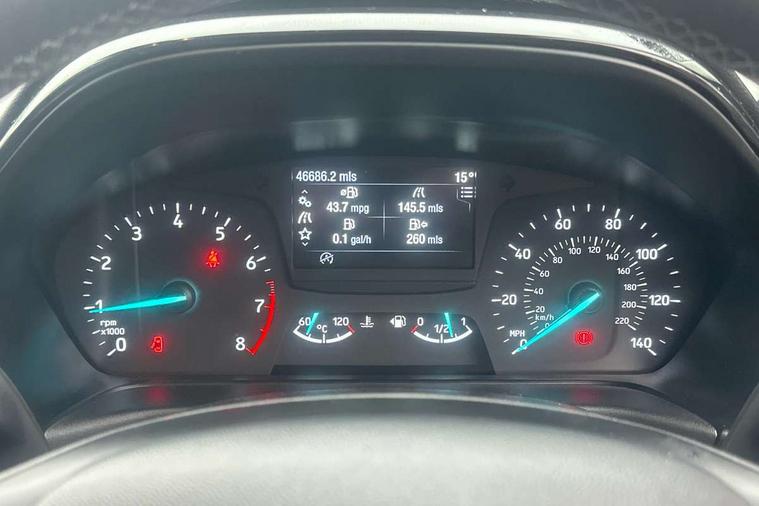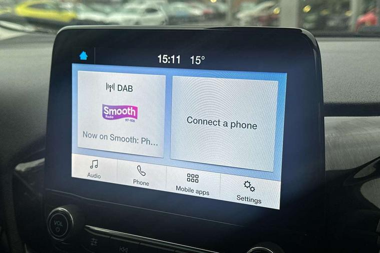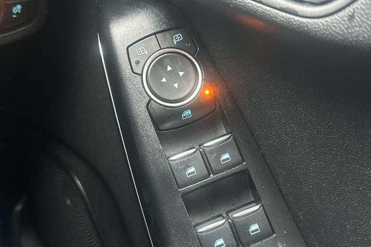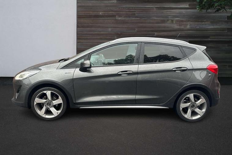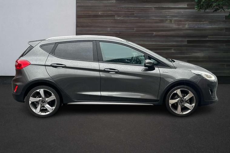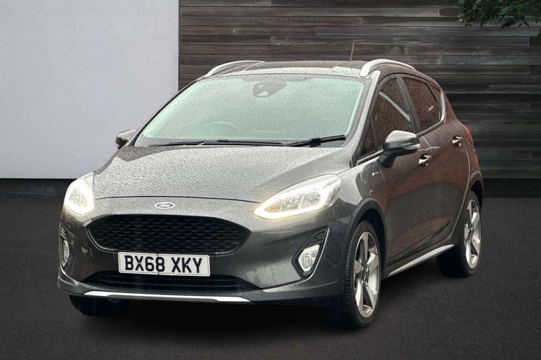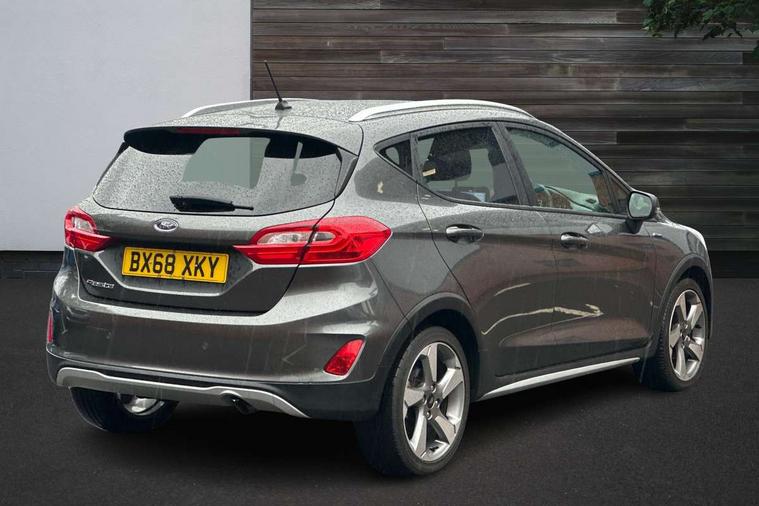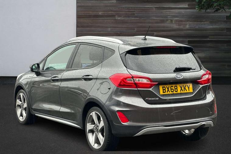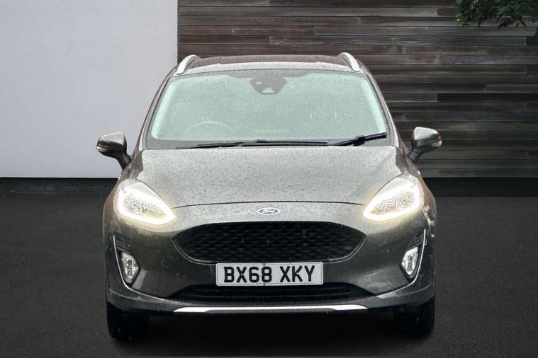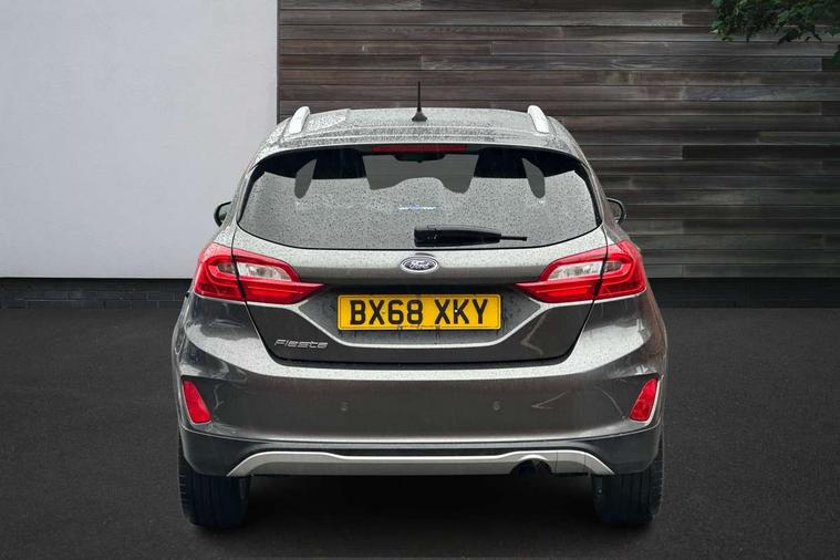 Bluetooth system, Drive mode selector, Electric power steering, Ford easy fuel, Trip computer, Rough road suspension with increased ride height adjust, Auxiliary input socket, Steering wheel mounted controls, USB connection, Active logo front door thershold plates, Automatic headlights, Body colour bumpers, Body colour door handles, Body colour electric adjustable heated door mirrors with integral indicators, Body colour rear spoiler, Chrome beltline trim, Chrome lower window surround, Cornering front fog lights, Electric front windows/one touch facility, Electric rear windows, LED Night signature to rear lights, LED rear lights, Quickclear heated windscreen, Rear privacy glass, Rear wiper, Rugged body styling kit with active front wing badges, Tinted glass, Upper front grille chrome surround, 12V Accessory socket in centre console, 3 spoke leather trimmed steering wheel with audio control, 60/40 split folding rear seat, Adjustable head restraints, Ambient lighting, Boot carpet, Chrome inner door handles, Cloth upholstery, Driver's seat lumbar support, Footwell illumination, Front floor mats, Front map reading lights, Front seat and rear pockets, Height adjustable driver's seat, Illuminated glovebox, Leather gear knob, Leather trimmed handbrake handle, Load area light, Luxury woven headliner, Manual air conditioning, Overhead console with sunglasses holder, Pollen filter, Rake/reach adjustable steering wheel, Rear centre head restraint, NCAP Pack - Fiesta, 3 point seatbelts on all rear seats, ABS+EBA, Curtain airbags, Driver and passenger airbags, Drivers knee airbag, Electronic stability control with hill start assist, Front passenger airbag deactivation, Front side airbags, Seatbelt warning, Tyre pressure monitoring system, MyKey system, Remote central locking & engine immobiliser, Thatcham Cat.1 alarm, 17" 5 spoke alloy wheels with rough metal machined finish,