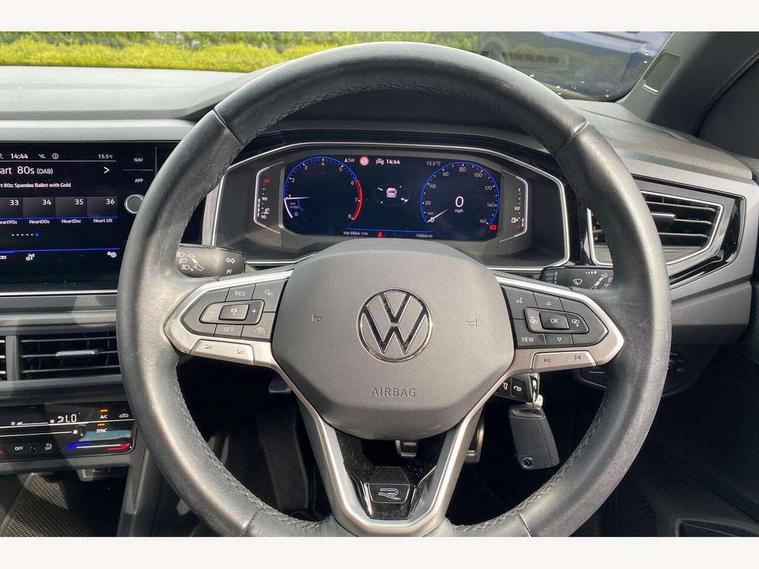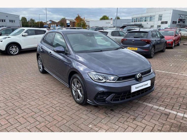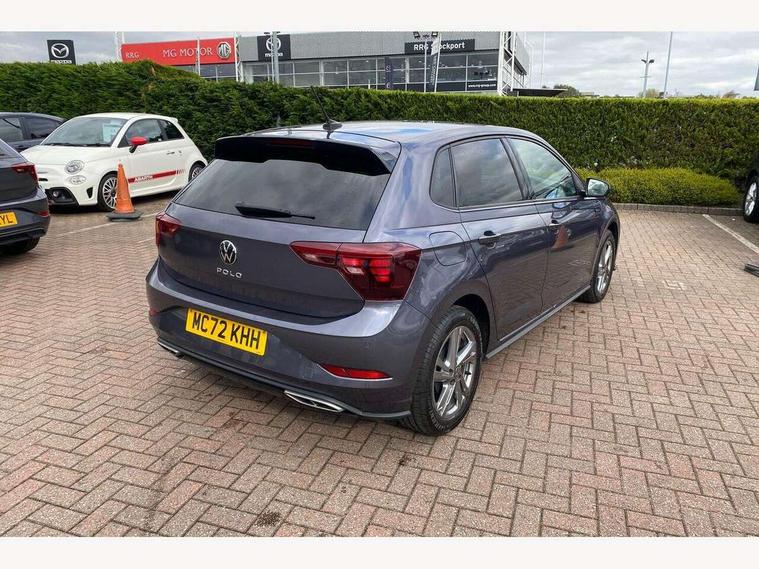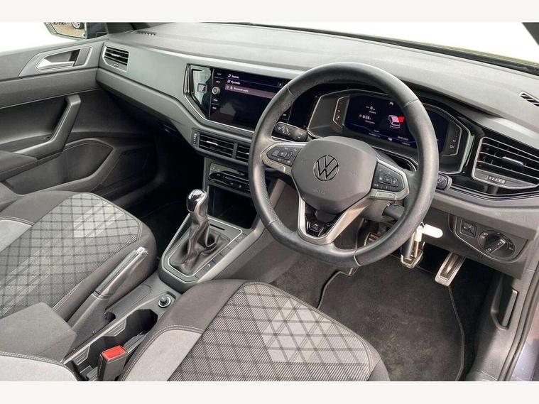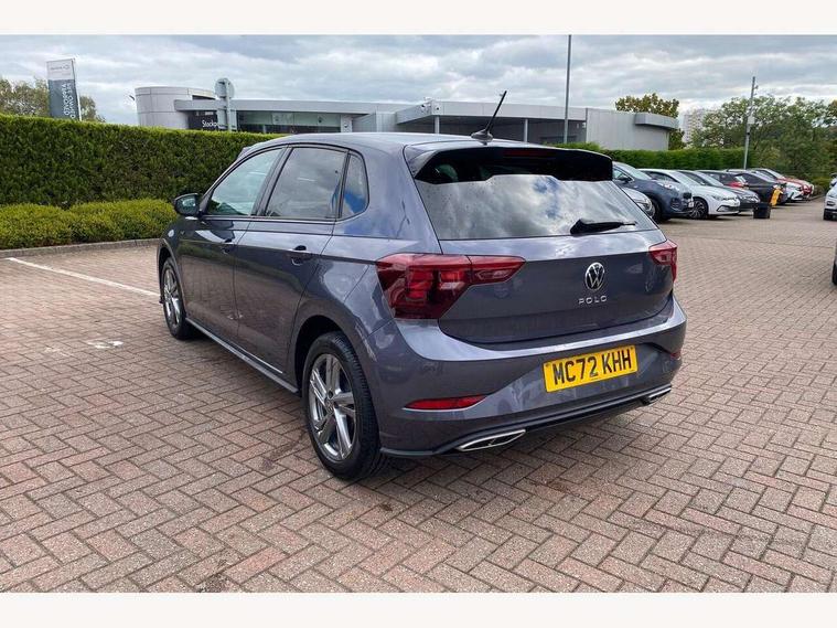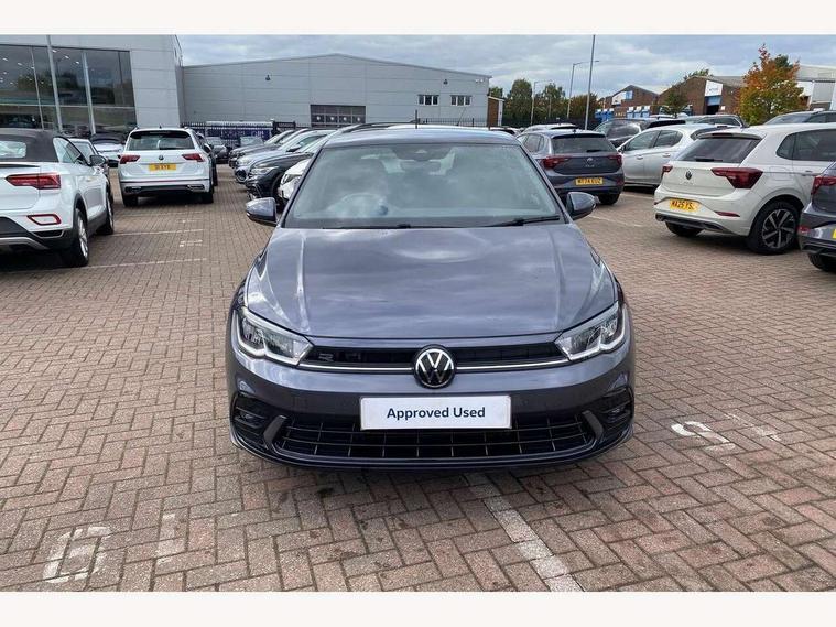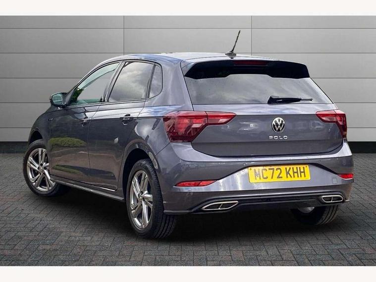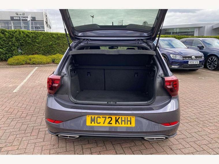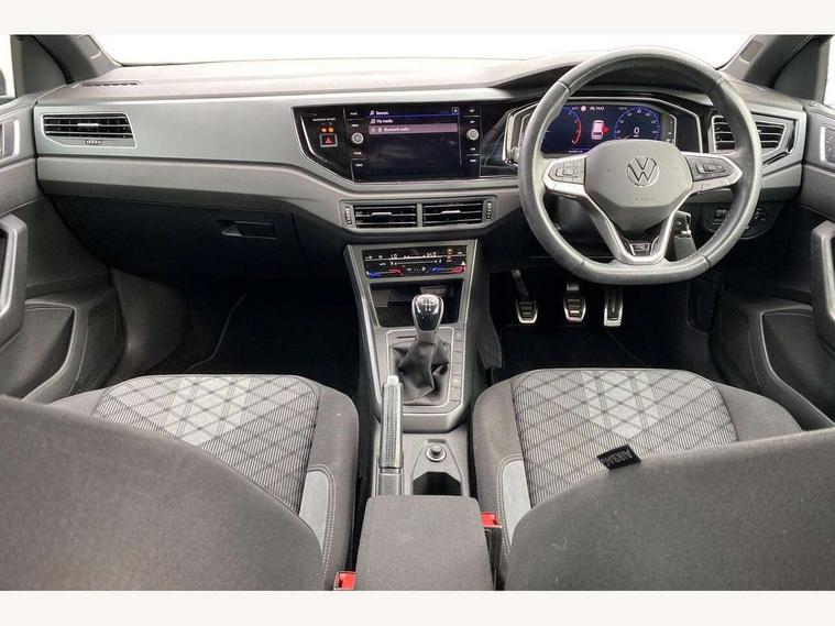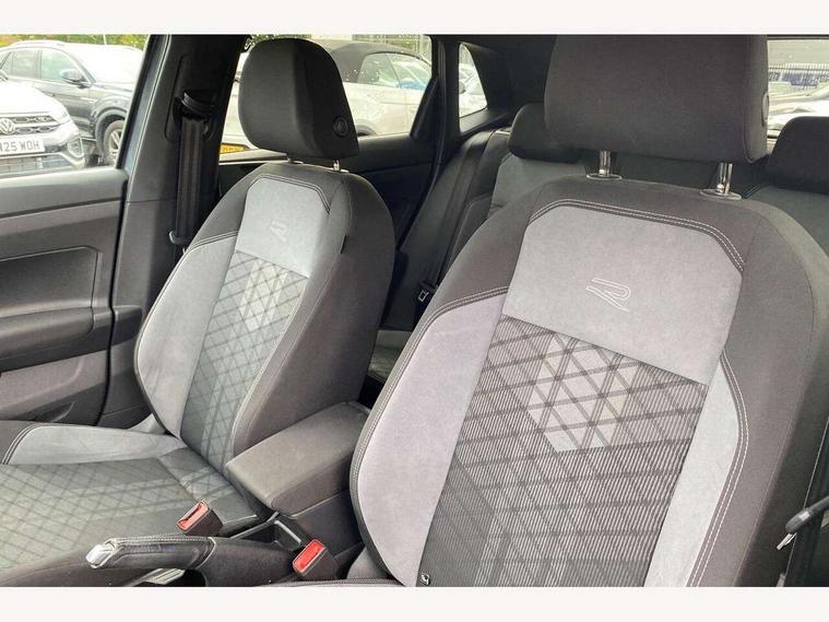 Adaptive cruise control without follow-to-stop and speed limiter, Bluetooth mobile phone interface, Digital Cockpit Pro with 10.25" Display, Driver alert system, Dynamic road sign display, Emergency call service, Power assisted speed sensitive steering, Preparation for We connect and We connect plus, Speedo and rev counter, electronic odometer, trip, service interval display and fuel gauge, Standard rear axle, Travel Assist - Lane keeping system and traffic jam assist, Travel assist including emergency assist, Trip computer, Warning signal and warning light for front and rear seatbelts not fastened, Washer fluid level indicator, Wireless app connect, Front wheel drive, Rear shock absorpion, Start-stop system with battery regeneration (recuperation - energy recovery during braking), DAB Digital radio, Diversity antenna for FM reception, Front and rear 6 speakers, Body colour bumpers, Body colour door handles, Electric front windows, Front scuff plates with R-Line logo, Heat insulating darkened glass in side and rear windows, Heat insulating glass windscreen, Power folding adjustable/heated exterior mirrors and front passenger exterior mirror lowering function, Rear electric windows, Rear fog light, Rear side wing doors, Rear windscreen washer and wiper with interval delay, Third brake light, 12V power socket in centre console, 2 USB-C ports in the front, 2 USB-C charging sockets on the center console in the rear, 3 rear head restraints, 60/40 split folding rear seat and rear seat bench not split, Air care climatronic air conditoning system with active combination filter and 2-zone temperature control, Black roof lining, Chrome plated radiator grille inserts, air vent surrounds and light switch surrounds, Door and side trim panel, Driver and front passenger seat height adjustment, Driver/passenger sunvisors with illuminated vanity mirrors, Front + rear carpet mats in recycled material, Front centre armrest, Front footwell illumination, Front seat backrest storage pockets, Front sports comfort seats, Handbrake lever handle in leather, Headliner in recycled material, Isofix child seat preparation easy-fit (for two outer rear seats, and front passenger seat) compatible with I-size, Karoso artvelours cloth upholstery, Leather trimmed gear knob, LED interior light with switch off delay and dimmer, 2 reading lights front and rear, Luggage compartment cover, Luggage compartment floor, Luggage compartment lighting, Lumbar adjustment for front seats, Multifunction steering wheel, Single front passenger seat, Stainless steel pedals, Standard pedal cluster, Light and sight pack - Polo R-Line/Black Edition, 3 point height adj front seatbelts + pretensioners, 3x3 point rear seatbelts, ABS, Driver and front passenger airbag with front passenger airbag deactivation, Drivers and front passengers safety optimised head restraints, ESC (Electronic stability control) + EDL (Electronic Differntial lock) and ASR (Traction control), Extended and predictive pedestrian/ cyclist protection, Front curtain and side airbags with center airbag, Hill hold control, Manual child lock in rear doors, Single tone horn, Tyre pressure loss indicator, Alarm with interior protection, Anti-theft alarm system with interior monitoring, backup horn, and towing protection, Anti-theft wheel bolts, Electronic engine immobiliser, Chrome applications on rotary light, mirror adjustment, window regulator switches, outlet with frame in black, Dark grey anodised matt decorative inserts in dash and front door panels, Low rolling resistance tyres,