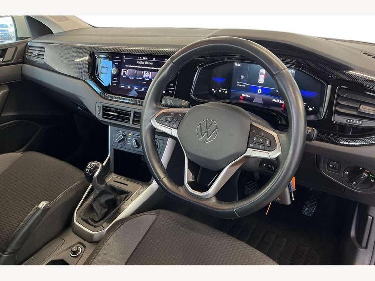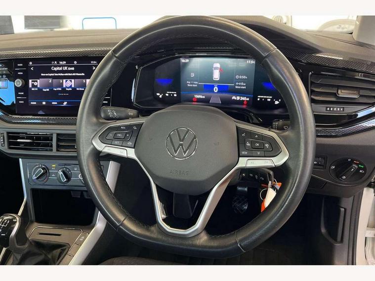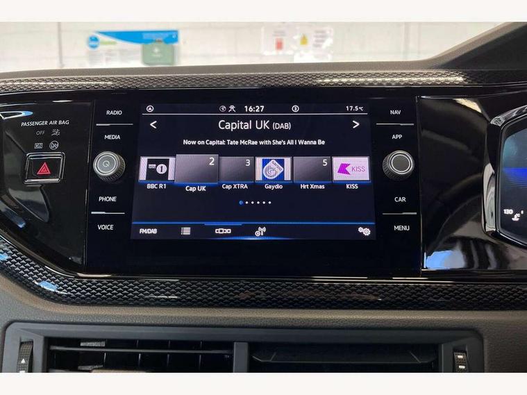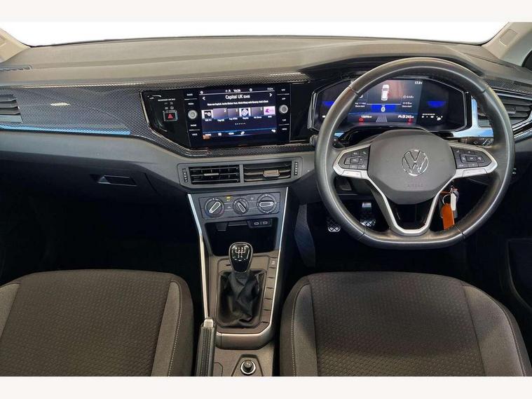 Bluetooth mobile phone interface, Cruise control + speed limiter, Driver alert system, Emergency call service, Lane keeping system Lane Assist, Power assisted speed sensitive steering, Preparation for We connect and We connect plus, Speedo and rev counter, electronic odometer, trip, service interval display and fuel gauge, Standard rear axle, Trip computer, Warning signal and warning light for front and rear seatbelts not fastened, Washer fluid level indicator, Wireless app connect, Front wheel drive, Rear shock absorpion, Start-stop system with battery regeneration (recuperation - energy recovery during braking), DAB Digital radio, Diversity antenna for FM reception, Automatic dimming interior rear view mirror, Body colour bumpers, Body colour door handles, Body colour door mirrors, Electric front windows, Heat insulating darkened glass in side and rear windows, Heat insulating glass windscreen, Power folding adjustable/heated exterior mirrors and front passenger exterior mirror lowering function, Rain sensor, Rear electric windows, Rear fog light, Rear side wing doors, Rear windscreen washer and wiper with interval delay, Third brake light, 12V power socket in centre console, 2 front and 2 rear reading lights, 2 USB-C ports in the front, 2 USB-C charging sockets on the center console in the rear, 3 rear head restraints, 60/40 split folding rear seat and rear seat bench not split, Ceramique headliner, Chrome plated radiator grille inserts, air vent surrounds and light switch surrounds, Door and side trim panel, Driver and front passenger seat height adjustment, Driver/passenger sunvisors with illuminated vanity mirrors, Front centre armrest, Front seat backrest storage pockets, Front standard seats, Handbrake lever handle in leather, Hartley/Thomas cloth upholstery, Isofix child seat preparation easy-fit (for two outer rear seats, and front passenger seat) compatible with I-size, Leather trimmed gear knob, Luggage compartment cover, Luggage compartment floor, Luggage compartment lighting, Multifunction steering wheel, Single front passenger seat, Standard pedal cluster, Light and vision pack - Polo, 3 point height adj front seatbelts + pretensioners, 3x3 point rear seatbelts, ABS, Driver and front passenger airbag with front passenger airbag deactivation, Drivers and front passengers safety optimised head restraints, ESC (Electronic stability control) + EDL (Electronic Differntial lock) and ASR (Traction control), Extended and predictive pedestrian/ cyclist protection, Front assist including city emergency braking, Front curtain and side airbags with center airbag, Front disc brakes, Hill hold control, Manual child lock in rear doors, Rear drum brakes, Single tone horn, Tyre pressure loss indicator, Alarm with interior protection, Anti-theft alarm system with interior monitoring, backup horn, and towing protection, Anti-theft wheel bolts, Electronic engine immobiliser, Lava stone black gloss/matt decorative inserts in dash and front door panels, Low rolling resistance tyres,