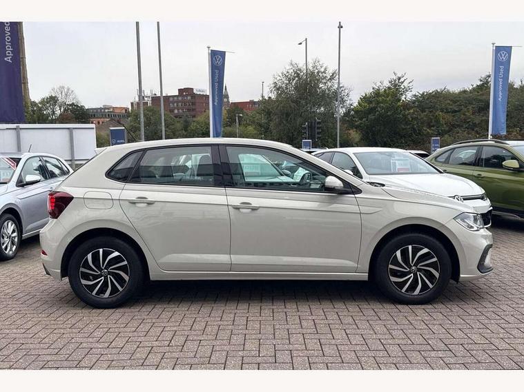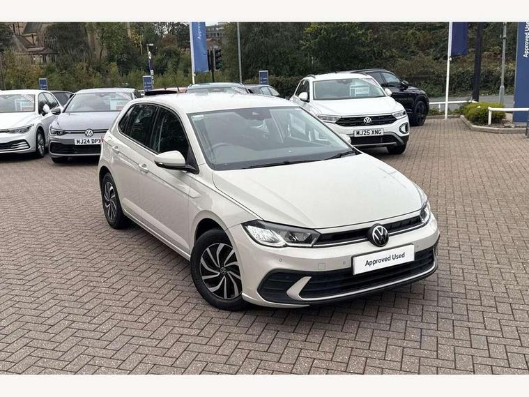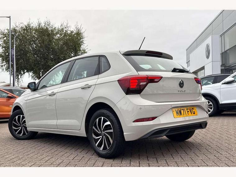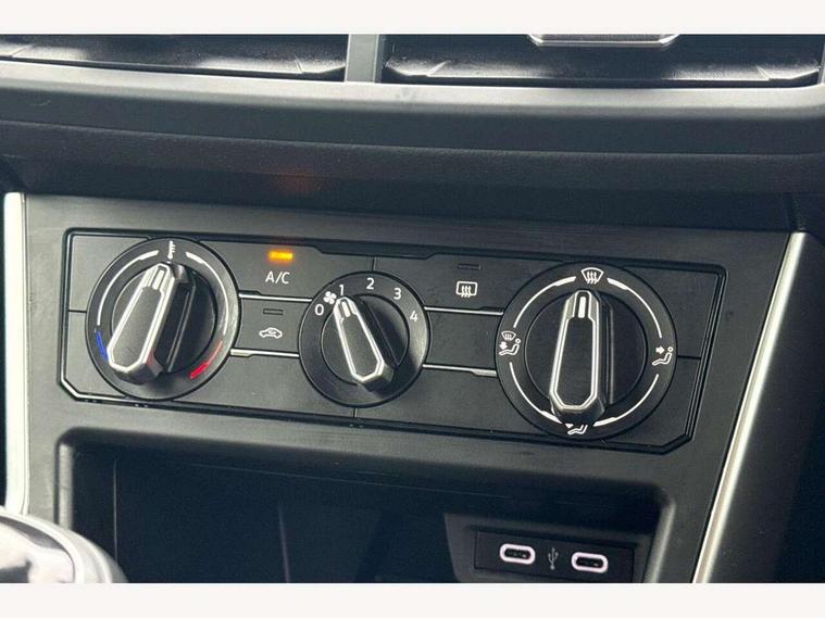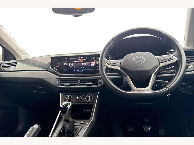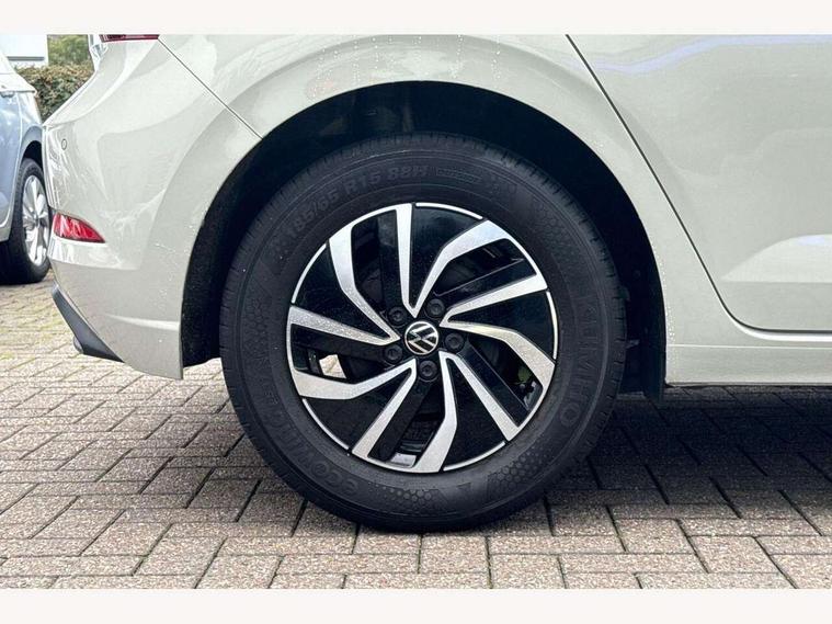 Adaptive cruise control without follow-to-stop and speed limiter, Bluetooth mobile phone interface, Driver alert system, Emergency call service, Front assist system, Power assisted speed sensitive steering, Preparation for We connect and We connect plus, Speedo and rev counter, electronic odometer, trip, service interval display and fuel gauge, Standard rear axle, Travel Assist - Lane keeping system and traffic jam assist, Travel assist including emergency assist, Trip computer, Warning signal and warning light for front and rear seatbelts not fastened, Washer fluid level indicator, Wireless app connect, Front wheel drive, Rear shock absorpion, Start-stop system with battery regeneration (recuperation - energy recovery during braking), DAB Digital radio, Diversity antenna for FM reception, Automatic dimming interior rear view mirror, Body colour bumpers, Body colour door handles, Body colour door mirrors, Electric front windows, Heat insulating darkened glass in side and rear windows, Heat insulating glass windscreen, Power folding adjustable/heated exterior mirrors and front passenger exterior mirror lowering function, Rain sensor, Rear electric windows, Rear fog light, Rear side wing doors, Rear windscreen washer and wiper with interval delay, Third brake light, 12V power socket in centre console, 2 front and 2 rear reading lights, 2 USB-C ports in the front, 2 USB-C charging sockets on the center console in the rear, 3 rear head restraints, 60/40 split folding rear seat and rear seat bench not split, Ceramique headliner, Chrome plated radiator grille inserts, air vent surrounds and light switch surrounds, Door and side trim panel, Driver and front passenger seat height adjustment, Driver/passenger sunvisors with illuminated vanity mirrors, Front centre armrest, Front seat backrest storage pockets, Front standard seats, Handbrake lever handle in leather, Hartley/Thomas cloth upholstery, Isofix child seat preparation easy-fit (for two outer rear seats, and front passenger seat) compatible with I-size, Leather trimmed gear knob, Luggage compartment cover, Luggage compartment floor, Luggage compartment lighting, Multifunction steering wheel, Single front passenger seat, Standard pedal cluster, Light and vision pack - Polo, 3 point height adj front seatbelts + pretensioners, 3x3 point rear seatbelts, ABS, Driver and front passenger airbag with front passenger airbag deactivation, Drivers and front passengers safety optimised head restraints, ESC (Electronic stability control) + EDL (Electronic Differntial lock) and ASR (Traction control), Extended and predictive pedestrian/ cyclist protection, Front curtain and side airbags with center airbag, Front disc brakes, Hill hold control, Manual child lock in rear doors, Rear drum brakes, Single tone horn, Tyre pressure loss indicator, Alarm with interior protection, Anti-theft alarm system with interior monitoring, backup horn, and towing protection, Anti-theft wheel bolts, Electronic engine immobiliser, Lava stone black gloss/matt decorative inserts in dash and front door panels, Low rolling resistance tyres,