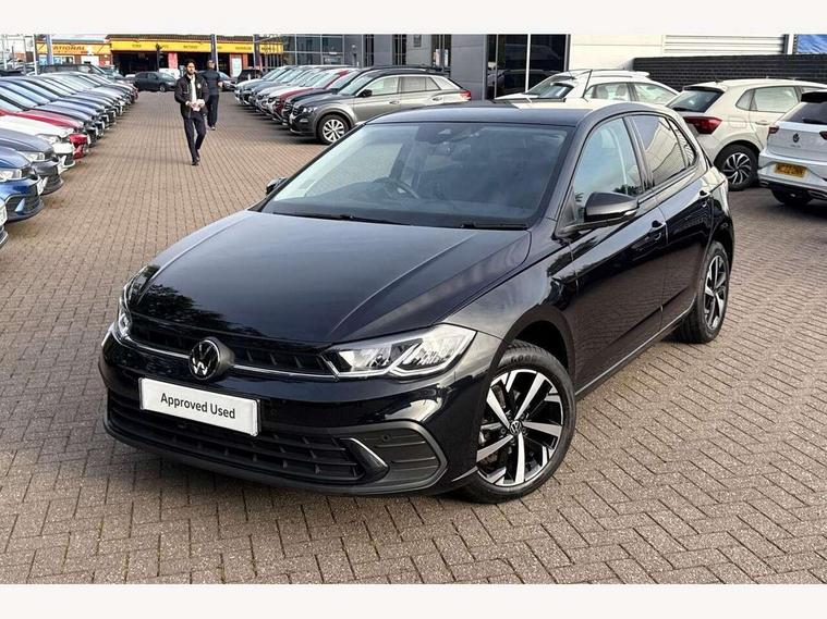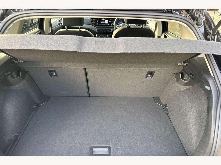 Advanced driver attention and drowsiness monitor, Bluetooth mobile phone interface, Dynamic road sign display, Emergency call service, Multifunction front facing camera for distance control, Park distance control, Power assisted speed sensitive steering, Predictive adaptive cruise control without follow-to-stop and speed limiter, Preparation for navigation system with media and internet package, Preparation for We connect and We connect plus, Rear view camera, Speedo and rev counter, electronic odometer, trip, service interval display and exterior temperature gauge, Standard rear axle, Travel Assist - Lane keeping system and traffic jam assist, Travel assist including emergency assist, Trip computer, Warning signal and warning light for front and rear seatbelts not fastened, Washer fluid level indicator, Wireless app connect, Front wheel drive, Rear shock absorpion, Start-stop system with battery regeneration (recuperation - energy recovery during braking), DAB Digital radio, Diversity antenna for FM reception, Front and rear 6 speakers, Automatic dimming interior rear view mirror, Automatic headlight control with LED separate daytime running lights with coming/leaving home function, Body colour bumpers with chrome inserts, Body colour door handles, Body colour door mirrors, Electric front windows, Engine badge deletion, Headlight range adjustment, Heat insulating and laminated safety glass windshield, LED Headlights, LED rear combination lamps, Power folding adjustable/heated exterior mirrors and front passenger exterior mirror lowering function, Rain sensor, Rear electric windows, Rear fog light, Rear side wing doors, Rear tinted glass from B-pillar backwards approx 65% tinted, Rear windscreen washer and wiper with interval delay, Third brake light, 12V power socket in centre console, 2 front and 2 rear reading lights with switch off delay and dimmer, 2 USB-C ports in the front, 2 USB-C charging sockets on the center console in the rear, 3 rear head restraints, 60/40 split folding rear seat and rear seat bench not split, Ceramique roof lining, Chrome plated radiator grille inserts, air vent surrounds and light switch surrounds, Door and side trim panel, Driver and front passenger seat height adjustment, Driver/passenger sunvisors with illuminated vanity mirrors, Front centre armrest, Front seat backrest storage pockets, Front standard seats, Handbrake lever handle in leather, Hartley/Thomas cloth upholstery, Headliner in recycled material, Isofix child seat preparation easy-fit (for two outer rear seats, and front passenger seat) compatible with I-size, Leather trimmed gear knob, Luggage compartment cover, Luggage compartment lighting, Removable luggage compartment floor, Single front passenger seat, Standard climatic zones, Standard pedal cluster, Three spoke leather wrapped multifunction steering wheel with shifting paddles, Light and vision pack - Polo, 3 point height adj front seatbelts + pretensioners, 3 point seat belt for centre rear seat, 3 point seatbelts, outer rear with ECE lable, ABS, Driver and front passenger airbag with front passenger airbag deactivation, Drivers and front passengers safety optimised head restraints, ESC (Electronic stability control) + EDL (Electronic Differntial lock) and ASR (Traction control), Extended and predictive pedestrian/ cyclist protection, Front assist with autonomous emergency braking (for Adaptive Cruise Control ACC up to 130 mph), Front curtain and side airbags with center airbag, Front disc brakes, Hill hold control, Manual child lock in rear doors, Rear drum brakes, Single tone horn, Tyre pressure loss indicator, Alarm with interior protection, Anti-theft alarm system with interior monitoring, backup horn, and towing protection, Anti-theft wheel bolts, Electronic engine immobiliser, Lava stone black gloss/matt decorative inserts in dash and front door panels, 16" Torsby alloy wheels, Low rolling resistance tyres,