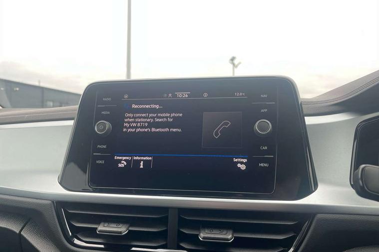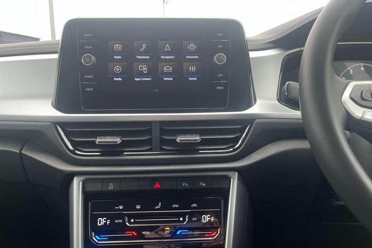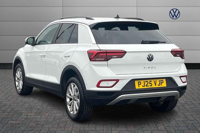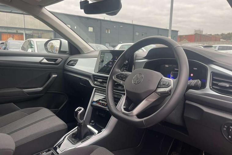Advanced driver attention and drowsiness monitor, Dynamic road sign display, Emergency call service, Lane keeping system Lane Assist, Mobile phone interface, Modified key software - reduce switch off time for key status change to Long no motion, Online services, Park assist including front and rear parking sensors, Power assisted speed sensitive steering, Rear view camera, Service interval indicator, Tailgate/trunk lid release from outside, Think blue trainer driver tips and journey analysis, Warning sound and light for front seatbelts unfastened, Wireless app connect, Battery regeneration during braking, Front shock absorption, Rear shock absorption chassis with increased ride height, Start/stop function with battery regeneration, DAB Digital radio, Diversity antenna for FM reception, Music playback - MP3, WMA and AAC files, Premium USB cable in choice of either Apple or Android smartphone compatibility, SD card slot, Simultaneous pairing of 2 compatible mobile devices, Title and cover art display, We Connect and We Connect Plus functionality, Auto dimming interior rear view mirror, Automatic hazard lights activation under emergency braking, Automatic headlight control with LED separate daytime running lights with coming/leaving home function, Black roof rails, Body coloured bumpers and radiator grille with chrome trim and front fog lamps with chrome bezel, Body coloured exterior mirror housings and door handles, Electrically adjustable and heated door mirrors, Extended roof spoiler, Exterior mirrors aspherical on driver side, convex on front passenger side, External USB type C socket and charging sockets, Front windscreen wiper with intermittent wipe and 4 position delay, Heated rear window, LED 3rd brake light, LED rear combination lamps, LED rear number plate lights, Power windows with comfort operation and circuit breaker, Privacy glass for rear side windows and rear window, Rain sensor, Rear exhaust tailpipe, Rear fog light on one side and reversing lights on both sides, Rear side wing doors, Rear wash/wipe with intermittent wipe setting, Remote electrically foldable door mirrors, puddle lights and reverse activated passenger's door mirror, 12V power socket in centre console, 3 rear head restraints, 3 seat bench in 2nd row, 4 load lashing points in luggage compartment, Air care climatronic air conditoning system with active combination filter and 2-zone temperature control, Black stitching for floor mats, Ceramique roof liner, Cloth upholstery, Door and side trim panel in cloth, Drawer under drivers seat, Driver/front passenger seat height adjustment, Front centre armrest, Front comfort sports seats, Front cupholders x 2, Front reading light, Front seat back storage pockets, Glove compartment door with light, Instrument lighting, white adjustable panel illumination, Interior ambient lighting and surround lighting, Interior light delay, Isofix child seat preparation, Leather gearshift handle, Load-through provision with cup holder when folded down ('Unsplit rear seat bench, split folding backrest, with centre armrest), Luggage compartment lighting, Lumbar support for driver's and front passengers seat, Non-folding front passenger seat backrest, Single front passenger seat, Storage compartment in left and right luggage area, Storage compartment in rear doors, Storage compartments in driver and front passenger doors, Sunvisors with illuminated vanity mirrors, Variable boot floor, height adjustable and removable, Driver assistance pack without proactive passenger protection - T-Roc Life/Match, 3 point height adj front seatbelts + pretensioners, 3 point seatbelts in outer rear with ECE label, ABS, Child locks on rear doors, City emergency braking and pedestrian monitoring, Driver and front passenger airbag with front passenger airbag deactivation, Driver and front passenger safety-optimised head restraints, Drivers seatbelt reminder, Electronic parking brake, Electronic Stability Control (ESC) inc EDL (Electronic Differential Lock) and ASR (Traction Control), Front and rear passengers curtain airbag system including front side airbags, Front disc brakes, Hill start assist, Predictive pedestrian protection, Rear disc brakes, Two tone horn, Tyre pressure loss indicator, Volkswagen roadside assistance, Alarm with interior protection, Keyless locking and starting system keyless access with safelock, Pewter matt decorative inserts for intrument panel, centre console and door panels at the front, Trims for alloy wheels,