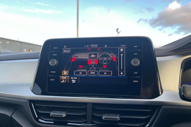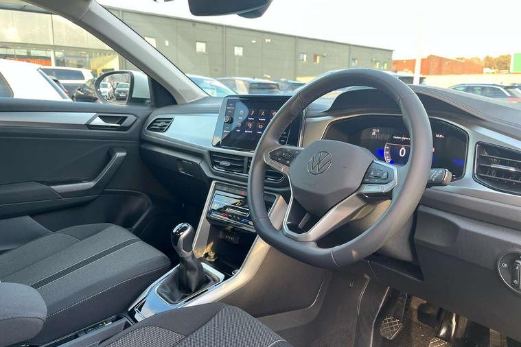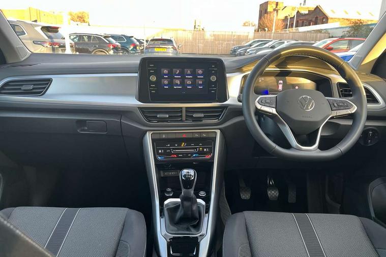 Advanced driver attention and drowsiness monitor, Dynamic road sign display, Emergency call service, Lane keeping system Lane Assist, Mobile phone interface, Modified key software - reduce switch off time for key status change to Long no motion, Online services, Park assist including front and rear parking sensors, Power assisted speed sensitive steering, Rear view camera, Service interval indicator, Tailgate/trunk lid release from outside, Think blue trainer driver tips and journey analysis, Warning sound and light for front seatbelts unfastened, Wireless app connect, Battery regeneration during braking, Front shock absorption, Rear shock absorption chassis with increased ride height, Start/stop function with battery regeneration, DAB Digital radio, Diversity antenna for FM reception, Music playback - MP3, WMA and AAC files, Premium USB cable in choice of either Apple or Android smartphone compatibility, SD card slot, Simultaneous pairing of 2 compatible mobile devices, Title and cover art display, We Connect and We Connect Plus functionality, Auto dimming interior rear view mirror, Automatic hazard lights activation under emergency braking, Automatic headlight control with LED separate daytime running lights with coming/leaving home function, Black roof rails, Body coloured bumpers and radiator grille with chrome trim and front fog lamps with chrome bezel, Body coloured exterior mirror housings and door handles, Electrically adjustable and heated door mirrors, Extended roof spoiler, Exterior mirrors aspherical on driver side, convex on front passenger side, External USB type C socket and charging sockets, Front windscreen wiper with intermittent wipe and 4 position delay, Heated rear window, LED 3rd brake light, LED rear combination lamps, LED rear number plate lights, Power windows with comfort operation and circuit breaker, Privacy glass for rear side windows and rear window, Rain sensor, Rear exhaust tailpipe, Rear fog light on one side and reversing lights on both sides, Rear side wing doors, Rear wash/wipe with intermittent wipe setting, Remote electrically foldable door mirrors, puddle lights and reverse activated passenger's door mirror, 12V power socket in centre console, 3 rear head restraints, 3 seat bench in 2nd row, 4 load lashing points in luggage compartment, Air care climatronic air conditoning system with active combination filter and 2-zone temperature control, Black stitching for floor mats, Ceramique roof liner, Cloth upholstery, Door and side trim panel in cloth, Drawer under drivers seat, Driver/front passenger seat height adjustment, Front centre armrest, Front comfort sports seats, Front cupholders x 2, Front reading light, Front seat back storage pockets, Glove compartment door with light, Instrument lighting, white adjustable panel illumination, Interior ambient lighting and surround lighting, Interior light delay, Isofix child seat preparation, Leather gearshift handle, Load-through provision with cup holder when folded down ('Unsplit rear seat bench, split folding backrest, with centre armrest), Luggage compartment lighting, Lumbar support for driver's and front passengers seat, Non-folding front passenger seat backrest, Single front passenger seat, Storage compartment in left and right luggage area, Storage compartment in rear doors, Storage compartments in driver and front passenger doors, Sunvisors with illuminated vanity mirrors, Variable boot floor, height adjustable and removable, Driver assistance pack without proactive passenger protection - T-Roc Life/Match, 3 point height adj front seatbelts + pretensioners, 3 point seatbelts in outer rear with ECE label, ABS, Child locks on rear doors, City emergency braking and pedestrian monitoring, Driver and front passenger airbag with front passenger airbag deactivation, Driver and front passenger safety-optimised head restraints, Drivers seatbelt reminder, Electronic parking brake, Electronic Stability Control (ESC) inc EDL (Electronic Differential Lock) and ASR (Traction Control), Front and rear passengers curtain airbag system including front side airbags, Front disc brakes, Hill start assist, Predictive pedestrian protection, Rear disc brakes, Two tone horn, Tyre pressure loss indicator, Volkswagen roadside assistance, Alarm with interior protection, Keyless locking and starting system keyless access with safelock, Pewter matt decorative inserts for intrument panel, centre console and door panels at the front, Trims for alloy wheels,