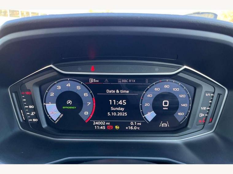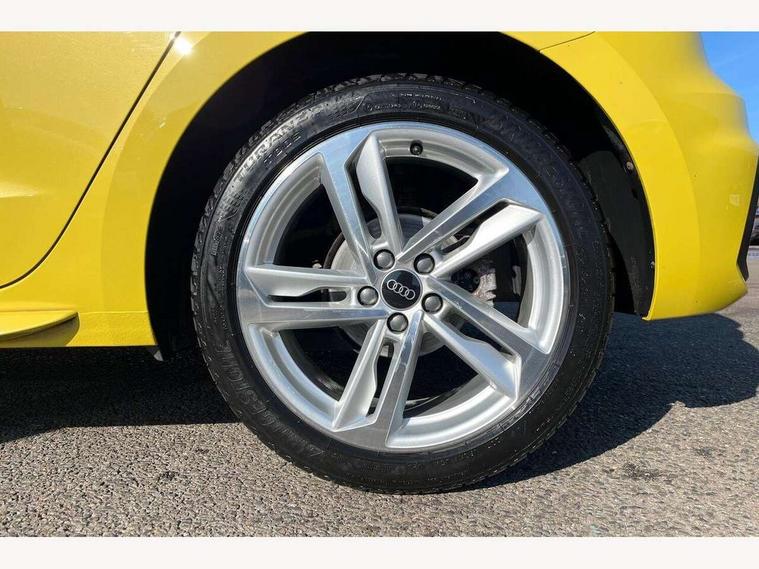 10.25" Digital instrument cluster display classis style instrument dials + speed, odometer, time, outside temperature, telephone menu + fuel level warning, Audi connect safety emergency and service including E-call, Audi drive select - power steering assistance + engine, Audi smartphone interface with connect compatible smartphone via USB directly MMI display + Nav, music, third party apps controlled via MMI controller, Automatic start/stop system, Bluetooth interface, Cruise control, Driver's information system, Electromechanical power steering, Lane departure warning system, Service interval indicator, Speed limiter, Voice control system, Washer fluid level indicator, Sports suspension, 1 x SDXC card reader, 2 x USB type C connection points, DAB Digital radio, MMI radio plus with 8.8" colour MMI display screen and MMI touch, Auto dimming rear view mirror, Body coloured door mirrors, Door sills with aluminium inlays and S Line logo, Electric front and rear windows, Electrically adjustable, heated, folding door mirrors with integrated LED side indicator, Front side air inlets in grained matt black and C frame in titanium black, Heat insulating glass windscreen and side windows, Heated rear windscreen, LED headlights with LED rear lights + dynamic rear indicators + headlight adjustment and high beam, turning light + LED daytime running lights, Radiator grille and rear diffuser in matt titanium black, Radiator protective grille frame in matt aluminium silver, Rain and light sensors, Rear fog lights, Rear wiper, S line badges on front wings, Side front spoiler lips in grained matt black, 12V socket in centre console with two cup holders, 3 rear seats with headrests, 40:60 Split folding rear seat or folded fully, Black cloth headlining, Driver and passenger seat with manual height adjust with forward and backwards adjustment, Front and rear black floor mats with contrast stitching in fine silver, Front head restraints, Height and reach adjustable steering wheel, ISOFIX child seat mounting for front passenger and outer rear seats including top tether attachment point of outer rear seats, Leather gear knob with aluminium trim, Luggage compartment light with front and rear reading lights, Manually adjustable lumbar support in front seats, Stainless steel pedals, LED interior lighting pack - A1, Luggage compartment pack - A1, S line exterior styling pack - A1 Sportback, 3x3 point rear seatbelts, Audi pre-sense front with pedestrain and cyclist recognition, Brake assist function, Driver and front passenger airbag with front side and head airbags, Electronic Stability Control including ABS, EBD, ASR and EDL, Front and rear seatbelt reminder, Front passenger airbag deactivation switch, Hill hold assist, Seatbelt height adjustment for front seats, Seatbelt monitoring, Tyre pressure warning light, Warning triangle and first aid kit, Anti theft alarm, Anti theft wheel bolts and loose wheel warning, Immobiliser, Remote central locking with 2 foldaway keys, Aluminium trim for control switches, air vents and digital instrument cluster, Silver grey inlays polygon structure in diamond paint finish, Structured grey accent areas including air vents, door handle recesses and centre console in quartz paint finish,