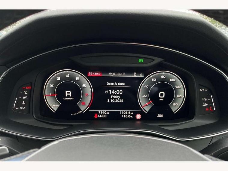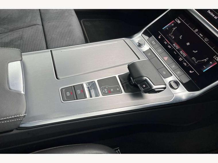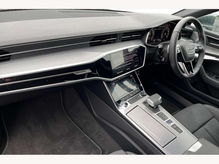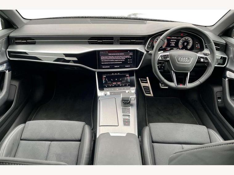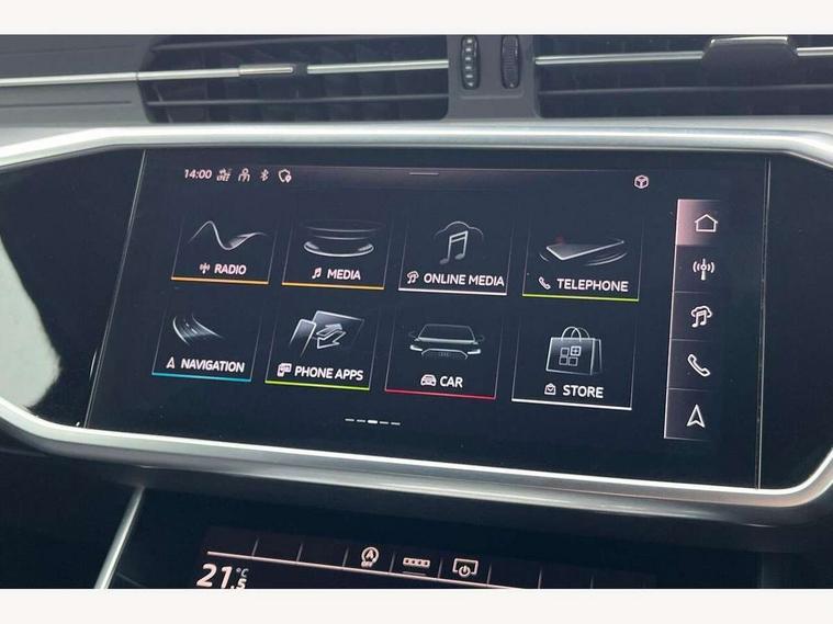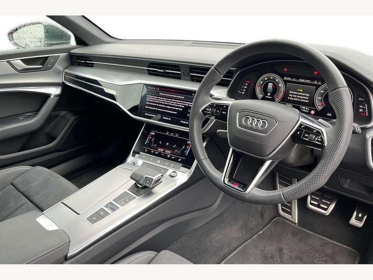 Audi connect safety and service (e-call), Audi connect with Amazon Alexa Integration, Audi drive select, Audi parking system plus - acoustic and visual park assist system for front and rear, Audi virtual cockpit, Automatic start/stop system with coasting functionality, Bluetooth interface, Camera based traffic sign recognition, Lane departure warning system, MMI navigation plus with 10.1" and 8.6" touch screens, Power operated tailgate, Progressive steering, Rear view camera, Service interval indicator, Smartphone interface includes wireless Apple carplay/Android Auto, Voice control system, Sports suspension, Audi front music interface, Audi sound system, Auxiliary input socket, DAB Digital radio, USB connection, Aluminium roof rails, Body colour rear roof spoiler, Body coloured door mirrors, Electric front/rear windows, Electrically adjustable heated and folding + automatically dimming exterior mirrors with memory function, Frameless auto dimming interior rear view mirror, Front intermittent wipers, Heat insulating darkened glass in side and rear windows, Heat insulating glass in windshield, LED rear lights with dynamic indicators, LED signature front daytime running light, LED third brake light, Matrix LED headlights, Matt black rear diffuser with diffuser strip and tailpipes in chrome, Matt black side air intake grille with inlay in matt aluminium, Privacy glass, Radiator grille in anthracite black matt, single frame in chrome and horizontal struts in matt aluminium silver, Rain and light sensors, Rear side wing doors, Rear wiper, 2 zone deluxe electronic climate control, 3 spoke high multi-function perforated leather steering wheel with contrast stitching and shift paddles, 40/20/40 split folding 3 rear seat bench in 3 parts with rear centre armrest, Audi phone box light, Black cloth headlining, Electrically adjustable front seats including seat height, fore/aft position, backrest angle and 4-way lumbar with memory for driver's seat, Front and rear floor mats, Front centre armrest, Front head restraints, Heated front seats, Height/reach adjust steering wheel, Illuminated door sill trims with S logo, Illuminated sun visors with vanity mirrors, Leather gear knob, Luggage compartment system, Rear headrests, Single front passenger seat, Stainless steel pedals and foot rest, Tool kit and car jack, LED Interior Ambient Lighting Pack - A6, Non smoking pack - A6, S line exterior style pack - A6, 3 point seatbelts on all seats, Airbags - Front side, front and rear including head, Audi pre-sense front, EBD - Electronic brakeforce distribution, Electromechanical parking brake, Electronic Stability Control (ESC) including ABS, ASR and EDL, Extended pedestrian protection measures, ISOFIX child seat mounting for front passenger seat and ISOFIX child seat mounting with Top Tether for outer rear seats, Manual child proof rear door locks, Seatbelt monitoring, Tyre pressure warning light, Warning triangle and first aid kit, Anti theft alarm with tow away protection, Anti-theft wheel bolts and wheel loosening detection, Immobiliser, Keyless Go, Remote central locking, Matt brushed aluminium inlays,