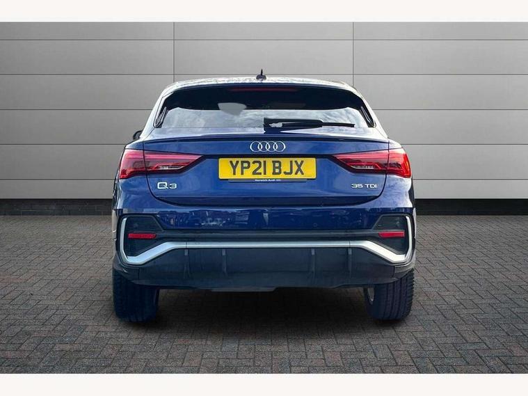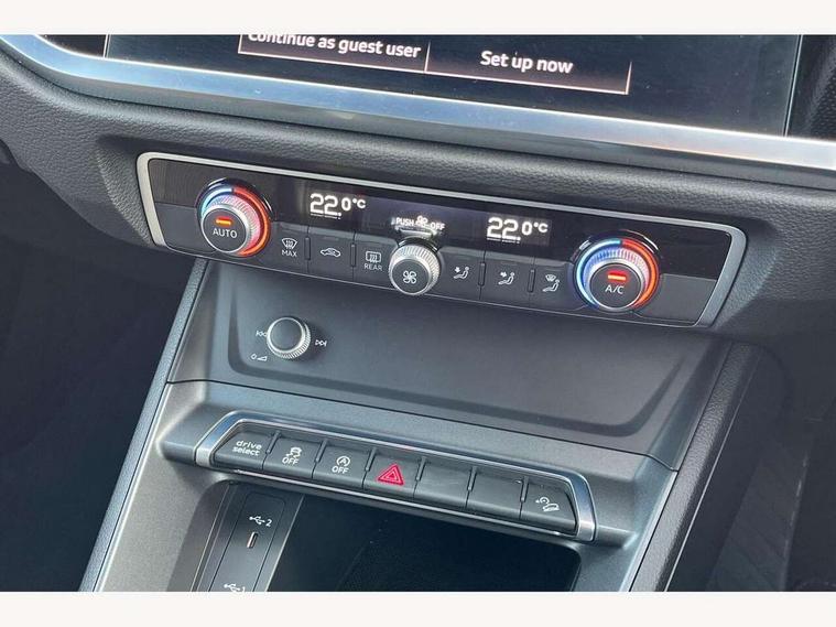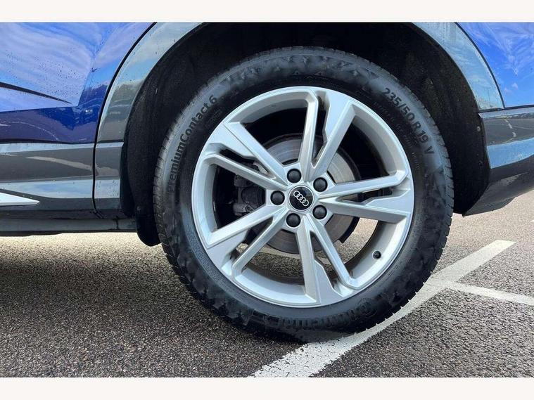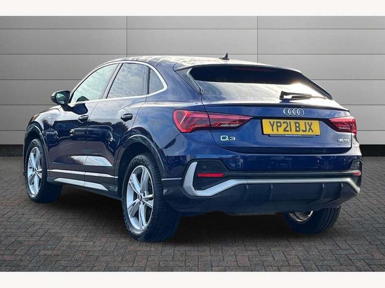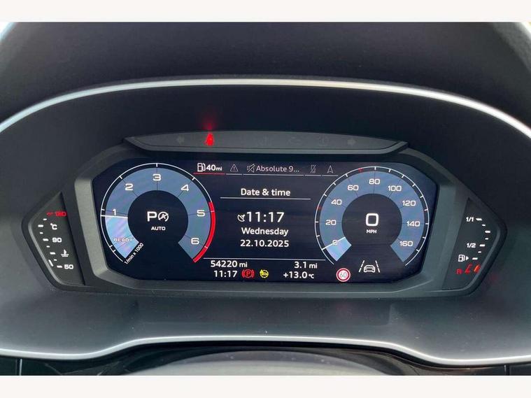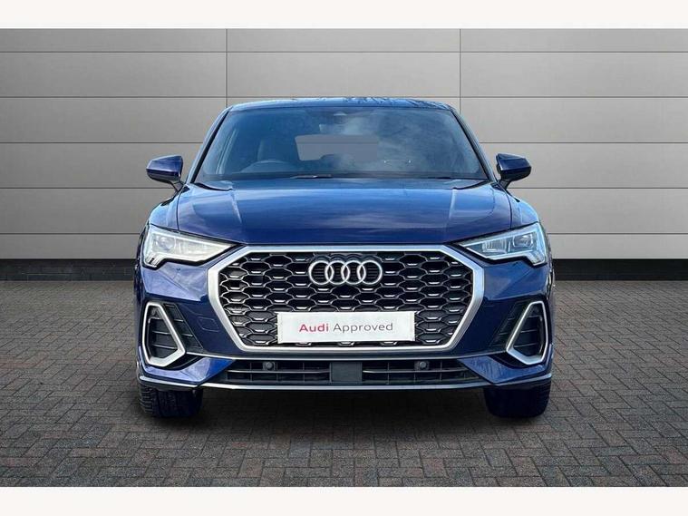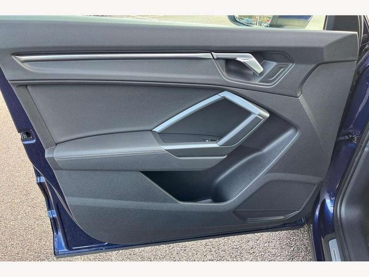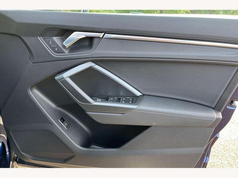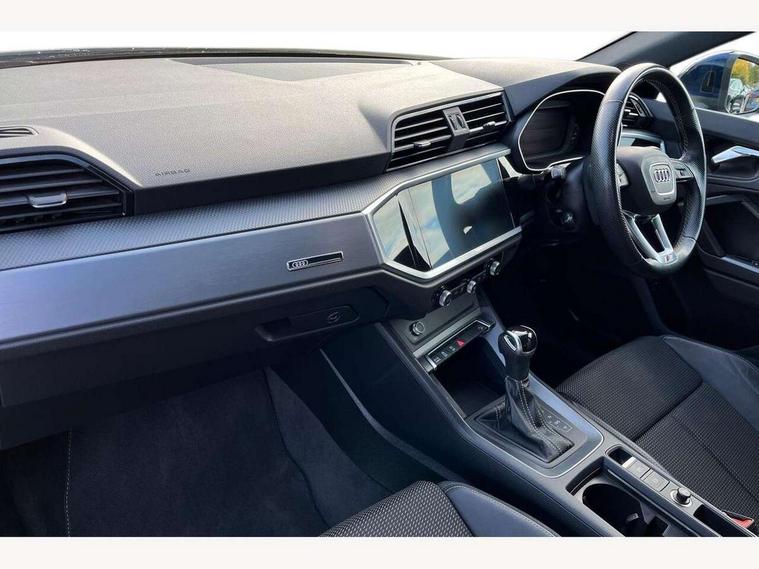Audi connect safety and service (e-call), Audi drive select, Audi lane departure warning, Audi smartphone interface includes wireless Apple carplay/Android Auto, Audi Virtual Cockpit - 10.25" display, Bluetooth interface, Camera based traffic sign recognition, MMI Navigation Plus with high resolution 10.1 inch touchscreen colour display, Power operated tailgate, Progressive steering, Service interval indicator, Start stop system with recuperation, Voice control system with natural language interaction, Diesel particulate filter, Sports suspension, 2 USB-C ports with charge and data functions, 6 passive loudspeakers, DAB digital radio module, Acoustic windscreen, Aluminium window trim, Auto dimming frameless rear view mirror, Diffuser grille in grained matt black, Diffuser trim in selenite silver, Electrically folding, adjustable and heated door mirrors with integrated LED side indicators and kerb view function for passenger side, Front and rear electric windows, Front fog lights, Front side air inlets in selenite silver, Front underbody protection in manhattan grey paint finish, Grille surround in aluminium silver matt, High gloss black finish B and C pillars, LED headlights with LED daytime running lights and dynamic rear indicator, LED rear lights, Privacy glass dark tinted rear and rear-side windows (from B-pillar backwards), Radiator grille in titanium black with inlay in matt aluminium silver, Rain and light sensors, Rear underbody protection in matt black, S line badges on front wings, Side skirt insert in matt Platinium grey, 12V socket in rear centre console, 40:20:40 folding with manual adjustment for 60:40 forwards/backwards position and backrest angle, Adjustable rear seat bench/backrest with centre armrest and cupholder, Black cloth headlining, Dual zone electronic climate control, Front and rear black floor mats with contrast stitching, Front and rear headrests, Front and rear roof module including reading lights, Front centre armrest, Glove compartment lighting, Height and reach adjustable steering wheel, Illuminated door sill trims with S logo, ISOFIX child seat mounting for front passenger with airbag deactivation and outer rear seat including top tether attachment point for outer rear seats, Luggage compartment light, Manual front seats with height adjustment, Perforated leather gearknob, Stainless steel luggage compartment sill finisher, Stainless steel pedals, Non smoking pack - Q3, 3x3 point rear seatbelts, 6 airbags - Driver, front passenger, curtain and side windows, Audi pre-sense front with pedestrain and cyclist recognition, Electrically operated child locks on rear doors, Electromechanical parking brake, Electronic stabilisation control including ABS, ASR and EDL, Hill descent control, Hill hold assist, Pre sense basic, Seatbelt monitoring, Tyre pressure warning, Warning triangle and first aid kit, Anti theft alarm, Anti theft wheel bolts, Remote central locking, Black dashboard, Dark matt brushed aluminium inlay, Detail dashboard around MMI touch colour display in glass look, black with surround in aluminium look, Leatherette door armrest,