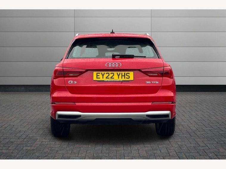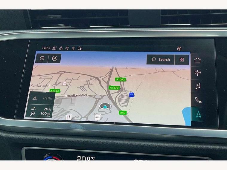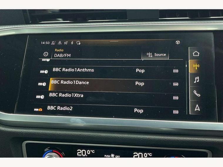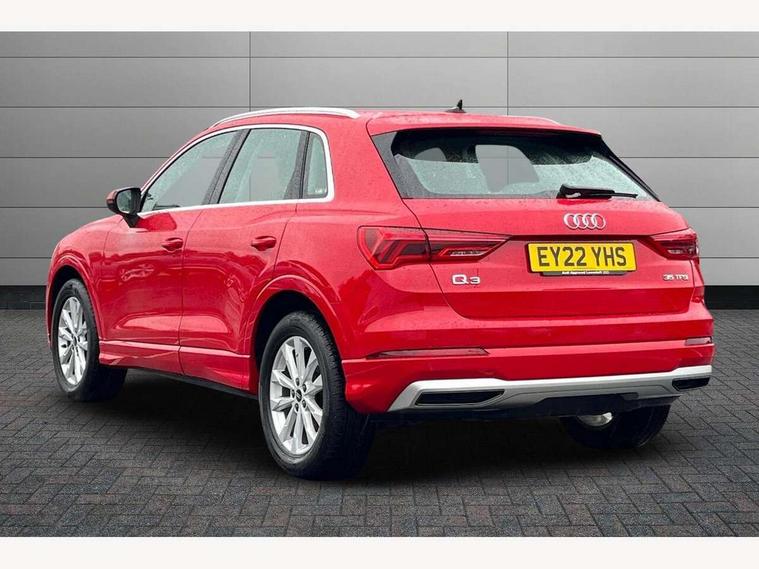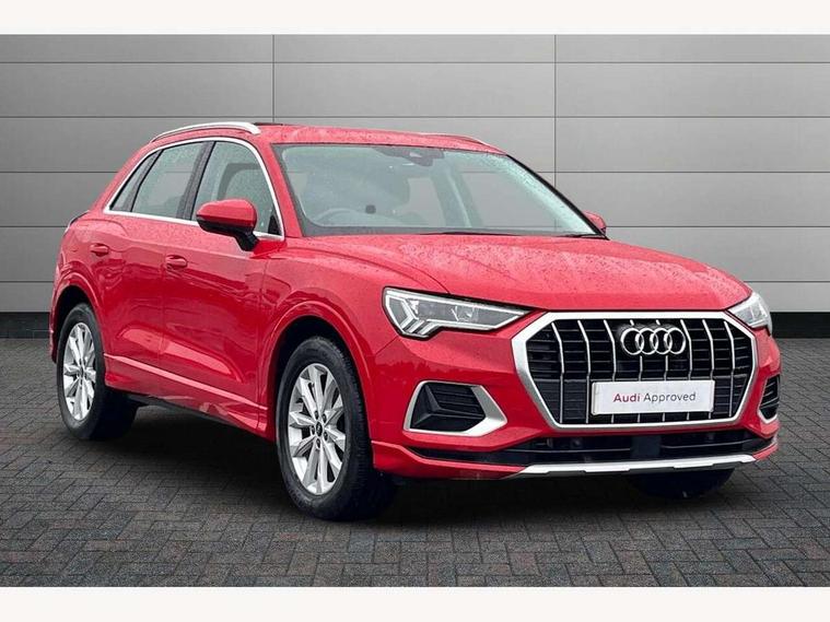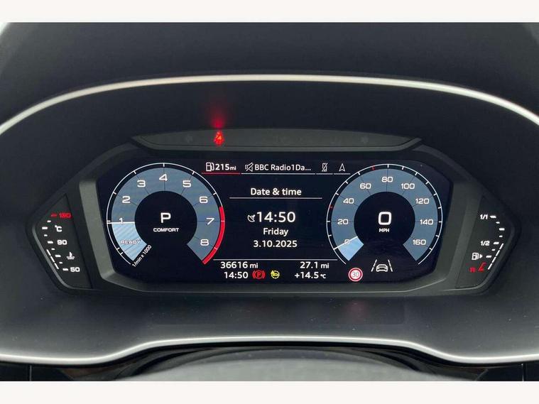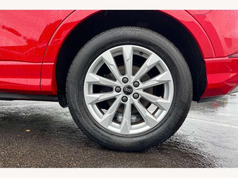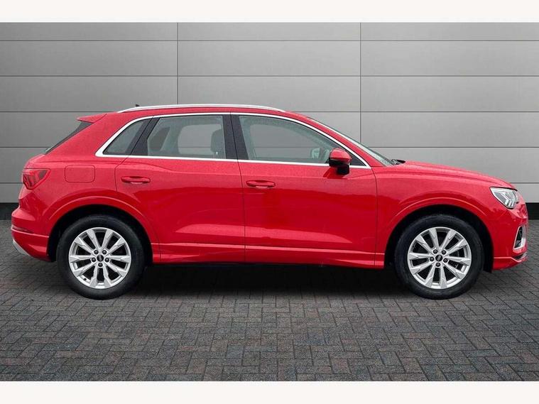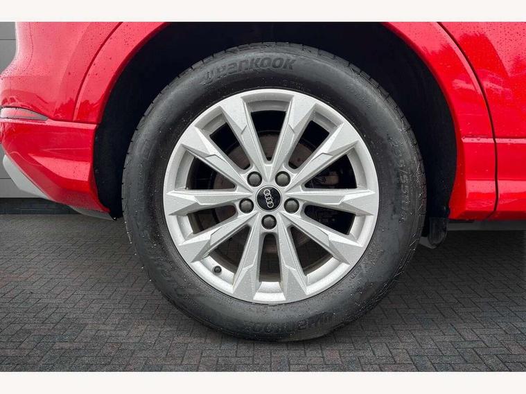 Amazon alexa Integration, Audi connect safety and service (e-call), Audi drive select, Audi lane departure warning, Audi smartphone interface includes wireless Apple carplay/Android Auto, Audi Virtual Cockpit - 10.25" display, Bluetooth interface, Camera based traffic sign recognition, MMI Navigation Plus with high resolution 10.1 inch touchscreen colour display, Power operated tailgate, Progressive steering, Service interval indicator, Start stop system with recuperation, Voice control system with natural language interaction, 48V Mild hybrid technology, Standard suspension, 2 USB-C ports with charge and data functions, 6 passive loudspeakers, DAB digital radio module, Acoustic windscreen, Aluminium roof rails, Aluminium window trim, Auto dimming frameless rear view mirror, Body coloured bumpers, Electrically folding, adjustable and heated door mirrors with integrated LED side indicators and kerb view function for passenger side, Front and rear electric windows, Front fog lights, Front side air inlets in matt selenite silver, Front spoiler in matt selenite silver, Grille vertical bars in aluminium silver/Matt, High gloss black finish B and C pillars, LED headlights with LED daytime running lights and dynamic rear indicator, LED rear lights, Rain and light sensors, Rear diffuser strip in matt selenite silver, Rear side wing doors, Rear wiper, Silver chrome grille surround, Third brake light, Titanium black radiator grille, Variable front intermittent wipers, 12V socket in rear centre console, 3 seat bench in 2nd row, 3 spoke multi-function leather steering wheel, 40:20:40 folding with manual adjustment for 60:40 forwards/backwards position and backrest angle, Aluminium door sill trims, Dual zone electronic climate control, Front and rear floor mats, Front and rear headrests, Front and rear roof module including reading lights, Front centre armrest, Glove compartment lighting, Height and reach adjustable steering wheel, ISOFIX child seat mounting for front passenger with airbag deactivation and outer rear seat including top tether attachment point for outer rear seats, Luggage compartment light, Lunar silver cloth headlining, Manual front seats with height adjustment, Single front passenger seat, Stainless steel luggage compartment sill finisher, Non smoking pack - Q3, 3x3 point rear seatbelts, 6 airbags - Driver, front passenger, curtain and side windows, Audi pre-sense front with pedestrain and cyclist recognition, Electrically operated child locks on rear doors, Electromechanical parking brake, Electronic stabilisation control including ABS, ASR and EDL, Front seatbelt reminder, Hill descent control, Hill hold assist, Pre sense basic, Seatbelt monitoring, Tyre pressure warning, Warning triangle and first aid kit, Anti theft alarm, Anti theft wheel bolts, Immobiliser, Remote central locking, Detail dashboard around MMI touch colour display in glass look, black with surround in aluminium look, Micrometallic silver inlay, Tool kit, Tyre repair kit,
