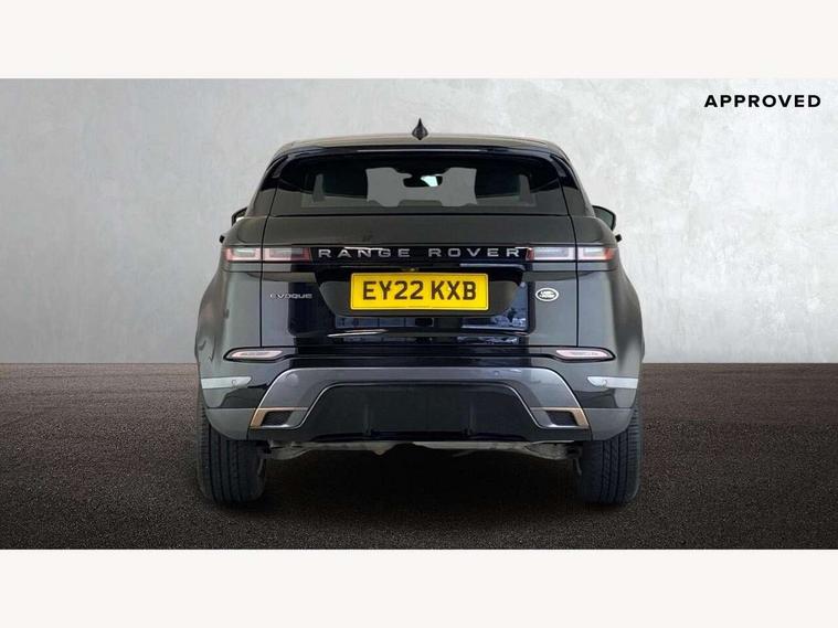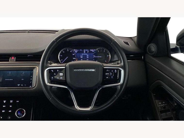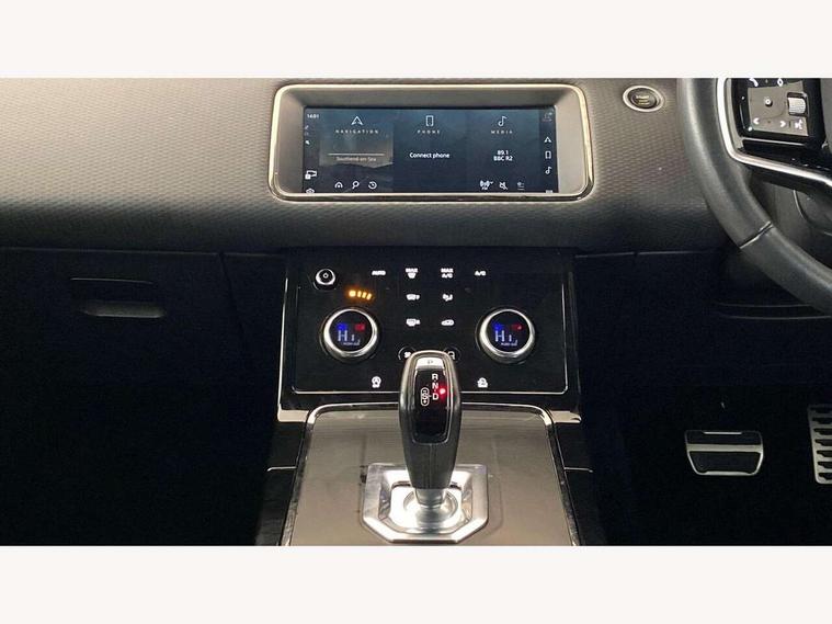 Android Auto, Apple car play, Bluetooth connectivity, Brake pad wear indicator warning light, Cruise control + speed limiter, Driver condition monitor, eCall emergency system, Electronic power assisted steering (EPAS), Front and rear parking aid, InControl remote, Land Rover InControl apps, Lane keep assist, Pivi pro connected includes upgraded infotainment, connected navigation pro, Nuance speech licence, Push button starter, Traffic sign recognition with adaptive speed limiter, Voice control system, All terrain progress control, Efficient Driveline, Passive suspension, Terrain Response 2 Auto, Digital Audio Broadcast radio-DAB, Steering wheel mounted controls, Auto headlights, Daytime running lights, Electric windows with one touch open/close and anti trap, Evoque and R-Dynamic badge, Flush deployable exterior door handles, Heated rear window with timer, Heated washer jets, Heated windscreen, Power fold, auto-dimming, heated door mirrors with approach lights and auto dimming driver side, Rain sensing windscreen wipers, Rear fog lights, Rear side wing doors, Rear wiper, Tailgate spoiler, Third brake light, 40:20:40 split folding rear seats with centre headrest and armrest, Ambient interior lighting, Bright metal pedals, Isofix system on outer rear seats, Overhead lighting console, Overhead stowage for sunglasses, Passive front head restraints, Rear air vents, Rear centre headrest, Rear head restraints, Satin chrome gearshift paddles, Single passenger seat, Sunvisors with illuminated vanity mirrors, Twin sliding front centre armrest, 3 rear 3 point seatbelts, Anti-lock braking system (ABS), Customer configurable autolock, DSC - Dynamic Stability Control, Electronic brake force distribution, Electronic parking brake, Electronic traction control, Emergency braking, Front and rear seatbelt reminder, Hill descent control, Hill launch assist, Low traction launch, Power operated child locks, Roll stability control, Six airbags - Driver and passenger airbags/driver knee airbag/front side airbag and curtain airbags, Torque vectoring brake, Tyre pressure monitoring system, Alarm, Immobiliser, Intrusion sensor, Locking wheel nuts,