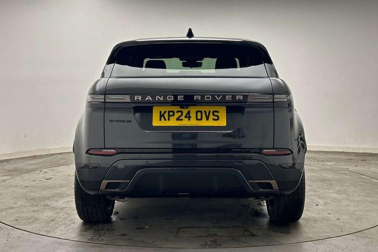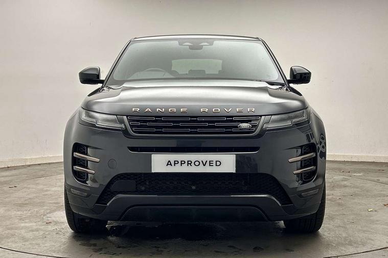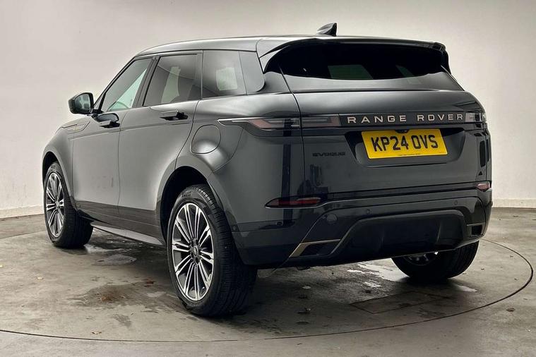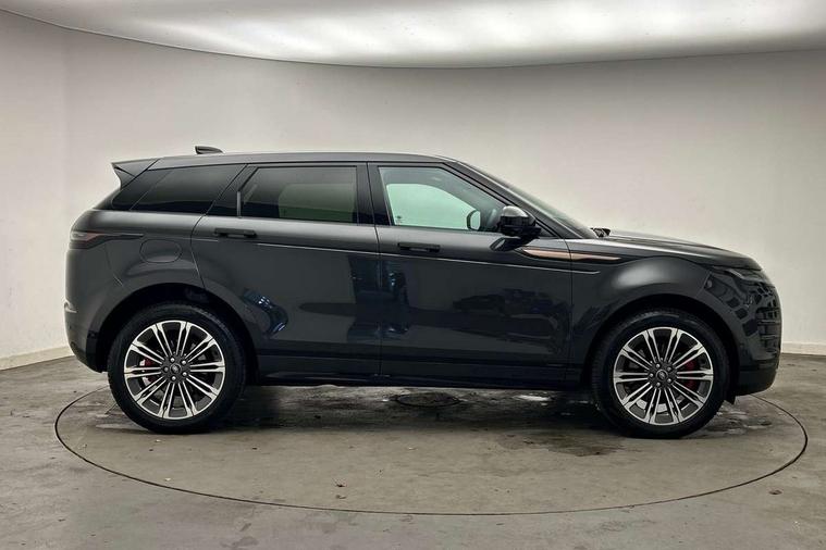 11.4" touch screen, 3D 360 degree surround camera with wade sensing, Adaptive cruise control, Android Auto, Apple car play, Blind spot assist, Bluetooth connectivity, Brake pad wear indicator warning light, Driver condition monitor, eCall emergency system, Eco mode, Electronic power assisted steering (EPAS), Front and rear parking aid, Head up Display, InControl remote, Interactive driver display, Land Rover InControl apps, Lane keep assist, Pivi pro connected includes diamond pivi variant, smart settings, connected navigation pro, nuance speech licence, Powered tailgate/boot lid, Rear collision monitor, Rear traffic monitor, Traffic sign recognition with adaptive speed limiter, Voice control system, Wireless device charging, All terrain progress control, Configurable dynamics, Electric rear axle drive, Home charging cable, Large fuel tank, Passive suspension, Public charging cable, Terrain Response 2, Digital Audio Broadcast radio-DAB, Steering wheel mounted controls, Acoustic laminated windscreen, Auto headlights, Automatic headlight levelling, ClearSight interior rear view mirror, Electric windows with one touch open/close and anti trap, Flush deployable exterior door handles, Front and rear recovery eyes, Front fog lights, Heated rear window with timer, Heated washer jets, Heated windscreen, Pixel LED headlights with signature DRL and LED tail Lights, Power fold, auto-dimming, heated door mirrors with approach lights and auto dimming driver side, Rain sensing windscreen wipers, Range rover branding illuminated metal tread plates in loadspace and row 1 with brand name script and metal in row 2, Rear animated directional indicators, Rear fog lights, Rear side wing doors, Rear wiper, Side repeater indicators in mirror, Sliding panoramic roof with powered sunblind, Tailgate spoiler, Third brake light, Winter wiper park position, 14 way driver memory electric front seats with 2 way manual headrests + 4 way lumbar support, bolsters, 40:20:40 split folding rear seats with centre headrest and armrest, Ambient interior lighting, Bright metal pedals, Cabin Air Purification plus, Configurable cabin lighting, Customer configurable single point entry, Electrically adjustable steering column with memory function and easy entry/exit, Front and rear cupholders, Heated and cooled front seats, Heated rear seats, Heated steering wheel, Isofix system on outer rear seats, Overhead lighting console, Overhead stowage for sunglasses, Passive front head restraints, Premium carpet mats, Rear air vents, Rear head restraints, Satin chrome gearshift paddles, Single passenger seat, Sunvisors with illuminated vanity mirrors, Twin sliding front centre armrest, Online pack with data plan - Evoque, Power socket pack 2 - Evoque, 3 rear 3 point seatbelts, Anti-lock braking system (ABS), Brake hold function, Customer configurable autolock, DSC - Dynamic Stability Control, Electronic brake force distribution, Electronic parking brake, Electronic traction control, Emergency braking, Front and rear seatbelt reminder, Hill descent control, Hill launch assist, Low traction launch, Occupant protection assist, Passenger seat occupant detector, Power operated child locks, Roll stability control, Six airbags - Driver and passenger airbags/driver knee airbag/front side airbag and curtain airbags, Torque vectoring brake, Tyre pressure monitoring system, Alarm, Immobiliser, Intrusion sensor, Keyless entry, Locking wheel nuts, All season tyres,