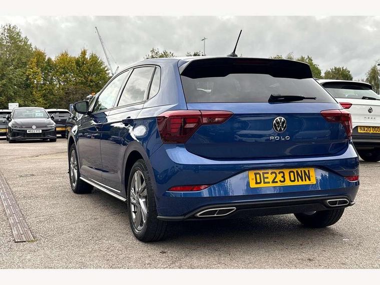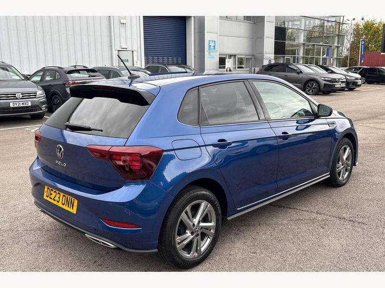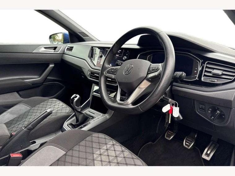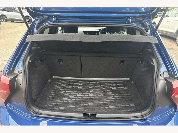 Adaptive cruise control without follow-to-stop and speed limiter, Bluetooth mobile phone interface, Digital Cockpit Pro with 10.25" Display, Driver alert system, Dynamic road sign display, Emergency call service, Power assisted speed sensitive steering, Preparation for We connect and We connect plus, Speedo and rev counter, electronic odometer, trip, service interval display and fuel gauge, Standard rear axle, Travel Assist - Lane keeping system and traffic jam assist, Travel assist including emergency assist, Trip computer, Warning signal and warning light for front and rear seatbelts not fastened, Washer fluid level indicator, Wireless app connect, Front wheel drive, Rear shock absorpion, Start-stop system with battery regeneration (recuperation - energy recovery during braking), DAB Digital radio, Diversity antenna for FM reception, Front and rear 6 speakers, Body colour bumpers, Body colour door handles, Electric front windows, Front scuff plates with R-Line logo, Heat insulating darkened glass in side and rear windows, Heat insulating glass windscreen, Power folding adjustable/heated exterior mirrors and front passenger exterior mirror lowering function, Rear electric windows, Rear fog light, Rear side wing doors, Rear windscreen washer and wiper with interval delay, Third brake light, 12V power socket in centre console, 2 USB-C ports in the front, 2 USB-C charging sockets on the center console in the rear, 3 rear head restraints, 60/40 split folding rear seat and rear seat bench not split, Air care climatronic air conditoning system with active combination filter and 2-zone temperature control, Black roof lining, Chrome plated radiator grille inserts, air vent surrounds and light switch surrounds, Door and side trim panel, Driver and front passenger seat height adjustment, Driver/passenger sunvisors with illuminated vanity mirrors, Front + rear carpet mats in recycled material, Front centre armrest, Front footwell illumination, Front seat backrest storage pockets, Front sports comfort seats, Handbrake lever handle in leather, Headliner in recycled material, Isofix child seat preparation easy-fit (for two outer rear seats, and front passenger seat) compatible with I-size, Karoso artvelours cloth upholstery, Leather trimmed gear knob, LED interior light with switch off delay and dimmer, 2 reading lights front and rear, Luggage compartment cover, Luggage compartment floor, Luggage compartment lighting, Lumbar adjustment for front seats, Multifunction steering wheel, Single front passenger seat, Stainless steel pedals, Standard pedal cluster, Light and sight pack - Polo R-Line/Black Edition, 3 point height adj front seatbelts + pretensioners, 3x3 point rear seatbelts, ABS, Driver and front passenger airbag with front passenger airbag deactivation, Drivers and front passengers safety optimised head restraints, ESC (Electronic stability control) + EDL (Electronic Differntial lock) and ASR (Traction control), Extended and predictive pedestrian/ cyclist protection, Front curtain and side airbags with center airbag, Hill hold control, Manual child lock in rear doors, Single tone horn, Tyre pressure loss indicator, Alarm with interior protection, Anti-theft alarm system with interior monitoring, backup horn, and towing protection, Anti-theft wheel bolts, Electronic engine immobiliser, Chrome applications on rotary light, mirror adjustment, window regulator switches, outlet with frame in black, Dark grey anodised matt decorative inserts in dash and front door panels, Low rolling resistance tyres,