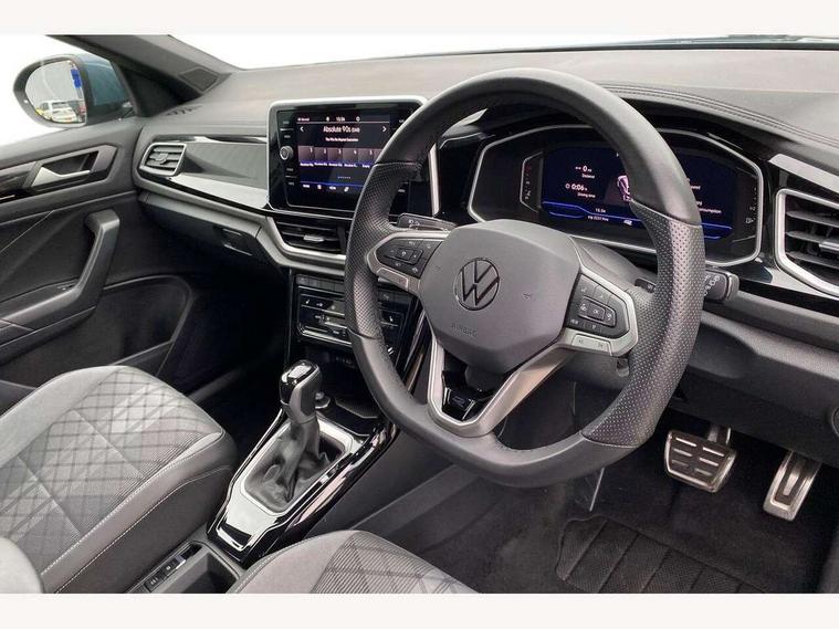 10.25" Digital cockpit pro, Advanced driver attention and drowsiness monitor, Emergency call service, Lane keeping system Lane Assist, Mobile phone interface, Modified key software - reduce switch off time for key status change to Long no motion, Online services, Park assist including front and rear parking sensors, Service interval indicator, Tailgate/trunk lid release from outside, Think blue trainer driver tips and journey analysis, Warning sound and light for front seatbelts unfastened, Wireless app connect, Battery regeneration during braking, Start/stop function with battery regeneration, DAB Digital radio, Diversity antenna for FM reception, Front and rear 6 speakers, Music playback - MP3, WMA and AAC files, Premium USB cable in choice of either Apple or Android smartphone compatibility, SD card slot, Simultaneous pairing of 2 compatible mobile devices, Title and cover art display, We Connect and We Connect Plus functionality, Auto dimming interior rear view mirror, Automatic hazard lights activation under emergency braking, Automatic headlight control with LED separate daytime running lights with coming/leaving home function, Body coloured exterior mirror housings and door handles, Electrically adjustable and heated door mirrors, Extended roof spoiler, Exterior mirrors aspherical on driver side, convex on front passenger side, External USB type C socket and charging sockets, Front windscreen wiper with intermittent wipe and 4 position delay, Heated rear window, LED 3rd brake light, LED rear combination lamps, LED rear number plate lights, Power windows with comfort operation and circuit breaker, Privacy glass for rear side windows and rear window, R-Line design body coloured bumpers, Rain sensor, Rear exhaust tailpipe, Rear fog light on one side and reversing lights on both sides, Rear side wing doors, Rear wash/wipe with intermittent wipe setting, Remote electrically foldable door mirrors, puddle lights and reverse activated passenger's door mirror, 12V power socket in centre console, 3 rear head restraints, 3 seat bench in 2nd row, 4 load lashing points in luggage compartment, Air care climatronic air conditoning system with active combination filter and 2-zone temperature control, Black roof lining, Chrome plated decorative trims, Chrome plated radiator grille inserts, air vent surrounds and light switch surrounds, Door and side trim panel with leatherette insert, Front + rear carpet mats, Front centre armrest, Front cupholders x 2, Front footwell illumination, Front reading light, Front scuff plates with R Line logo, Front seat back storage pockets, Glove compartment door with light, Instrument lighting, white adjustable panel illumination, Interior ambient lighting and surround lighting, Interior light delay, Isofix child seat preparation, Leather gearshift handle, Load-through provision with cup holder when folded down ('Unsplit rear seat bench, split folding backrest, with centre armrest), Luggage compartment lighting, Single front passenger seat, Stainless steel pedals, Storage compartment in left and right luggage area, Storage compartment in rear doors, Storage compartments in driver and front passenger doors, Sunvisors with illuminated vanity mirrors, Variable boot floor, height adjustable and removable, Driver assistance pack without proactive passenger protection - T-Roc, 3 point height adj front seatbelts + pretensioners, 3 point seatbelts in outer rear with ECE label, ABS, Child locks on rear doors, City emergency braking and pedestrian monitoring, Driver and front passenger airbag with front passenger airbag deactivation, Driver and front passenger safety-optimised head restraints, Drivers seatbelt reminder, Electronic parking brake, Electronic Stability Control (ESC) inc EDL (Electronic Differential Lock) and ASR (Traction Control), Front and rear passengers curtain airbag system including front side airbags, Hill start assist, Predictive pedestrian protection, Rear disc brakes, Two tone horn, Tyre pressure loss indicator, Volkswagen roadside assistance, Piano black decorative inserts in dashboard and front door trim panels, Trims for alloy wheels,