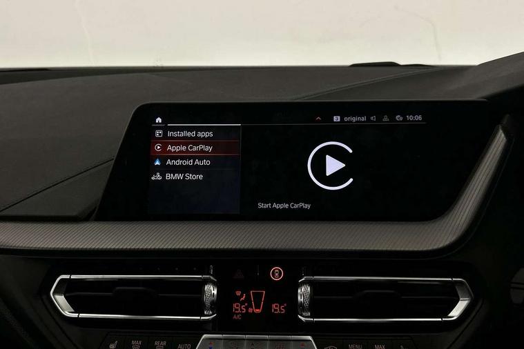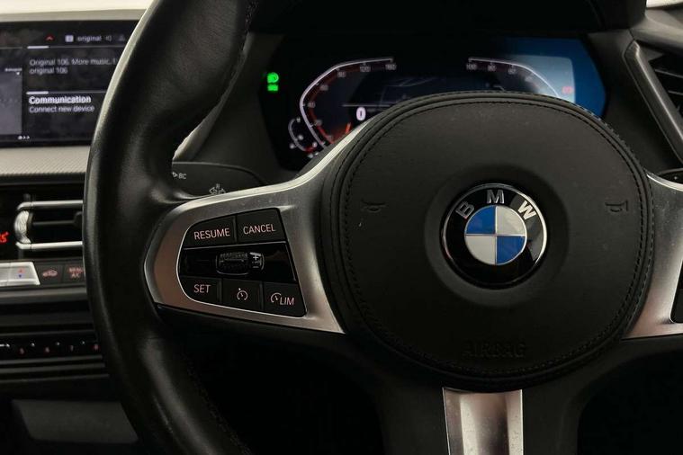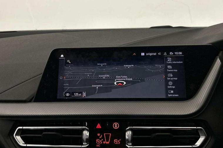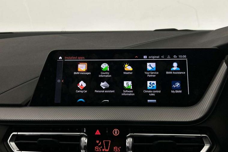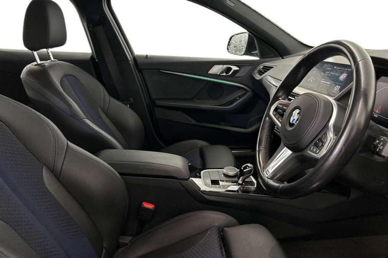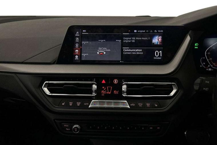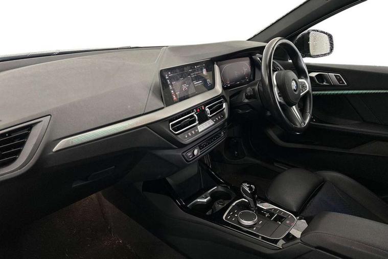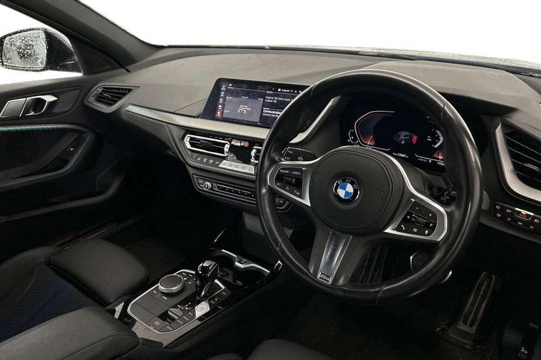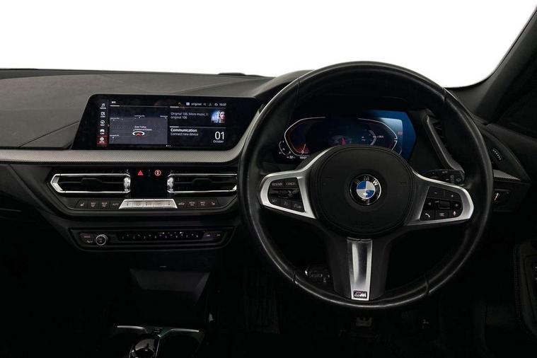 Active guard plus, Attentiveness assist, BMW ConnectedDrive online services, BMW Teleservices, Check Control warning system for monitoring of lights and door/luggage compartment open warning, Cruise control with brake assist, Eco pro mode, Front axle single joint with specific axle kinematics to minimise drive influences on steering + provide increased rigidity agile driving behaviour, Integrated owners handbook, Lane departure warning system, Oil sensor for level and grade, On board computer, Optimum shift indicator, Personal Profile, Pull away assistant, Rigidly mounted rear subframe - Multi link construction with separate spring / damper configuration and excellent driving characteristics, Speed limit Info including no-overtaking indicator, Speed limiter, Aluminium lightweight construction, Anti roll bar front and rear, Balancer shaft, Double VANOS twin scroll turbocharging system, Drive Performance Control, Electronic differential lock, High precision injection, M sport suspension, Petrol Particulate Filter, Twin tube gas filled shock absorbers with degressive characteristic curve, VALVETRONIC engine management, DAB Digital radio, Auto dimming rear view mirror, Automatic headlight beam throw control, Automatic windscreen wipers and automatic headlight, Body colour door handles, Body colour mirror caps, Body colour roof trims, Chrome 'M' logo side designation, Chrome exhaust twin tailpipes round 90mm in left, Chrome kidney grille frame with Satin Aluminium struts, Direction indicator side lights in exterior mirrors, Fading support, Folding side mirrors with auto dimming/folding wing mirrors with auto dimming, Follow me home headlights, Front and rear bumper system with replaceable deformation elements, Front and rear electric windows with open and close fingertip control, anti trap facility and comfort closing, Front door sill finishers in black plastic with M designation in metallic look, Green tinted heat protection glazing, Heated, electrically adjustable exterior mirror aspheric on driver side, convex on passenger side, High gloss shadowline window frame, Recess cover mirror frames and B/C pillar embelisher trim, High level third brake light, Integrated front windscreen with washer jets, LED daytime running lights, LED eyebrow turn indicators, LED front fog lights, LED Headlights, Lightweight engineering, Matt black air guide grilles, Matt black wheel arch trim, Model designation on electric bootlid, Nearside reverse light in rear light cluster, Preparation for high beam assistant, Rear fog lights, Rear side wing doors, Rear window wiper, Shark fin antenna, Trailer stabilisation logic, Visible VIN plate, Welcome lighting, 12V power socket in front centre console with blanking plug, 3 rear seat head restraints, 3 seat bench in 2nd row, 3 spoke sports leather steering wheel with black leather and stitching, pearl chrome decorative finish, specific M Badge, Anthracite headlining, Black boot net with lashing eyes, Cargo function on 2nd seat row, Child seat ISOFIX attachment for two outer rear seats and front passenger seat with anchorage points, Conditioned based service, Driver and front passenger seat heating, Folding rear clothes hook, Four grab handles integrated in roof lining, Front and rear door pockets with bottle holders, Front and rear side armrest integrated into door trim, Front armrest, Front sports seats, Glove compartment, Height adjustable front head restraints, Luggage compartment for bag hooks on left and right, foldable luggage compartment liner and four lashing eyelets, Manual adjust steering wheel, Multi-function controls for steering wheel, Single front passenger seat, Storage compartment in centre console, Sun visors with vanity mirrors and insert tab, Two front centre console cupholders, Two zone automatic air conditioning, Velour floor mats, Additional interior lighting pack - 1 Series, BMW live cockpit professional pack- 1 Series, Connected pack professional - 1 Series, Interior lights pack - 1 Series, M Sport exterior styling aerodynamics pack - 1 Series, 2 tone horn, 3 point seatbelts on all seats, front pyrotechnic belt tensioners, stopper and belt force limiters, rear coded belt buckles, Airbags - Front driver/passenger, front and rear curtain head protection, front side, manual deactivation of front passenger airbag, Anti lock braking system (ABS) with brake assist, BMW emergency call, Brake drying, Braking readiness, Child proof locking system in rear door, City braking function, Comfort modes, Cornering brake control, Crash sensor activating central locking release, hazard warning lights, fuel cut off, interior lighting + activation of safety battery terminal clamp, Driver and front passenger seat belt security check, Dynamic stability control + (DSC+), Dynamic Traction Control - DTC, Electrically operated hand brake including automatic hold function, Front and rear disc brakes, Seatbelt warning, Side impact protection, Tyre pressure monitoring system, Warning triangle and first aid kit, Central locking switch for all doors, fuel filler cap and luggage compartment, Deadlocking function system to all doors, Drive away locking system on all doors and luggage compartment with de-activated in iDrive settings, Locking wheel bolts, Remote control with integrated key with High-gloss Black inlay and M designation and 1 button for open/ close lock, window, open luggage compartment, Start/stop button illuminated in centre console with keyless engine start and auto start stop deactivation button, Thatcham Cat.1 alarm and immobiliser, Wheel slip limitation close to the actuator (ARB), Contrast stitching on instrument panel, Electrically powered 12V compressor, Reduced rolling resistance tyres,