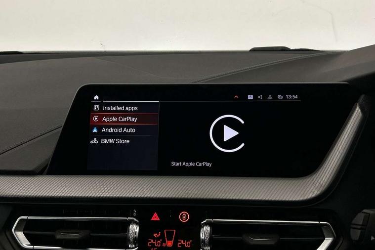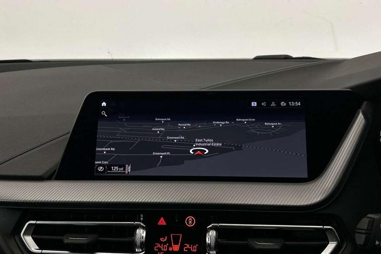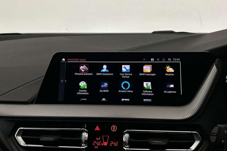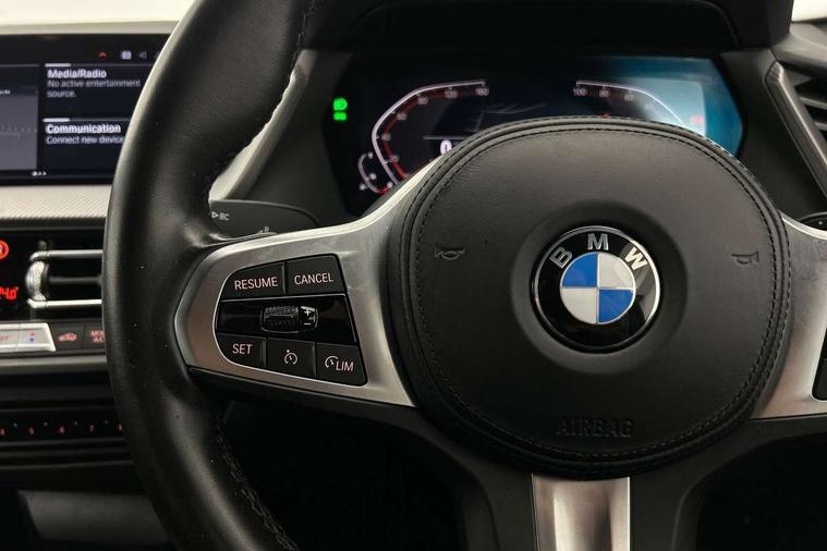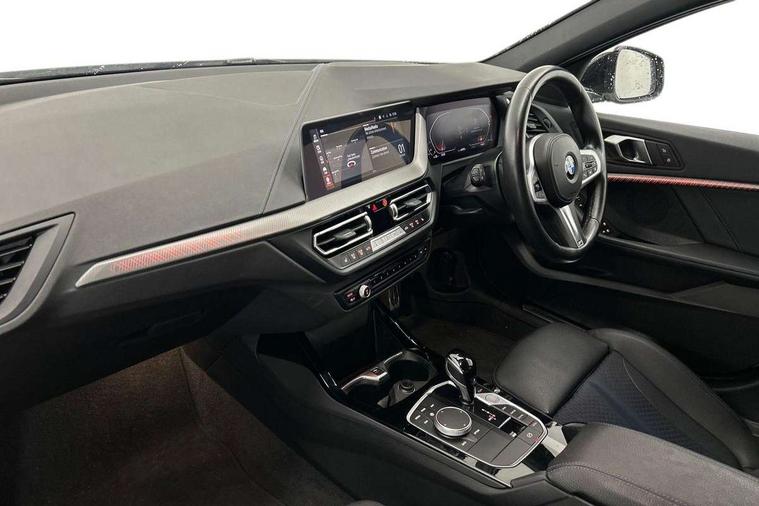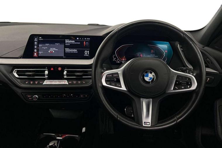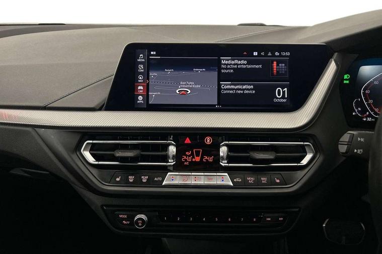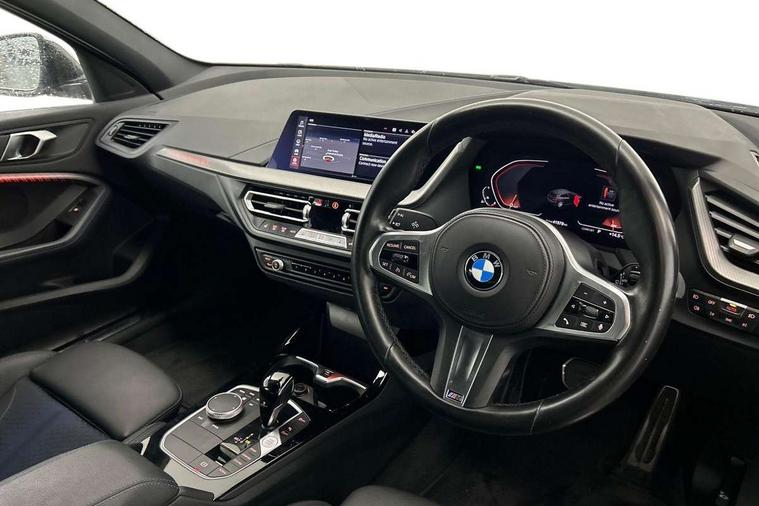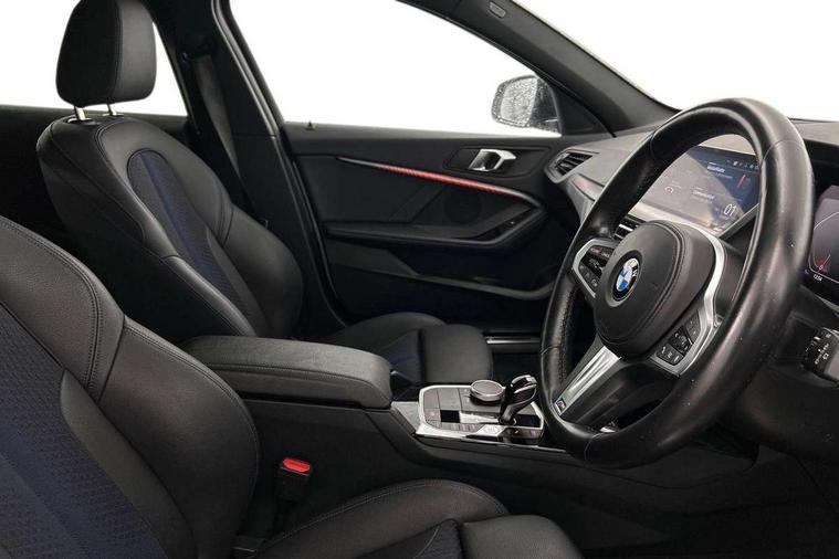 Active guard plus, Attentiveness assist, BMW ConnectedDrive online services, BMW Teleservices, Check Control warning system for monitoring of lights and door/luggage compartment open warning, Cruise control with speed limiter, Eco pro mode, Front axle single joint with specific axle kinematics to minimise drive influences on steering + provide increased rigidity agile driving behaviour, Integrated owners handbook, Lane departure warning system, Oil sensor for level and grade, On board computer, Optimum shift indicator, Personal Profile, Pull away assistant, Rigidly mounted rear subframe - Multi link construction with separate spring / damper configuration and excellent driving characteristics, Speed limit Info including no-overtaking indicator, Aluminium lightweight construction, Anti roll bar front and rear, Balancer shaft, Double VANOS twin scroll turbocharging system, Drive Performance Control, Electronic differential lock, High precision injection, M sport suspension, Petrol Particulate Filter, Twin tube gas filled shock absorbers with degressive characteristic curve, VALVETRONIC engine management, DAB Digital radio, Auto dimming rear view mirror, Automatic headlight beam throw control, Automatic windscreen wipers and automatic headlight, Body colour door handles, Body colour mirror caps, Body colour roof trims, Chrome 'M' logo side designation, Chrome exhaust twin tailpipes round 90mm in left, Chrome kidney grille frame with Satin Aluminium struts, Direction indicator side lights in exterior mirrors, Electrically adjustable exterior mirror with mirror adjustment switch on drivers armrest and aspheric on driver side, convex on passenger side, Fading support, Folding side mirrors with auto dimming/folding wing mirrors with auto dimming, Follow me home headlights, Front and rear bumper system with replaceable deformation elements, Front and rear electric windows with open and close fingertip control, anti trap facility and comfort closing, Front door sill finishers in black plastic with M designation in metallic look, Green tinted heat protection glazing, High gloss shadowline window frame, Recess cover mirror frames and B/C pillar embelisher trim, High level third brake light, Integrated front windscreen with washer jets, LED daytime running lights, LED eyebrow turn indicators, LED front fog lights, Lightweight engineering, Matt black air guide grilles, Matt black wheel arch trim, Model designation on electric bootlid, Nearside reverse light in rear light cluster, Preparation for high beam assistant, Rear fog lights, Rear side wing doors, Rear window wiper, Shark fin antenna, Trailer stabilisation logic, Visible VIN plate, Welcome lighting, 12V power socket in front centre console with blanking plug, 3 rear seat head restraints, 3 seat bench in 2nd row, 3 spoke sports leather steering wheel with black leather and stitching, pearl chrome decorative finish, specific M Badge, Anthracite headlining, Black boot net with lashing eyes, Cargo function on 2nd seat row, Child seat ISOFIX attachment for two outer rear seats and front passenger seat with anchorage points, Conditioned based service, Driver and front passenger backrest net on rear, Driver and front passenger seat heating, Driver side folding compartment in instrument panel, Folding rear clothes hook, Four grab handles integrated in roof lining, Front and rear door pockets with bottle holders, Front and rear side armrest integrated into door trim, Front armrest, Front sports seats, Glove compartment, Height adjustable front head restraints, Luggage compartment for bag hooks on left and right, foldable luggage compartment liner and four lashing eyelets, Manual adjust steering wheel, Multi-function controls for steering wheel, Single front passenger seat, Storage compartment in centre console, Storage compartment in luggage compartment, Stowage of the parcel shelf in luggage compartment trim, Sun visors with vanity mirrors and insert tab, Two front centre console cupholders, Two zone automatic air conditioning, Type C two USB ports in rear centre console, Velour floor mats, Additional interior lighting pack - 1 Series, BMW live cockpit professional pack- 1 Series, Connected pack professional - 1 Series, Interior lights pack - 1 Series, M Sport exterior styling aerodynamics pack - 1 Series, 2 tone horn, 3 point seatbelts on all seats, front pyrotechnic belt tensioners, stopper and belt force limiters, rear coded belt buckles, Airbags - Front driver/passenger, front and rear curtain head protection, front side, manual deactivation of front passenger airbag, Anti lock braking system (ABS) with brake assist, BMW emergency call, Brake drying, Braking readiness, Child proof locking system in rear door, City braking function, Comfort modes, Cornering brake control, Crash sensor activating of airbags, Unlocking doors, hazard warning lights, fuel cut off, interior lighting+activation of safety battery terminal clamp, Driver and front passenger seat belt security check, Dynamic stability control + (DSC+), Dynamic Traction Control - DTC, Electrically operated hand brake including automatic hold function, Front and rear disc brakes, Seatbelt warning, Side impact protection, Tyre pressure monitoring system, Warning triangle and first aid kit, Central locking switch for all doors, fuel filler cap and luggage compartment, Deadlocking function system to all doors, Drive away locking system on all doors and luggage compartment with de-activated in iDrive settings, Locking wheel bolts, Remote control with integrated key with High-gloss Black inlay and M designation and 1 button for open/ close lock, window, open luggage compartment, Start/stop button illuminated in centre console with keyless engine start and auto start stop deactivation button, Thatcham Cat.1 alarm and immobiliser, Wheel slip limitation close to the actuator (ARB), Contrast stitching on instrument panel, 18" Burnished M double spoke bi-colour alloy wheels finished in orbit grey - styl
