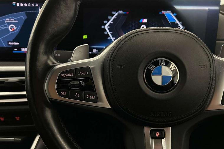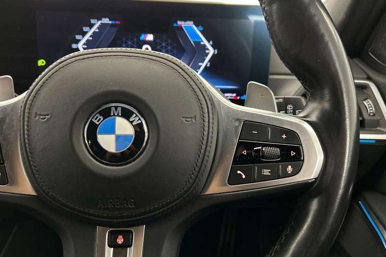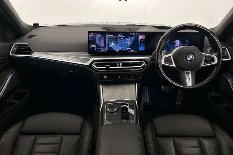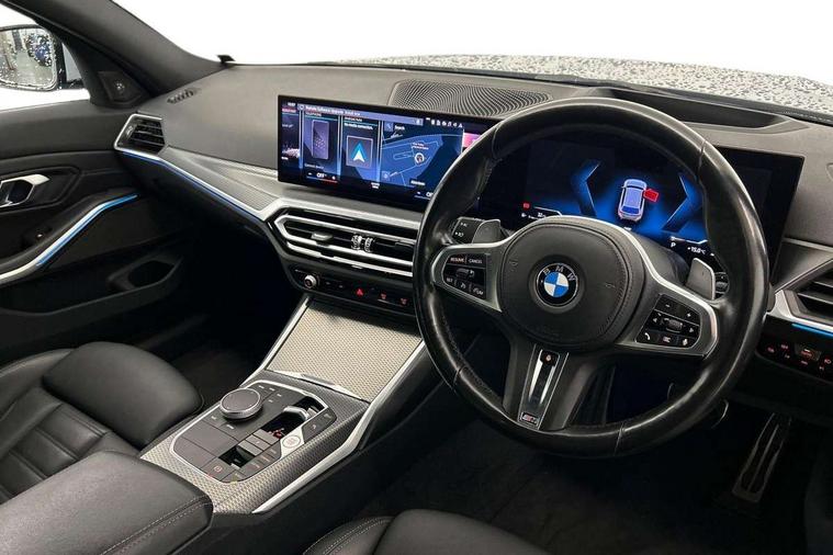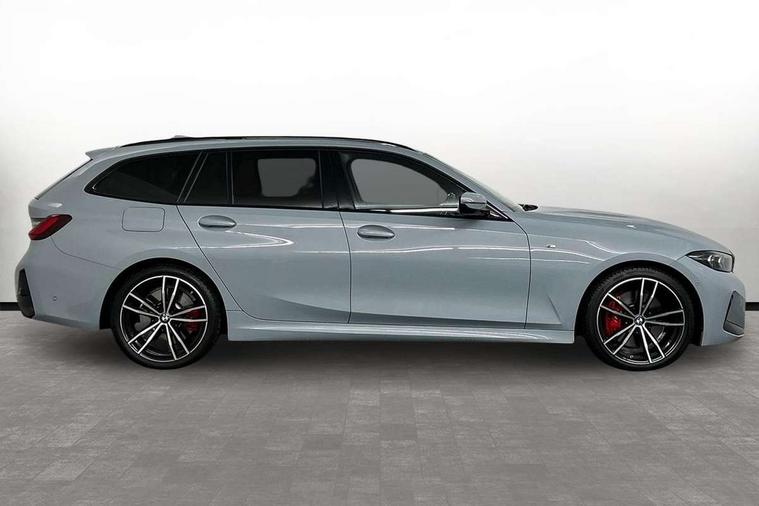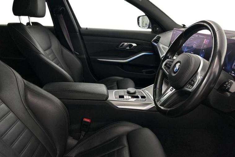 Active guard plus, Attentiveness assist, Automatic Start/stop button, BMW iDrive, BMW Teleservices, Condition based service, ConnectedDrive Services, Driving experience switch, Live cockpit plus with Navigation + 12.3" instrument display + 14.9" display, Intelligent voice assist, 2 USB, 4G LTE connect, Oil sensor for level and grade, Preparation for driver assistance, Shifting point display, Smartphone integration, Variable sport steering, 48V Mild hybrid technology, Double joint spring strut front axle, Fuel tank breather system, Larger capacity fuel tank, M sport suspension, Sport automatic transmission with steering-wheel mounted gearshift paddles and launch control, DAB tuner, 3rd brake light, Acoustic glazing, Automatic headlight beam throw control with load dependent regulating reaction, dynamic compensation of braking dive and acceleration squat, BMW emblem, engine compartment lid and tailgate, Body colour roof fin, Door sill strips, Electric windows - front and rear, with open/close fingertip control, anti-trap facility and comfort closing, Follow me home headlight function, Front and rear bumper system with replaceable deformation elements, Front apron plastic in body colour, Fuel filler flap - right rear in body colour, Heated washer jets, Illuminated bow type door handles in body colour drivers side with door lock, Interior rear view electrochromatic mirror with automatic anti dazzle function, LED headlights with LED daytime running lights and LED turn indicator, LED rear lights, Licence plate panel integrated into front bumper and tailgate, Matt black B-pillar finsher, Matt black window recess cover, Model designation on right side of tailgate, One piece front bumper cover including towing eye cover in body colour, Rain sensor with automatic headlight activation, Rear side wing doors, Rear wiper, Reversing lights, Side frame decorative moulding black matt, Visible exhaust tailpipe finisher, Welcome lights in interior and door handle area, 12V power socket in front storage compartment, 2 front cupholder in centre console with clamping elements and matt black inlay, 3 seat bench in 2nd row, 3 zone automatic air conditioning, 40:20:40 split folding rear seat with loading system, Anthracite headlining, Armrest integrated in front and rear door trim + front centre console armrest, BMW ID, Cruise control operation in steering wheel, Driver backrest width adjustment, Folding rear centre armrest with 2 cupholders, Front and rear door exit lighting (left / right), Front and rear footwell lighting, Front and rear headrests, Front and rear reading lights, Front and rear velour floor mats, Front sport seats, Heated front seats, Height adjustable mechanically and infinitely variable steering column, Illuminated armrest storage compartment, Illuminated glove compartment, Illuminated luggage compartment, Lashing eyelets in luggage compartment, LED ambient lighting with welcome carpet light, M Sport multifunction leather steering wheel, Make-up mirror lights, Single front passenger seat, Standard seat for driver and passenger with manual adjustment, Sunvisors with vanity mirrors and ticket pocket, Toolkit located in luggage compartment, Connected pack professional - 3 Series Saloon/Touring, Interior and exterior mirror pack - 3 Series Touring/Saloon, M Aerodynamics package - 3 Series Saloon/Touring, M sport exterior styling pack - 3 Series Saloon/Touring, Storage compartment pack - 3 Series Saloon/Touring, 3x3 point rear seatbelts, BMW emergency call, Child locks on rear doors, Crash sensor activating of airbags, Unlocking doors, hazard warning lights, fuel cut off, interior lighting+activation of safety battery terminal clamp, Driver and front passenger with seat occupancy detection for driver's and passenger side, Driver and passenger side airbags, body protection at side and airbags deploy from seat backrests, Dynamic brake control, Dynamic stability control + (DSC+) - Anti-lock Braking System (ABS) with brake assist and cornering brake control + Automatic Stability Control (ASC), Dynamic Traction Control - DTC, Electric parking brake including automatic hold function and automatic release of the parking brake when driving off, Electronic differential lock control (EDLC), Head airbags in 1st and 2nd row, head protection at side, curtain airbags open from headliner above 1st and 2nd row, Plastic fuel tank, Side impact protection, Tyre pressure monitoring with three level warning strategy, Ventilated front and rear disc brakes, Warning triangle and first aid kit, Alarm system, Centre lock switch, Closing system with central locking, Electronic vehicle immobiliser,