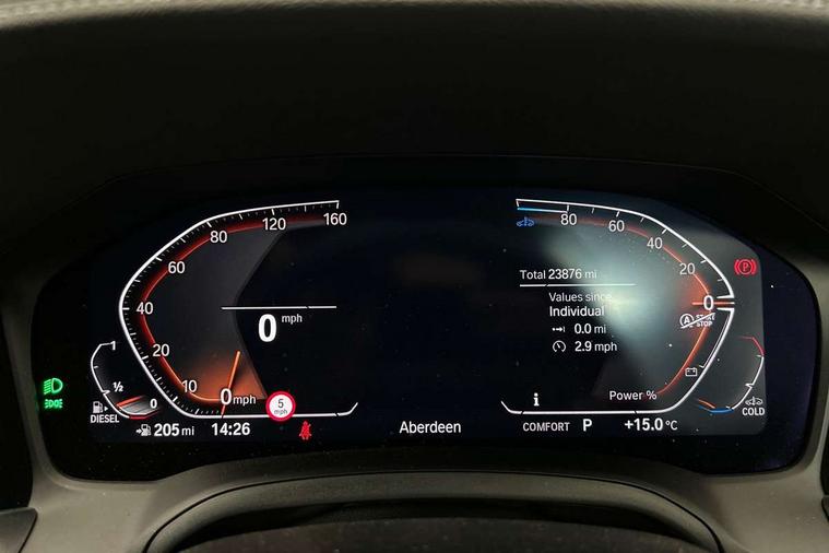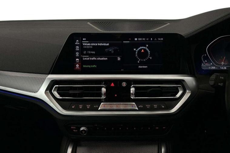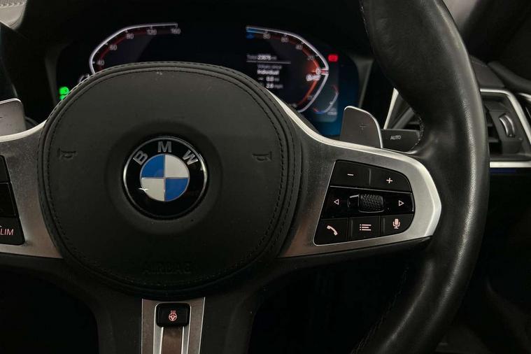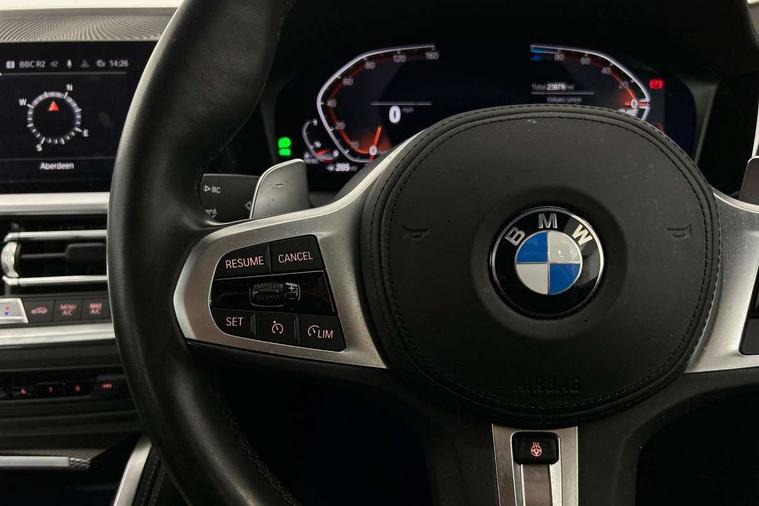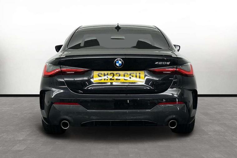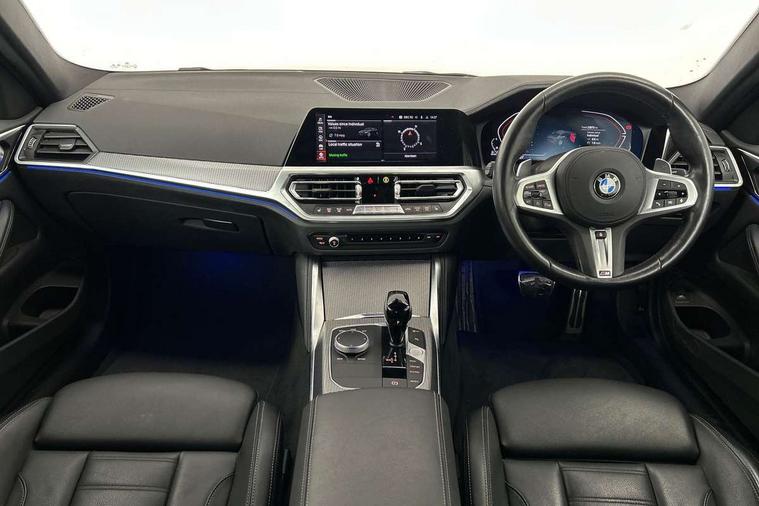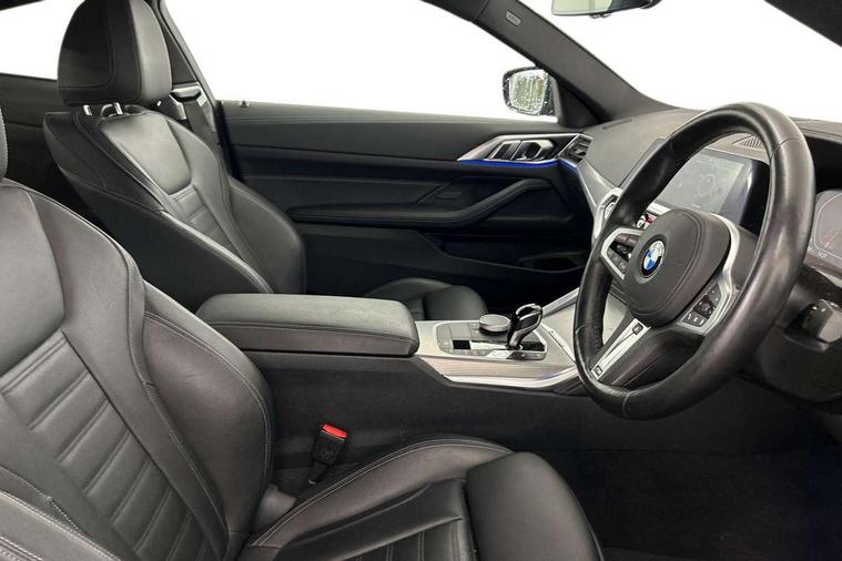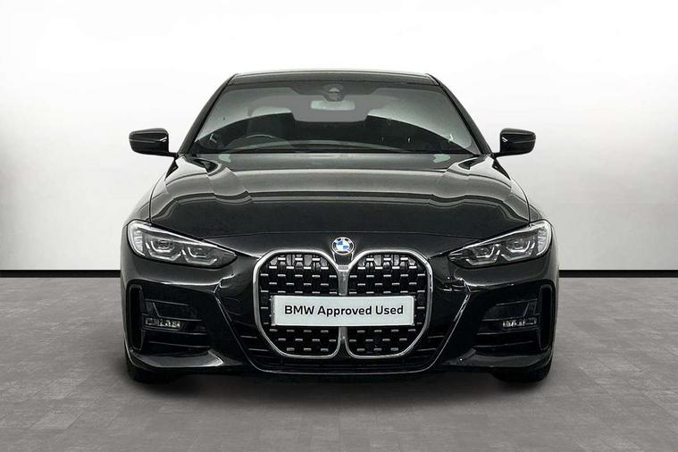 Active guard plus, Attentiveness assist, Auto start-stop, BMW ConnectedDrive online services, BMW Live Cockpit Professional Nav with 12.3" instrument display + 10.25" display, Intelligent Voice Assist, BMW OS 7, HDD, 2USB, 4G LTE connect, BMW service history, BMW Teleservices, Brake pad wear indicator in front and rear, Check Control warning system for monitoring of lights and door/luggage compartment open warning, Condition based service, Cruise control with brake assist, Electric power steering with Servotronic steering optimised at all speed ranges, Gearshift time display in manual mode, iDrive controller on centre console, Instrument cluster with speedometer with mph readout, tachometer, fuel gauge and oil temperature gauge, Integrated owners handbook, Oil sensor for level and grade, warning by check control system, On board computer - average speed, fuel consumption, outside temp display with acoustic warning, clock/date, service interval, odometer/trip meter, Optimum shift indicator, Touch control functionality for BMW Live Cockpit Professional Nav, Variable sport steering, 48V Mild hybrid technology, 8 speed automatic steptronic transmission with gearshift paddles, Balanced 50/50 weight distribution, Diesel particulate filter, Drive performance control - ECO PRO, comfort and sport modes, Incorrect fuelling protection, Low centre of gravity, M sport suspension, Stroke dependent dampers, DAB tuner, Electronic service booklet, 3rd brake light, Acoustic glazing, Automatic headlight beam throw control with load dependent regulating reaction, dynamic compensation of braking dive and acceleration squat, Automatic windscreen wipers and automatic headlight, Automatically dimming electrochromatic rear view mirror, BMW emblem on engine compartment lid and tailgate, BMW kidney grille with mesh grille front side of the nuggets in matt aluminium and frame in chrome high gloss, Body colour fuel filler flap, Body colour M sport rear spoiler, Body colour roof fin, Brushed aluminium inserts in the front door sill finishers with BMW designation, Dynamic brake lights, Electric windows - front and rear, with open/close fingertip control, anti trap facility and comfort closing function all round, Exhaust tailpipe - split left and right, Exterior mirrors - electrically folding with anti-dazzle, Fading support, Follow me home headlights, Front and rear bumper system, Front apron plastic in body colour, Green tinted heat protection glazing, High gloss shadow line exterior trim, Illuminated bow type door handles in body colour drivers side with door lock, Interior rear view electrochromatic mirror with automatic anti dazzle function, LED daytime running lights, LED front fog lights, Licence plate panel integrated into front bumper and tailgate, Lightweight engineering, M designation on front side panels, left and right, Model designation on right side of tailgate, One piece front bumper cover including towing eye cover in body colour, Preparation for high beam assistant, Rear boot, Reversing light, Side frame decorative moulding black matt, Two part LED tailights in L-shape with components in smoked glass, brake light, LED turn indicator and rear fog light, Visible VIN plate, Welcome lights in interior and door handle area, Widened track and increased camber values for max transverse dynamics, agility and steering precision, Window recess cover black high gloss, Windscreen wipers with integrated heated washing jets, 12V power socket in front centre console, 2 front cupholder in centre console with clamping elements and matt black inlay, 2 Rear seat headrests, 2 seat bench in second row, 3 spoke M sport leather multifunction steering wheel, 3 zone automatic air conditioning, 4 pieces lashing eyelets in luggage compartment, 40:20:40 split folding rear seat and rear centre armrest with two cupholders, Ambient lighting with welcome carpet light, Anthracite headlining, Armrest integrated in front and rear door trim + front centre console armrest, Driver seat backrest width adjustment, Four grab handles integrated in roof lining, Front and rear door pockets, Front and rear footwell lights, Front and rear reading lights, Front headrests, Front passenger seat, Front sport seats, Heated driver and front passenger seats, Height adjustable mechanically and infinitely variable steering column, Illuminated armrest storage compartment, Illuminated glove compartment with separate small compartment, Luggage compartment light, Make-up mirror lights, Storage compartment in rear centre console, Sunvisors with vanity mirrors and ticket pocket, Toolkit located in luggage compartment, USB type - C cable charging function in the rear centre console, Velour front floor mats, Vernasca leather upholstery, Connected professional package - 4 Series, M sport exterior styling pack - 4 Series, Park assist pack - 4 Series, 2 x 3-point rear seat belts, Battery safety cut-off, BMW emergency call, Brake energy regeneration, Braking pre-tensioning, CBC - (Cornering brake control), Child seat ISOFIX attachment for the two outer rear seats, Coasting in idle in ECO PRO mode, Crash sensor activating of airbags, Unlocking doors, hazard warning lights, fuel cut off, interior lighting+activation of safety battery terminal clamp, Driver and front passenger side airbags, integrated in the door side seat backrest bolsters for all seat variants, Driver/Front Passenger airbags, Dry braking, Dynamic brake control, Dynamic stability control + (DSC+) - Anti-lock Braking System (ABS) with brake assist and cornering brake control + Automatic Stability Control (ASC), Dynamic Traction Control - DTC, Electromechanical parking brake including automatic hold function and automatic release of the parking brake when pulling away, Electronic differential lock control (EDLC), Front and rear ventilated brake disc, Front passenger manual airbag deactivation, Head airbags for all 4 outer seats, Hill start assistant, Seat belt security check for driver and front passenge
