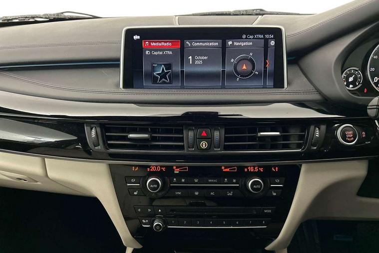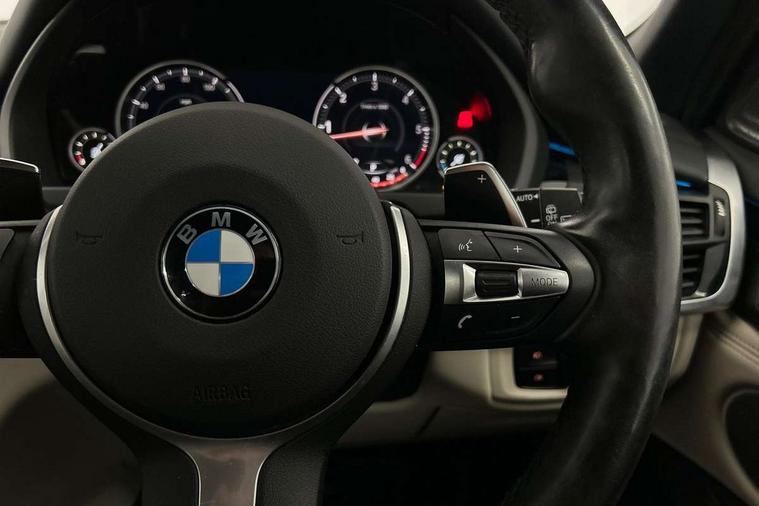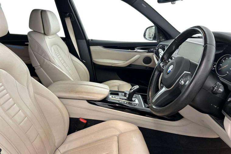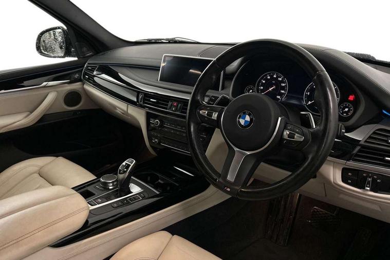 20GB Hard drive, 6.5" colour display screen, BMW online + Apps interface, BMW remote services, BMW Teleservices, Brake force display, Check control system, iDrive controller and display with 10.2" colour display monitor, Lights on warning, On board computer, Outside temperature gauge, Park distance control, Professional multimedia navigation system, Real time traffic information, Remote tailgate release, Service interval indicator, Servotronic PAS, Stop/start button, Voice control system, Adaptive M suspension, Diesel particulate filter, Sport automatic transmission, Auxiliary point for auxiliary devices, BMW professional twin tuner radio with single CD player and MP3 CD playback facility, DAB Digital radio, Auto dimming rear view mirror, Auto upper tailgate release, Body colour bumpers, Body colour door handles, Body colour door mirrors, Chrome exhaust tailpipes, Clear indicator lenses, Door mirror integrated indicators, Double kidney grille with chrome surround and black slats, Downlights in exterior door handles, Electric folding/heated door mirrors + electrochromic on drivers side, Electric front/rear windows with anti-trap, Electric headlight adjustment, Follow me home headlights, Green tinted glass, Headlight washer jets, Heat insulated glass, Heated washer nozzles, Individual door sill finishers, Intermittent rear wash/wipe, M aerodynamic body kit, Rain sensor with auto light activation system, Two piece tailgate, 12V accessory power point in centre console, 12V socket in luggage compartment, 2 x 12V socket in rear centre console, 40:20:40 split folding rear seats, Ambient interior lighting, Anthracite Velour floor mats, Boot lashing points, Electric front seats + driver memory, Front and rear cupholders, Front armrest with storage bin, Front/rear courtesy lights with soft on/off dimming, Front/rear reading lights, Gearshift paddles on steering wheel, Heated front seats, Height adj rear head restraints, Illuminated glovebox with lock, Isofix child seat preparation, LED footwell lights, Luggage compartment cover, M leather steering wheel, Reach + rake adjustable steering column, Securing rings in luggage compartment, Storage bins on all doors, Sunvisors with illuminated vanity mirrors, Tilt/height adjustable front head restraints, Toolkit located in luggage compartment, Extended storage pack - X5, 3 rear 3 point seatbelts, ABS, ADB - Automatic Differential Brake, Automatic Stability Control (ASC), BMW emergency call, Child locks on rear doors, Cornering brake control (CBC), Crash Sensor - activates hazard/interior lighting + unlocks doors, Driver/Front Passenger airbags, DSC - Dynamic Stability Control, Dynamic brake control, Dynamic Traction Control - DTC, Electronic brake force distribution, Electronic parking brake, Front and rear head airbags, Front passenger airbag deactivation, Front passenger seat occupancy sensor, Front side airbags, Height adjustable front seatbelts, Hill start assist, Pyrotechnically pre-tensioned front seatbelts, Tyre pressure monitor, Warning triangle and first aid kit, Locking wheel nuts, Remote central locking, Thatcham cat 1 remote alarm/immobiliser, Run flat tyres,